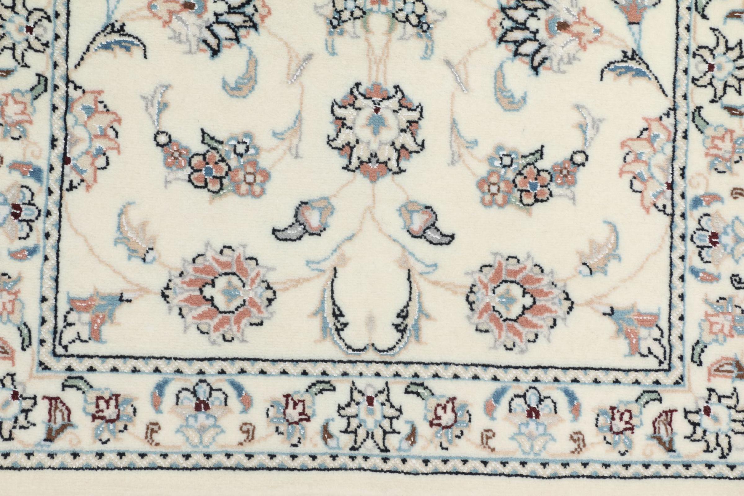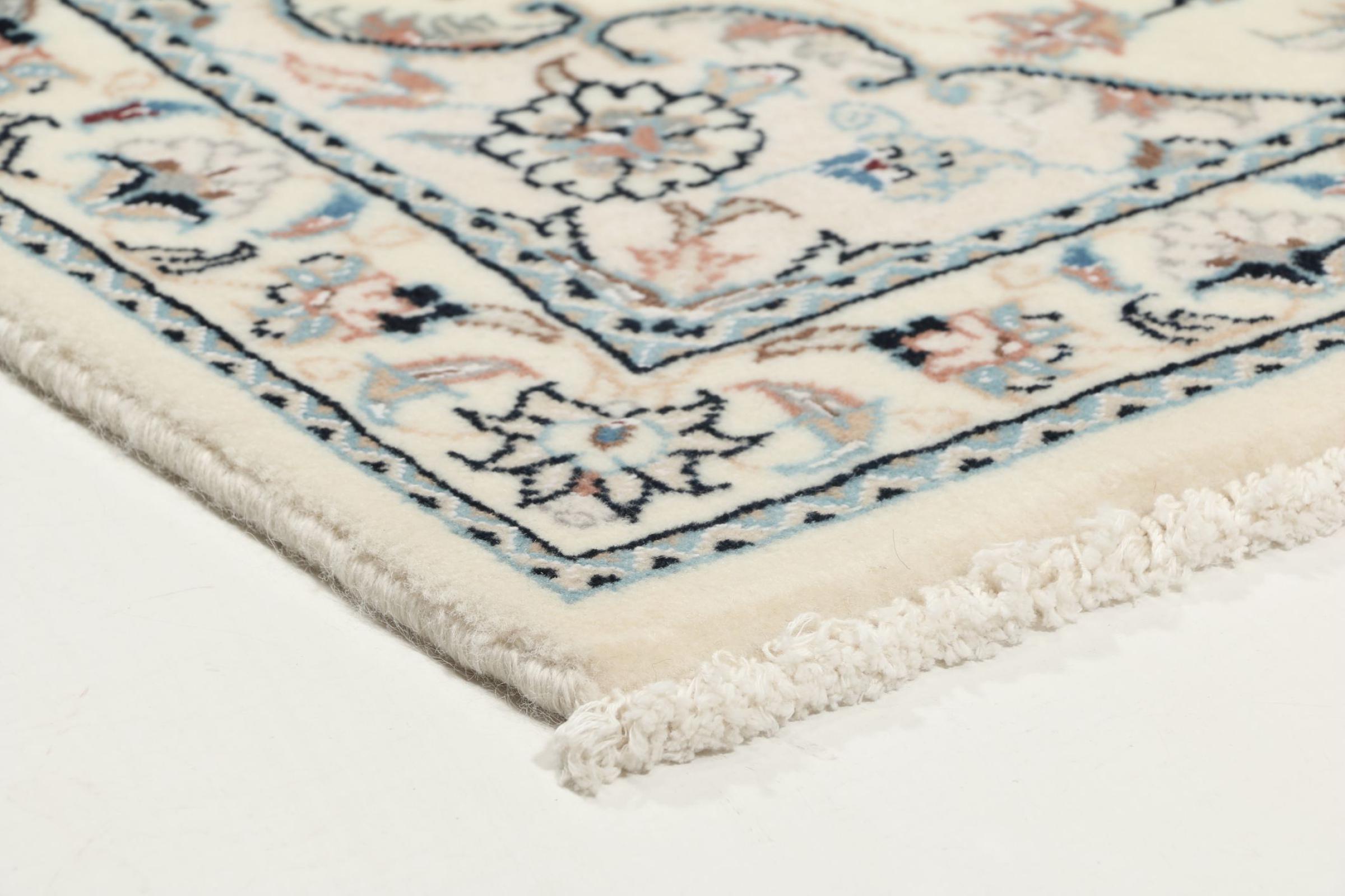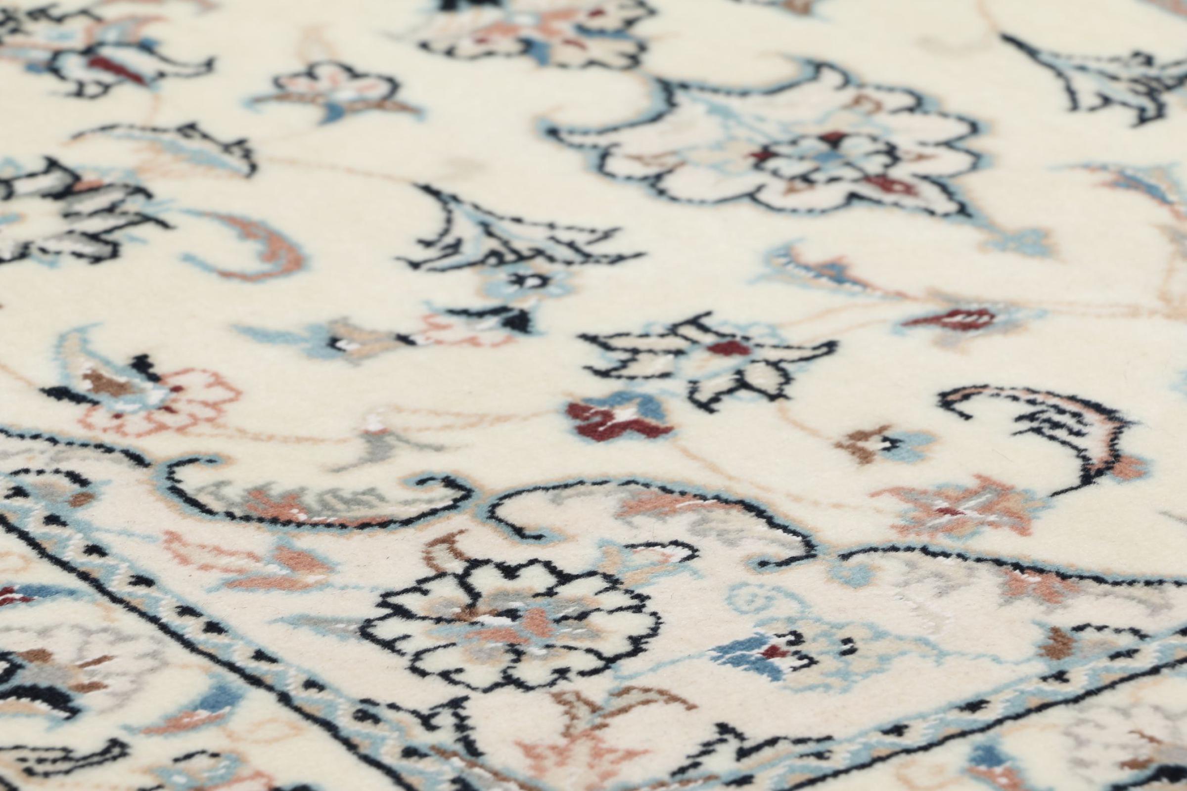 This Nain rug is classified as 9La. The excellent quality, the beautiful oriental design with its curvilinear patterns will delight every buyer. This Persian rug was hand-knotted in the city of Nain, which lies on the western edge of the Dasht-e-Kavir desert, from high-quality wool and natural silk. 9La Nain rugs are significantly finer than a 12La and already show beautiful details.
