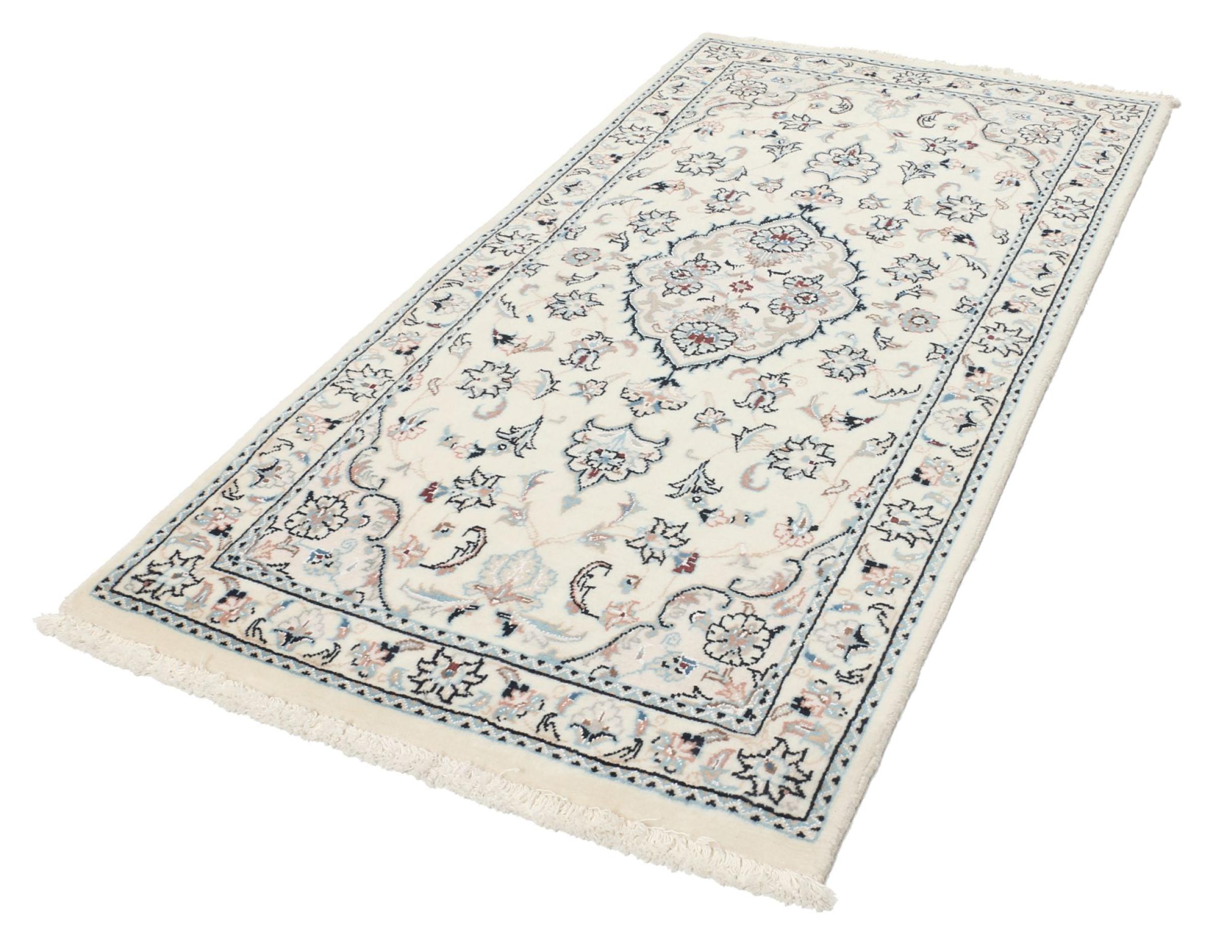 Rugs from the city of Nain, from the border of one of the largest deserts in Iran, are among the most famous Persian rugs in the world. Their typical design is characterized by floral ornaments, a medallion in the middle as well as beige and red or blue shades. Thanks to their designations 4La, 6La, 9La and 12La, the finenesses of a Nain rug can be seen at a glance. The lower the "La" number, the higher the knot density and thus the finer the rug.