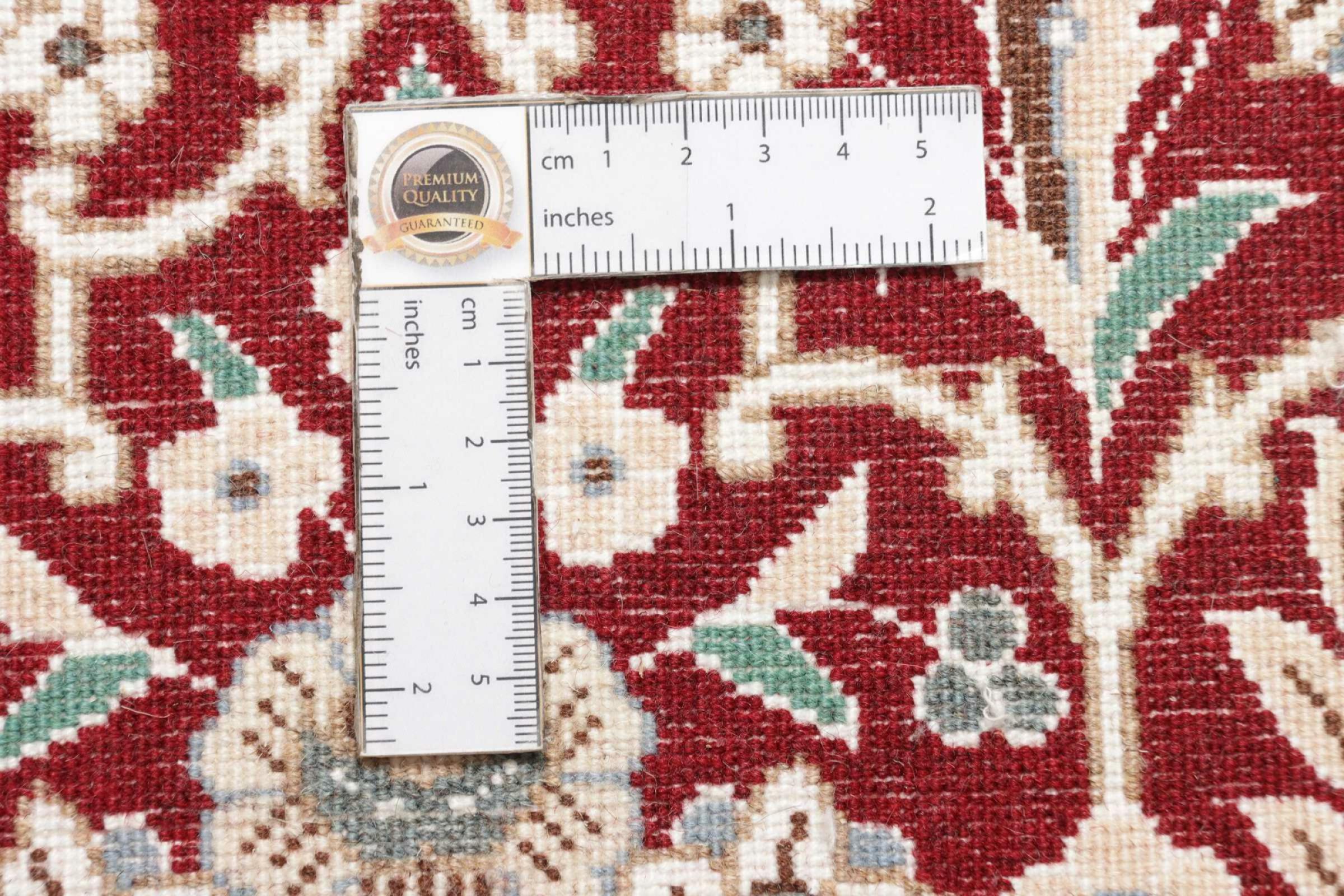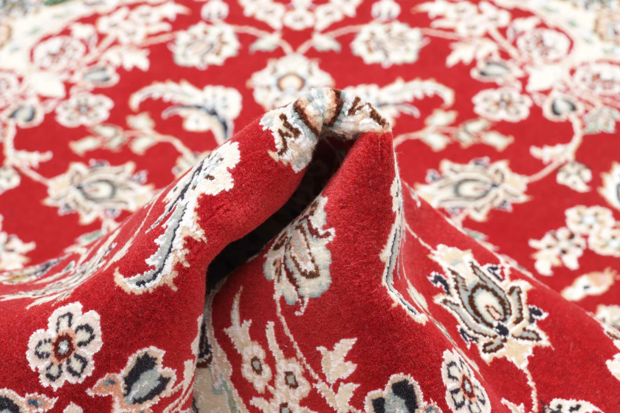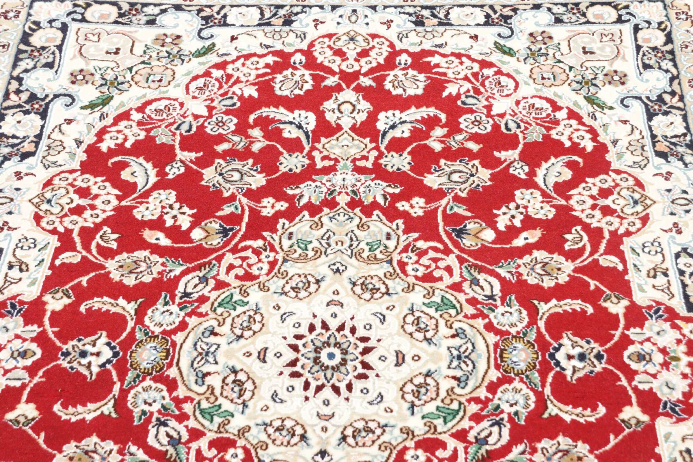 This Nain rug is classified as 9La. The excellent quality, the beautiful oriental design with its curvilinear patterns will delight every buyer. This Persian rug was hand-knotted in the city of Nain, which lies on the western edge of the Dasht-e-Kavir desert, from high-quality wool and natural silk. 9La Nain rugs are significantly finer than a 12La and already show beautiful details.