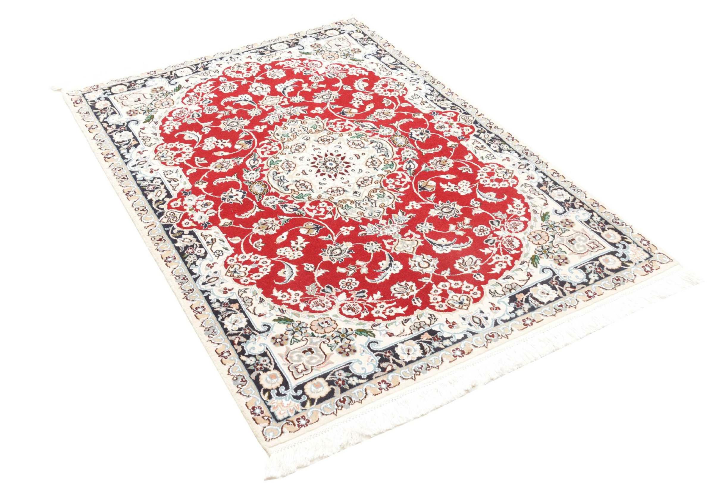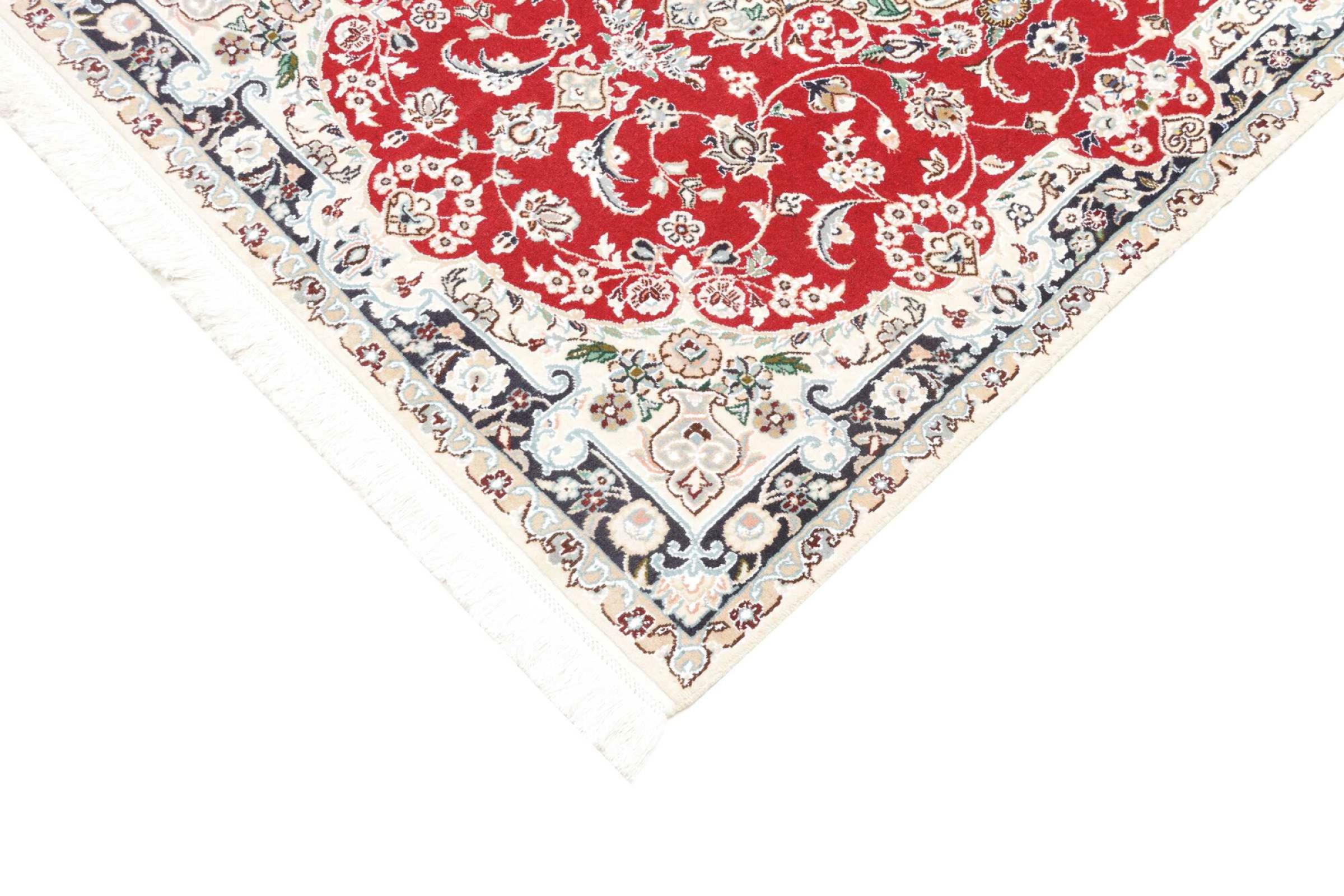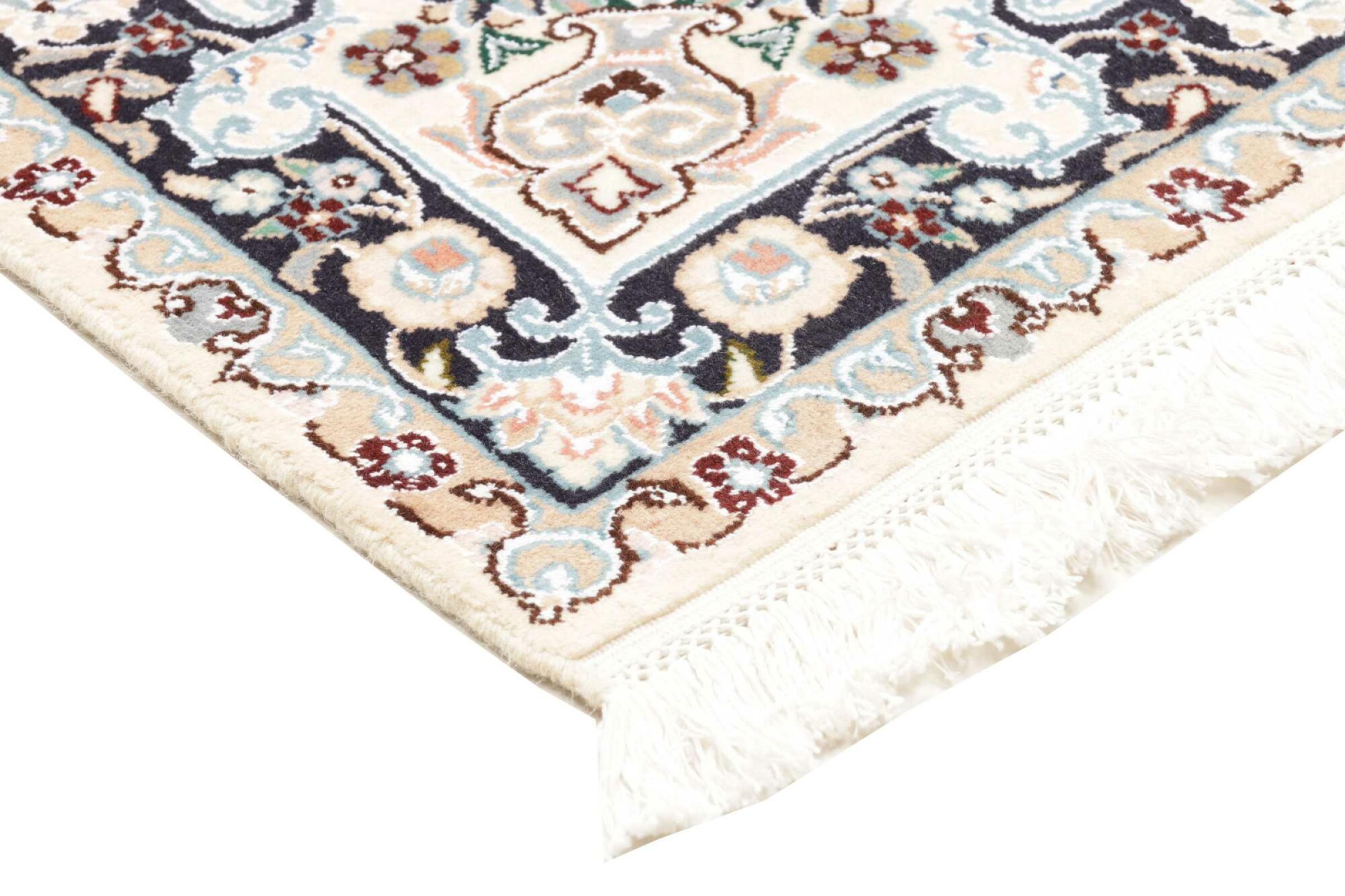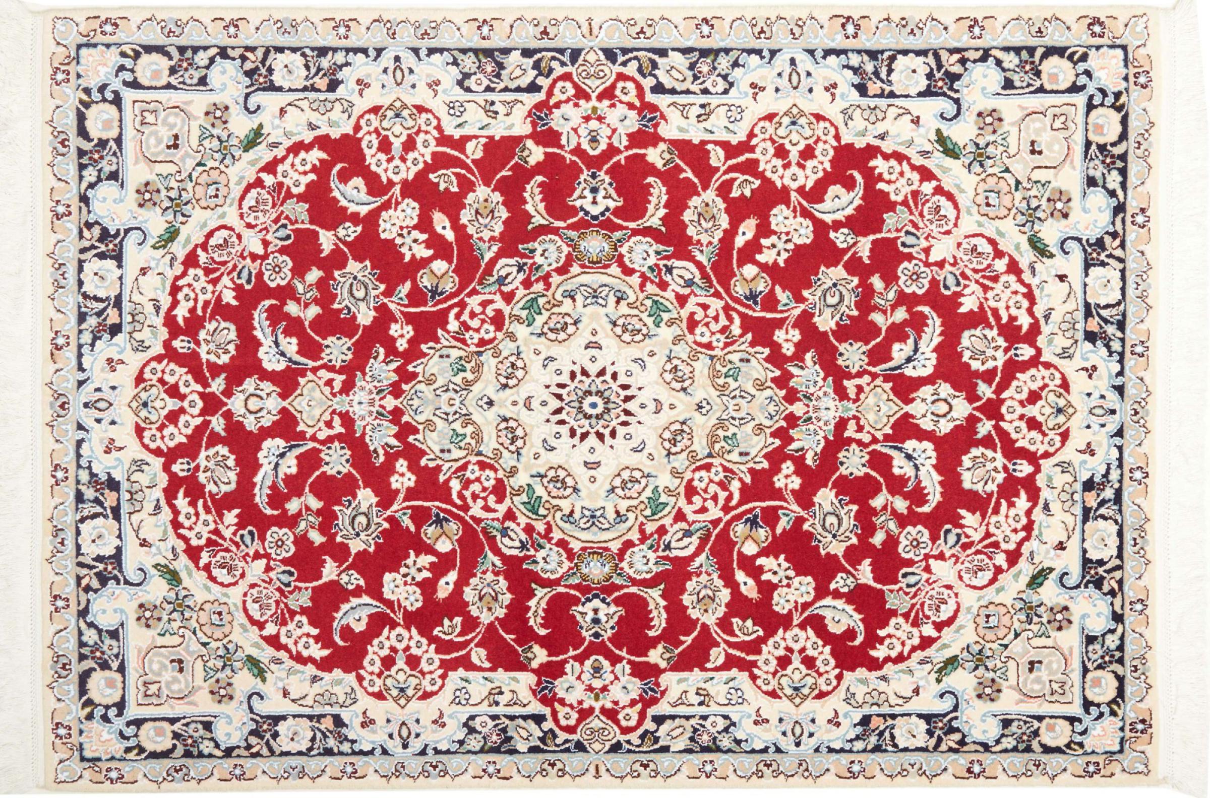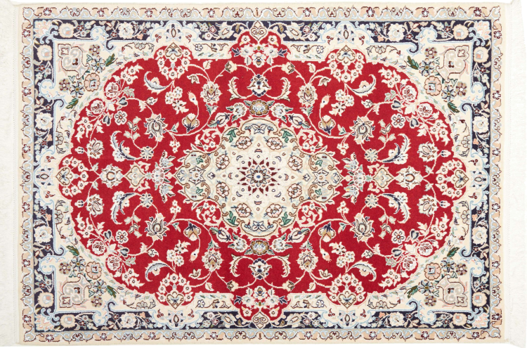 Rugs from the city of Nain, from the border of one of the largest deserts in Iran, are among the most famous Persian rugs in the world. Their typical design is characterized by floral ornaments, a medallion in the middle as well as beige and red or blue shades. Thanks to their designations 4La, 6La, 9La and 12La, the finenesses of a Nain rug can be seen at a glance. The lower the "La" number, the higher the knot density and thus the finer the rug.