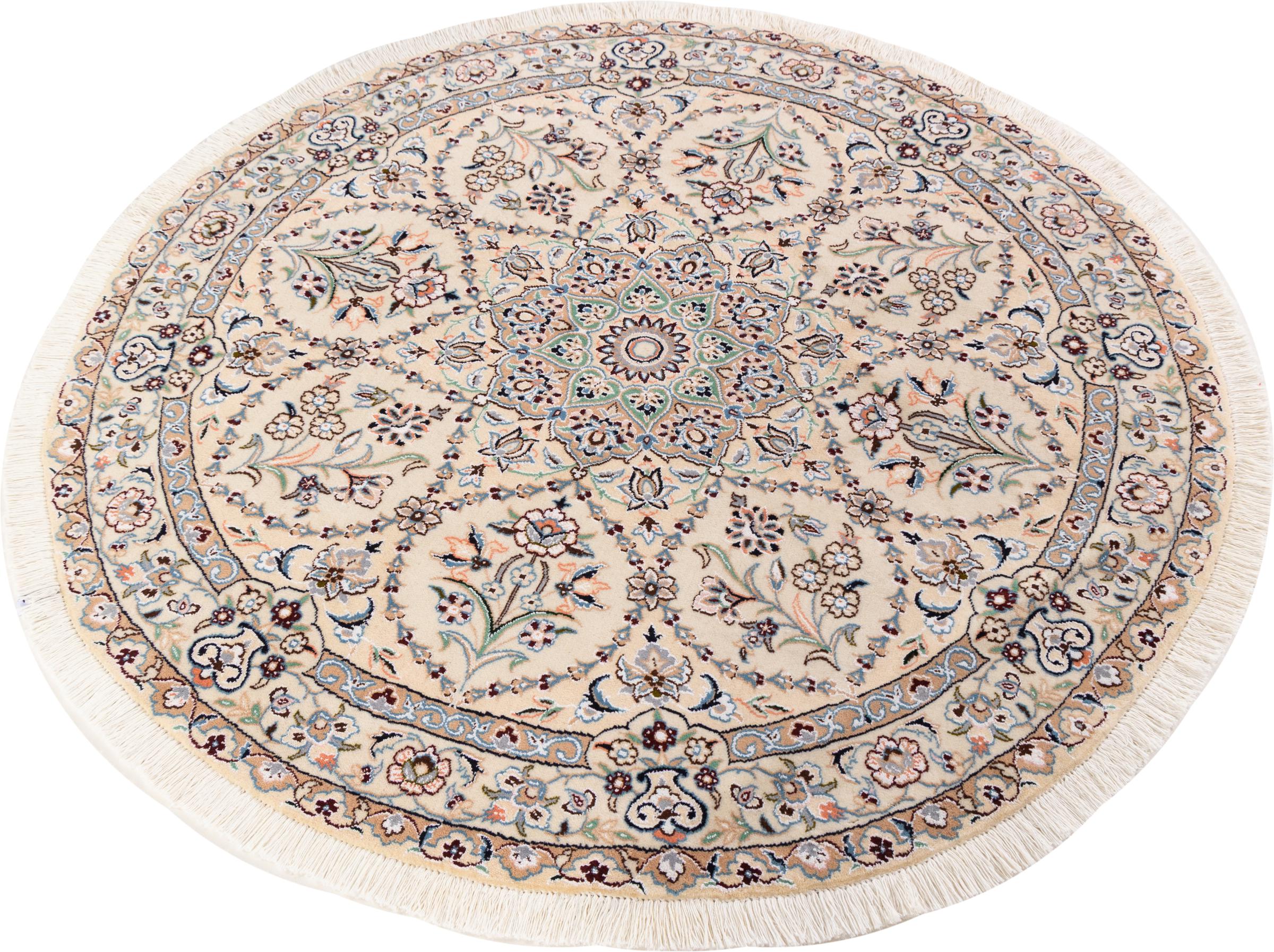 Rugs from the city of Nain, from the border of one of the largest deserts in Iran, are among the most famous Persian rugs in the world. Their typical design is characterized by floral ornaments, a medallion in the middle as well as beige and red or blue shades. Thanks to their designations 4La, 6La, 9La and 12La, the finenesses of a Nain rug can be seen at a glance. The lower the "La" number, the higher the knot density and thus the finer the rug.