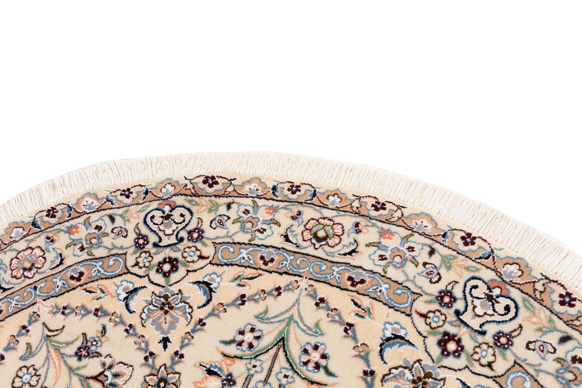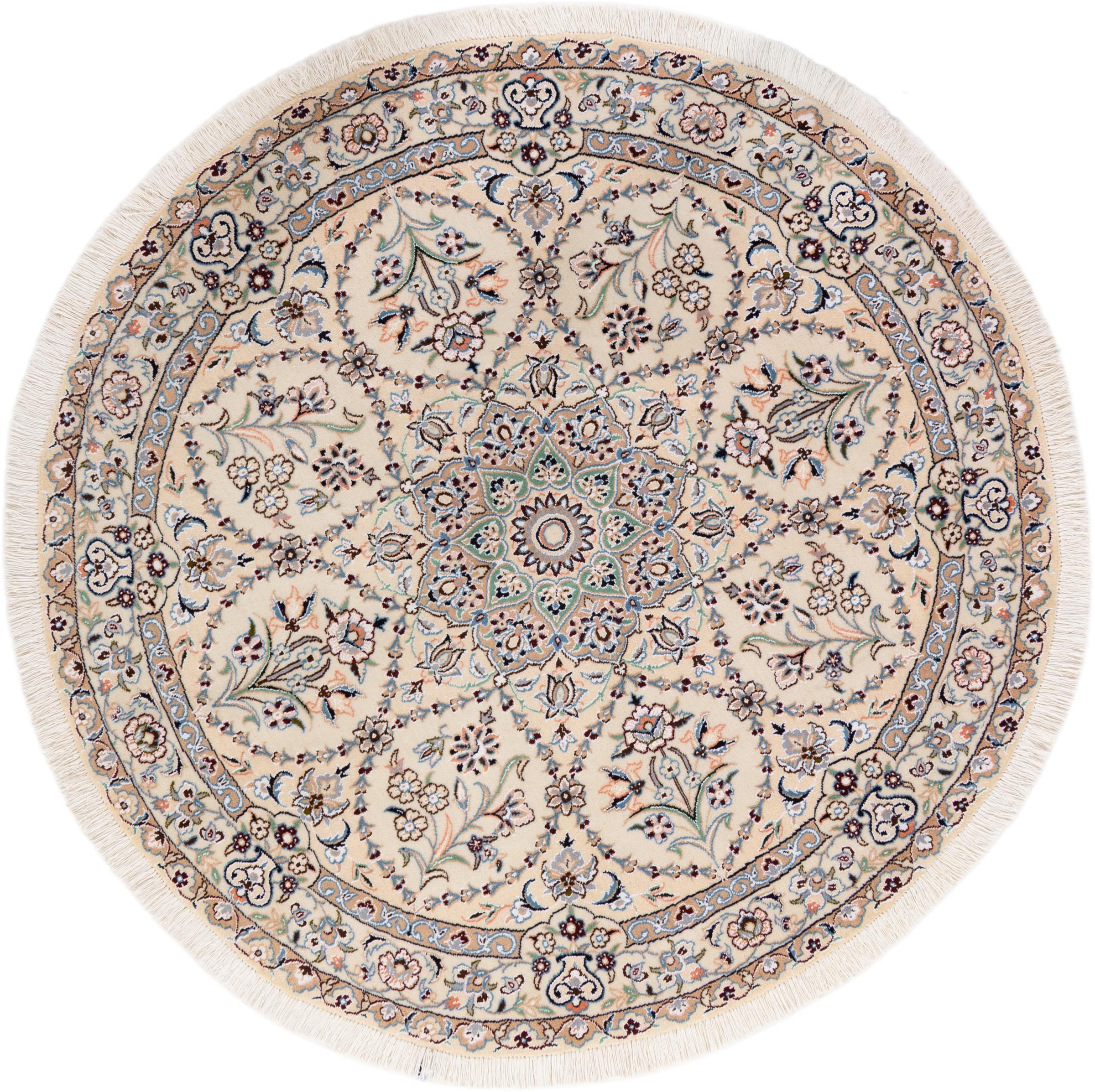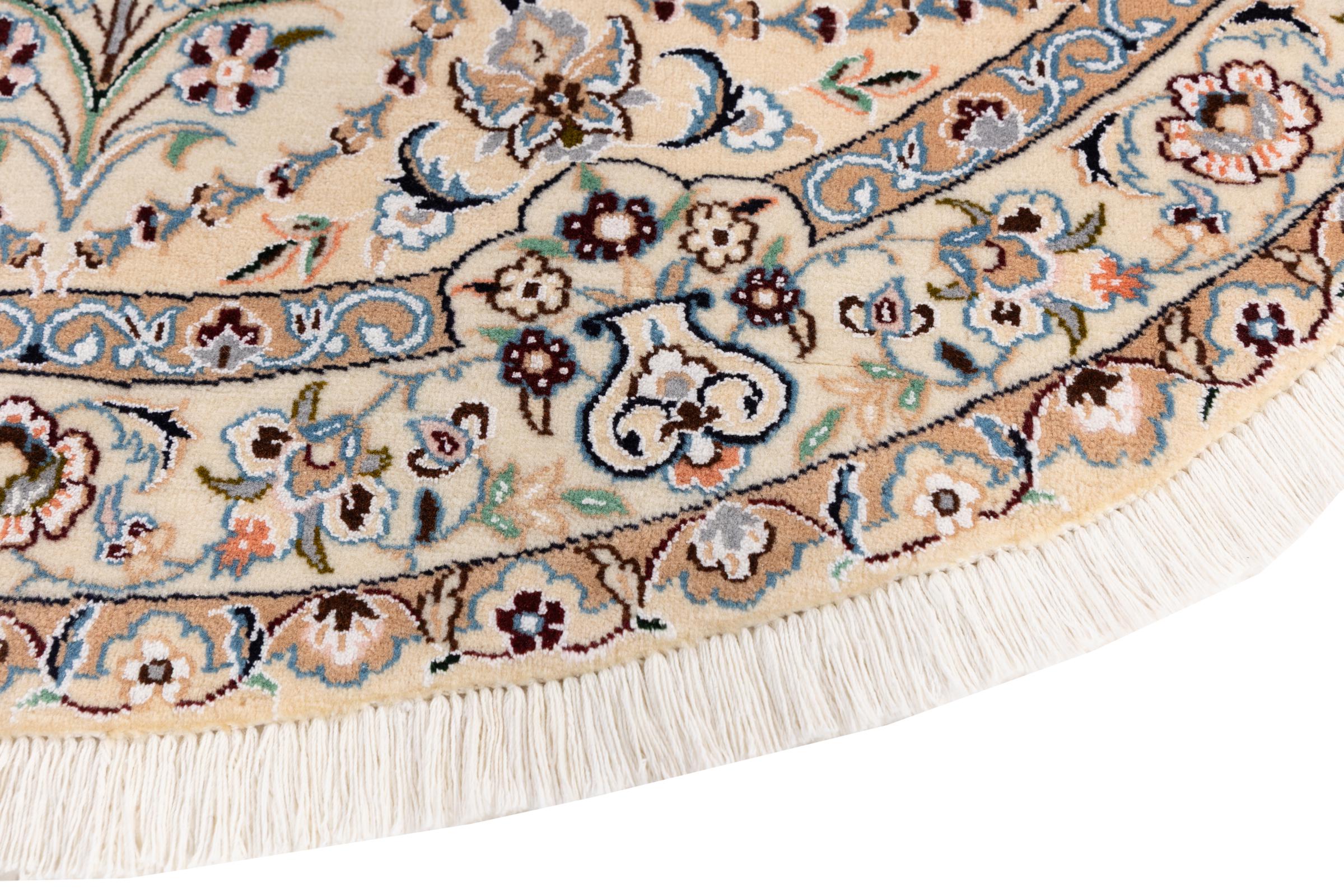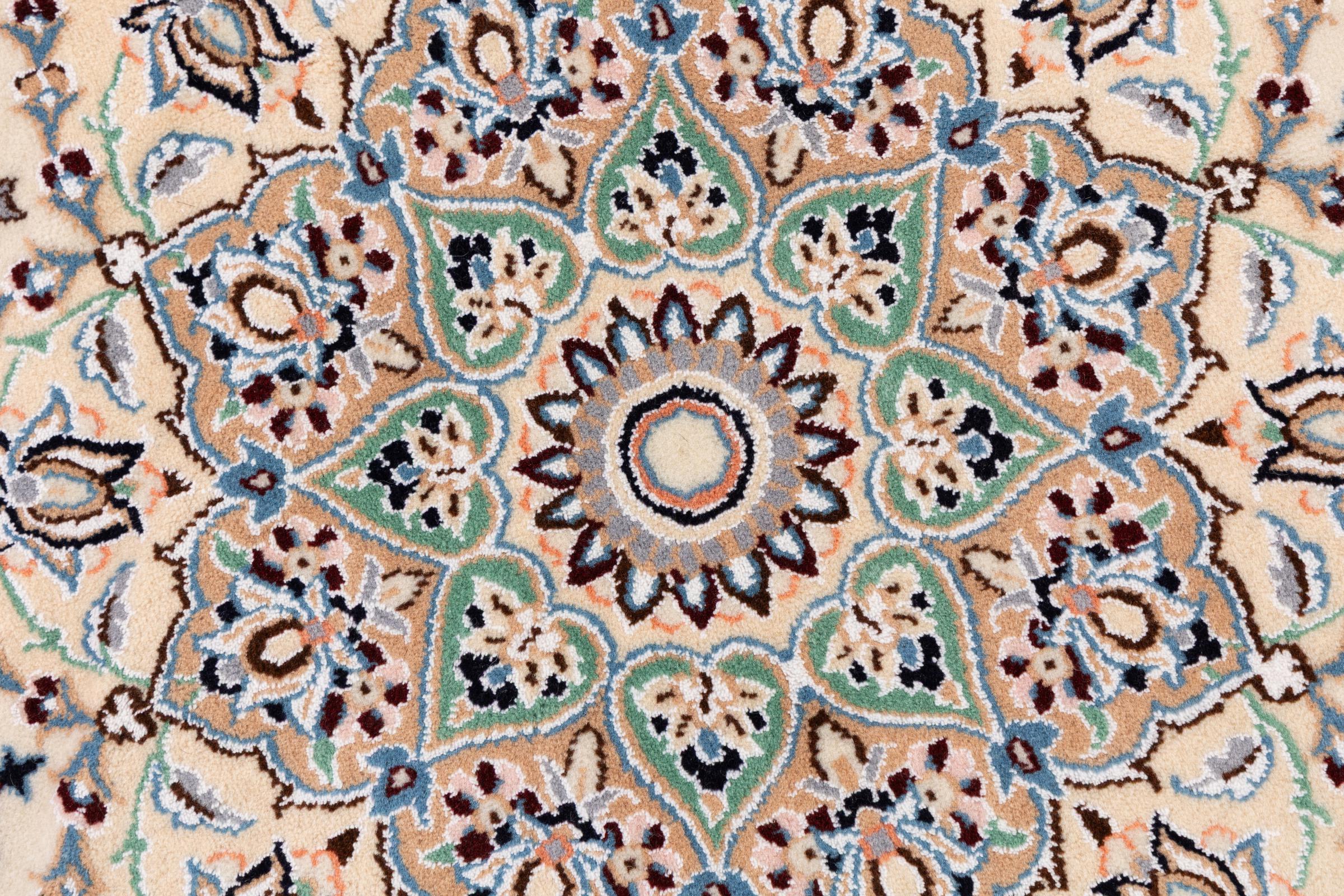 This Nain rug is classified as 9La. The excellent quality, the beautiful oriental design with its curvilinear patterns will delight every buyer. This Persian rug was hand-knotted in the city of Nain, which lies on the western edge of the Dasht-e-Kavir desert, from high-quality wool and natural silk. 9La Nain rugs are significantly finer than a 12La and already show beautiful details.