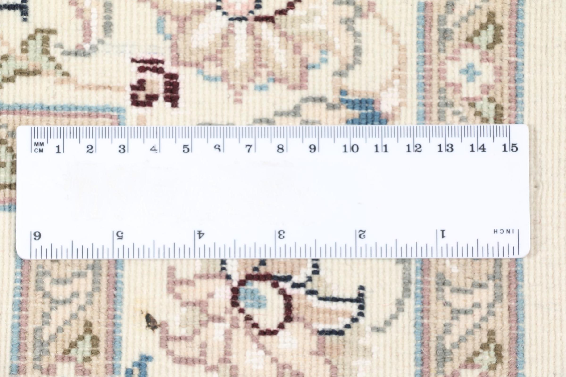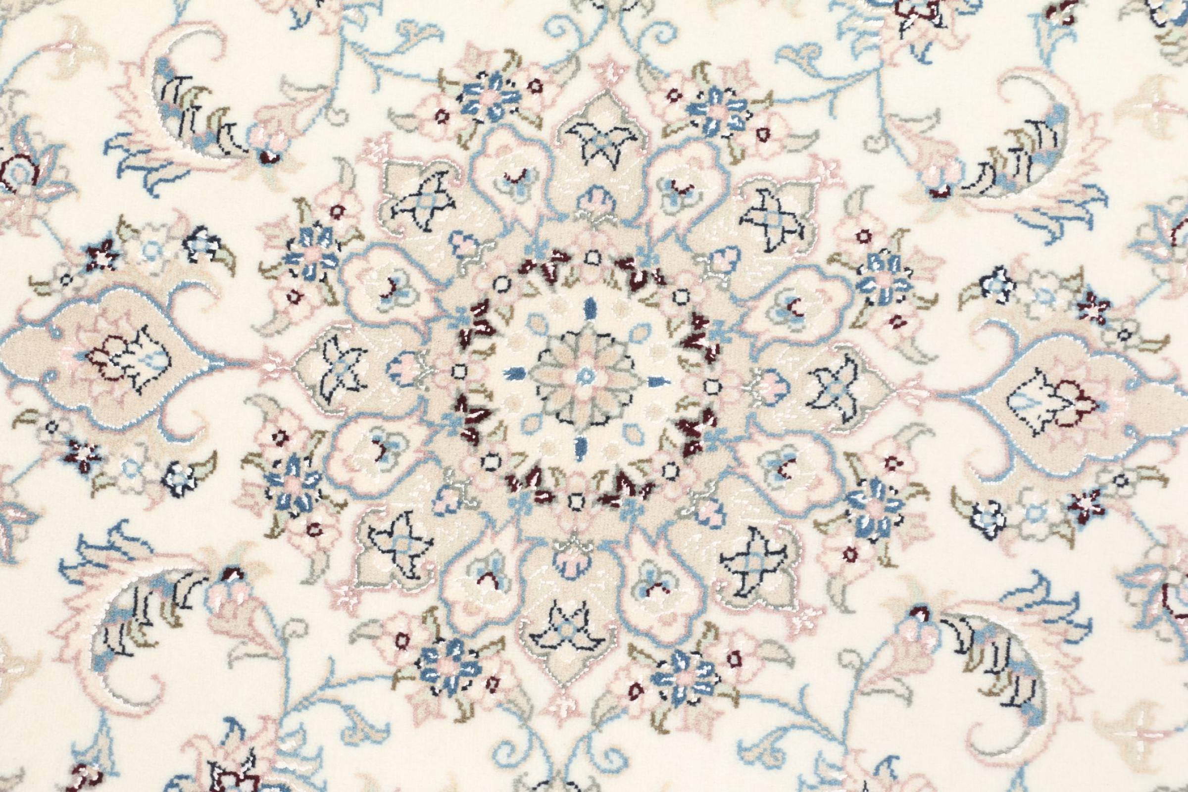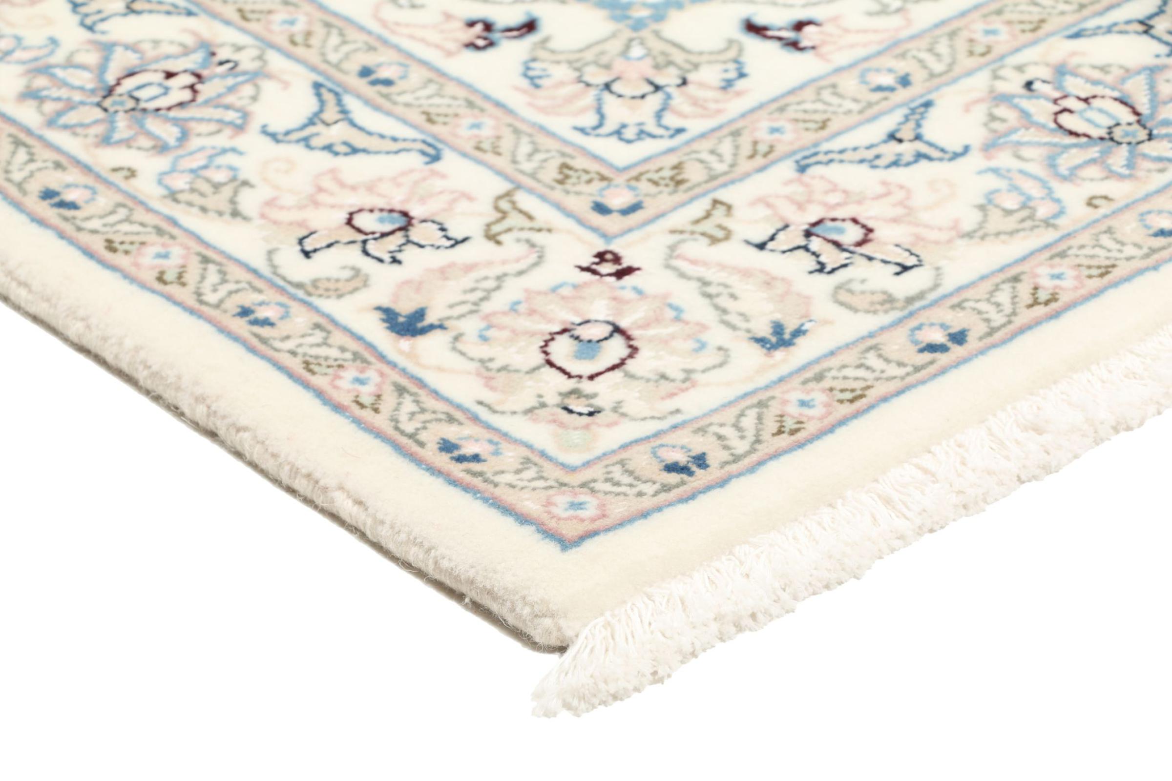 This Nain rug is classified as 9La. The excellent quality, the beautiful oriental design with its curvilinear patterns will delight every buyer. This Persian rug was hand-knotted in the city of Nain, which lies on the western edge of the Dasht-e-Kavir desert, from high-quality wool and natural silk. 9La Nain rugs are significantly finer than a 12La and already show beautiful details.