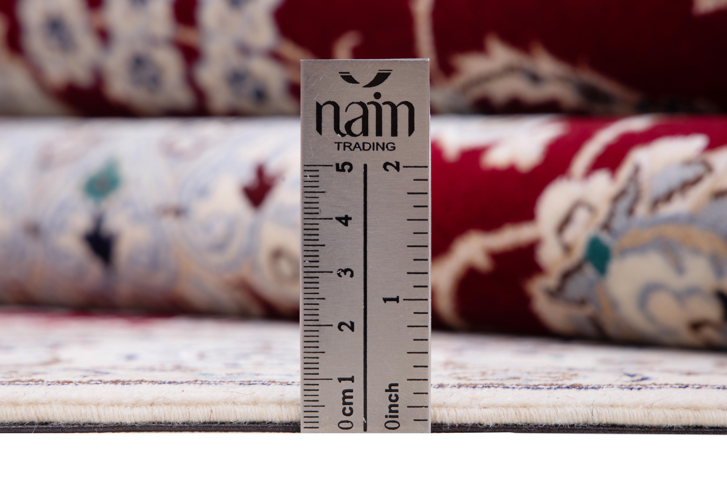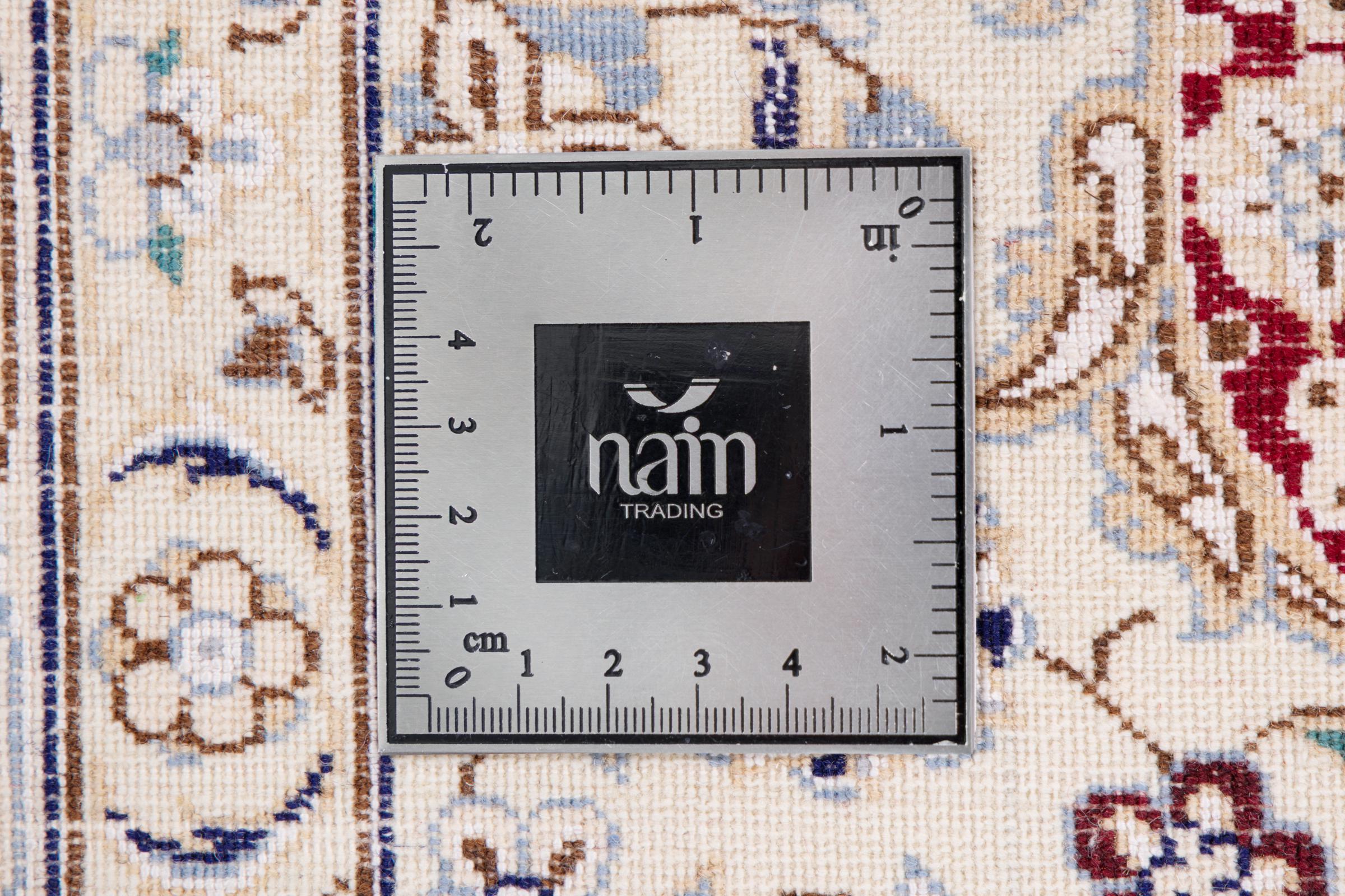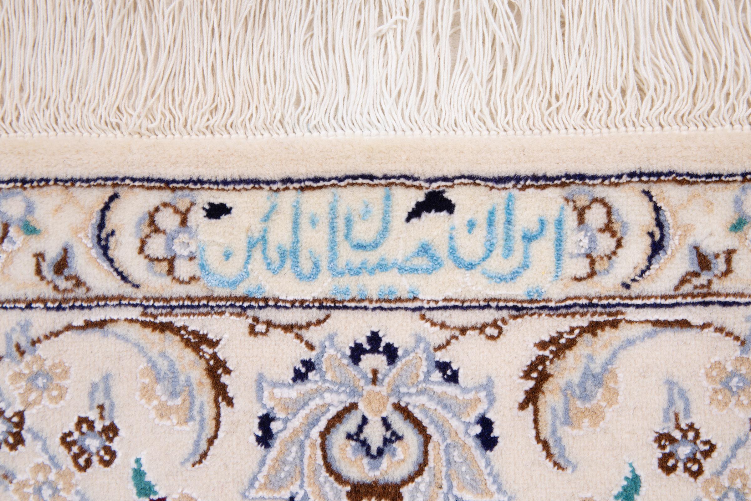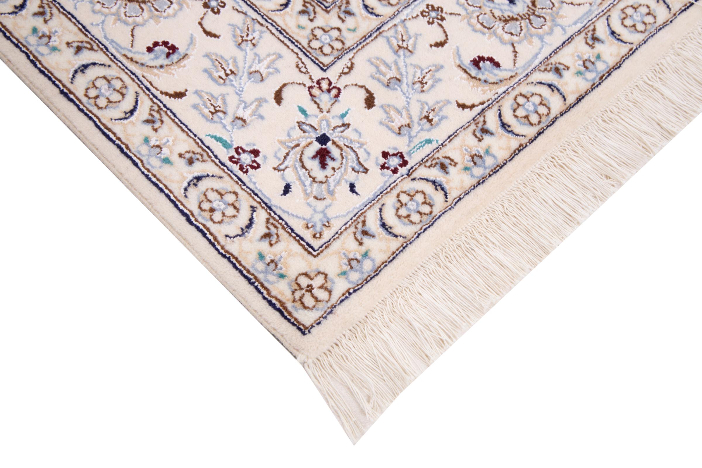 This Nain rug combines quality, tradition and an unmistakable design. It was hand-knotted from high-quality cork wool and natural silk in the desert town of the same name, Nain. Lovers of valuable rugs from Iran will love this Persian rug. With Nain rugs in the 6La and 4La classifications, you have a real work of art with an incredible level of detail that you can really lose yourself in. Nain 4La rugs are almost impossible to find today, as they are extremely elaborate to produce.