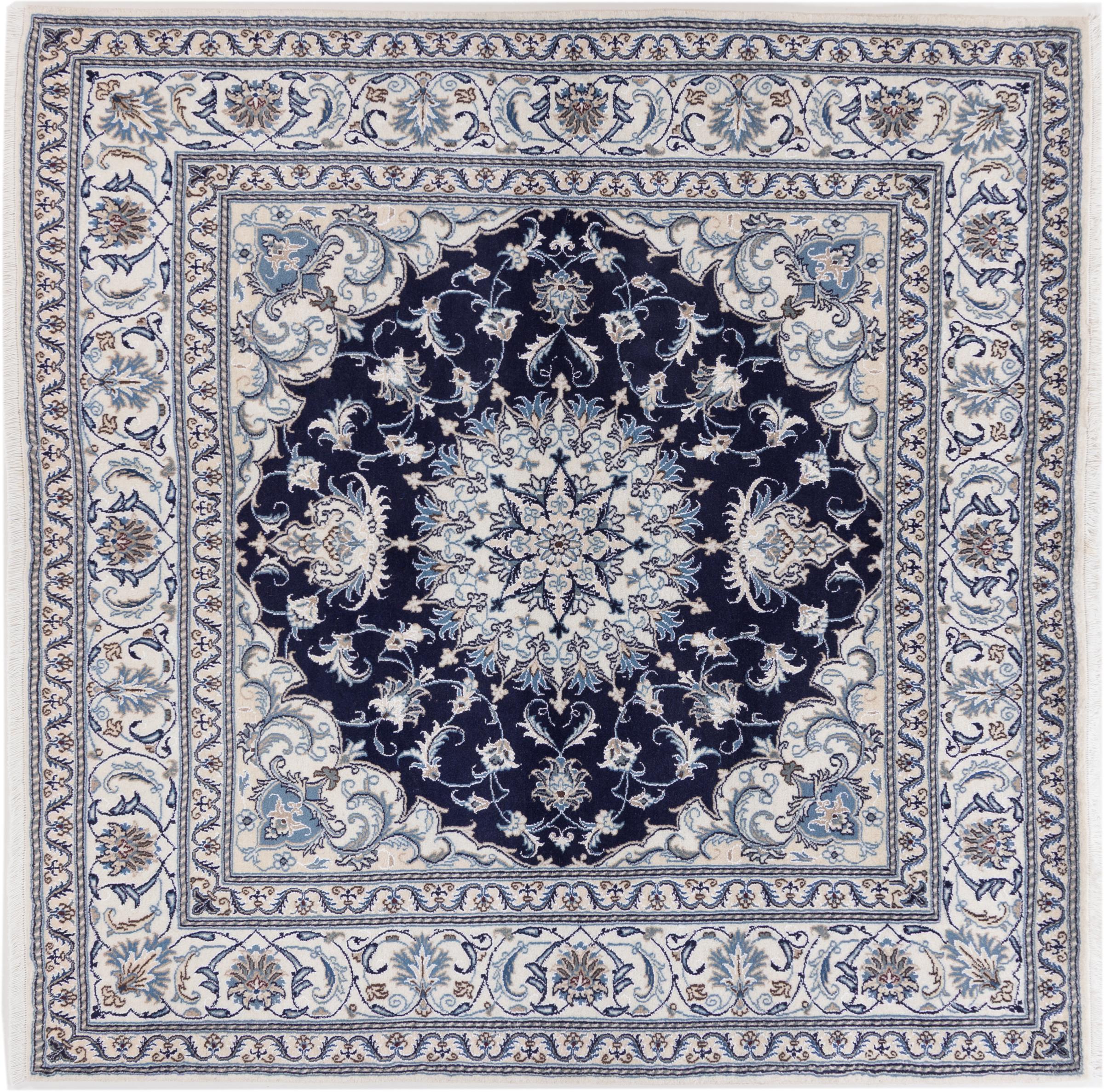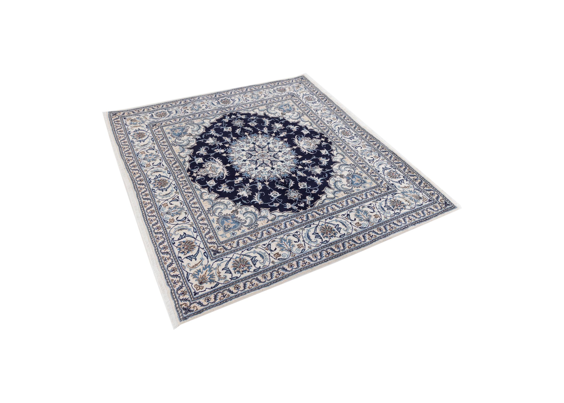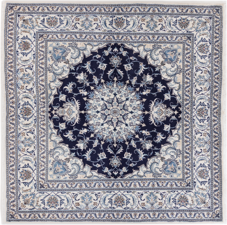 Carpet ID: 2939090021463 Size: 195x195 cm Thickness: ap. 12 mm Knot density: 200 000 - 250 000 / m² Manufacturing: Knotted by hand Pile: Wool with silk Warp: Cotton Origin: Persia Age: New Weight: ap. 13 kg In stock: Unique - Only 1 in stock