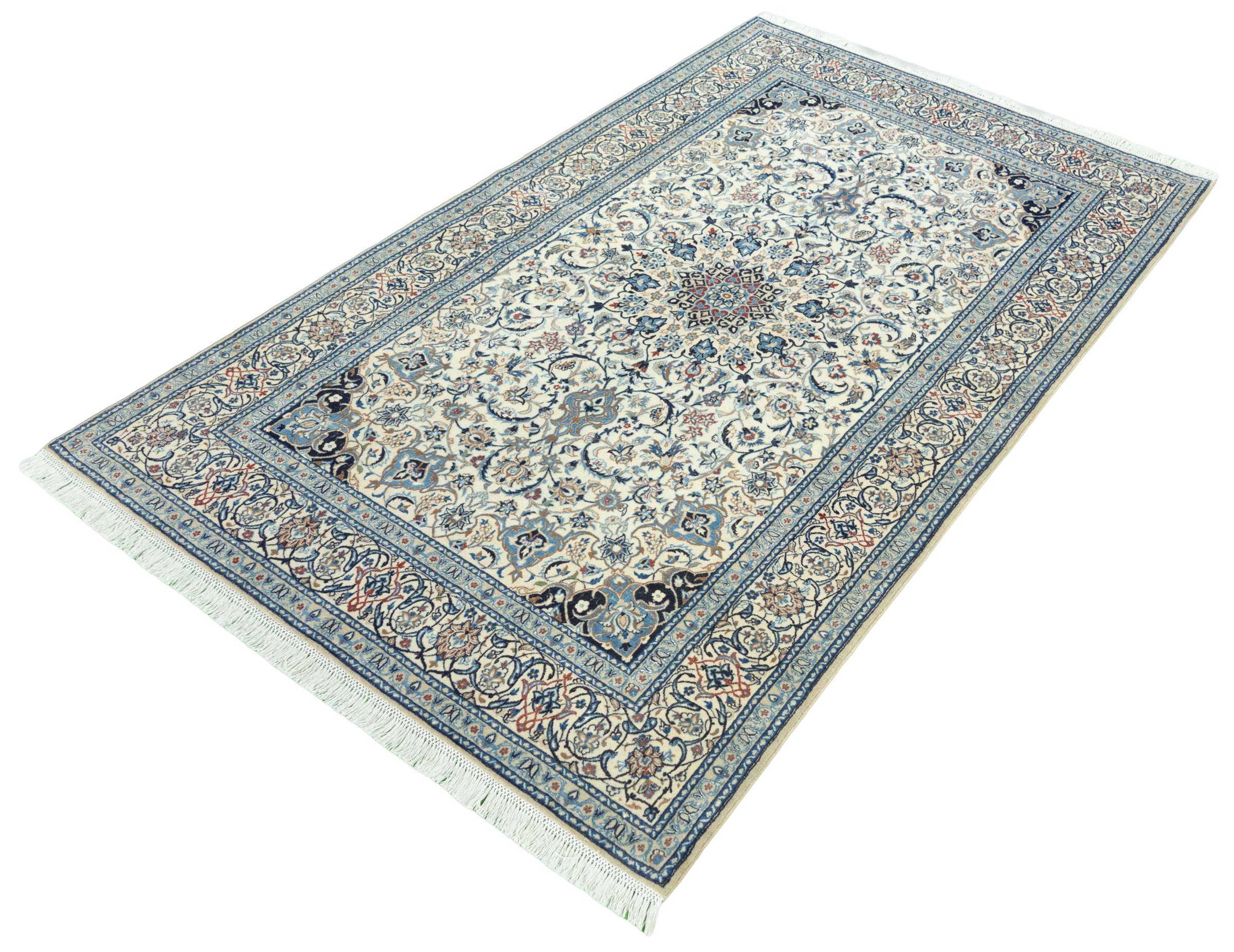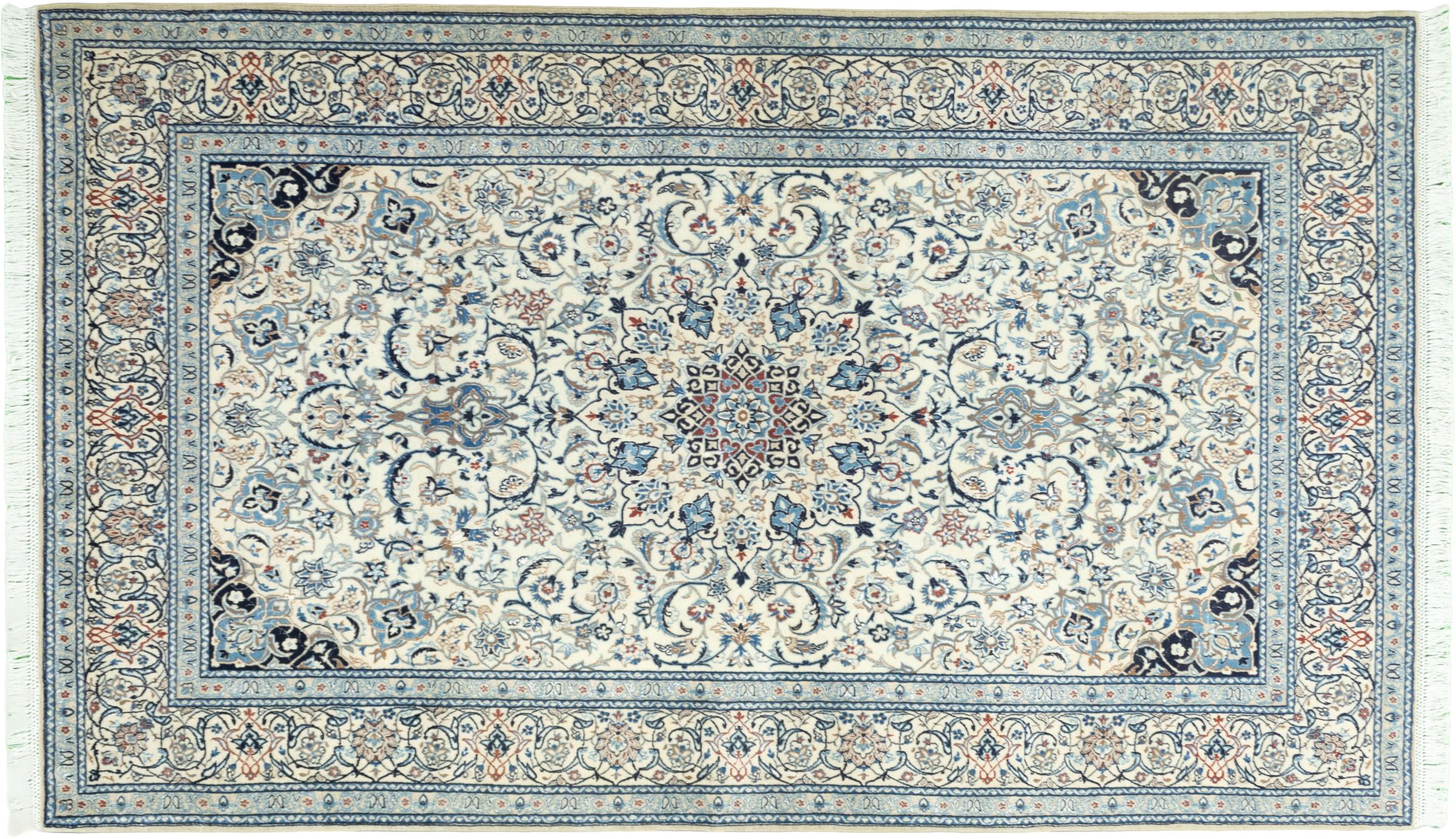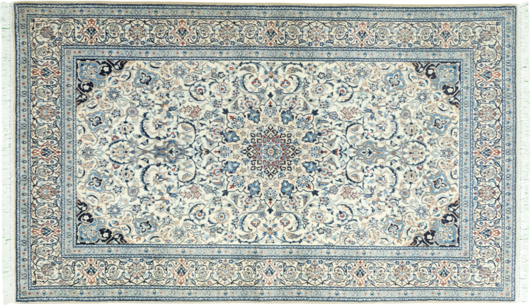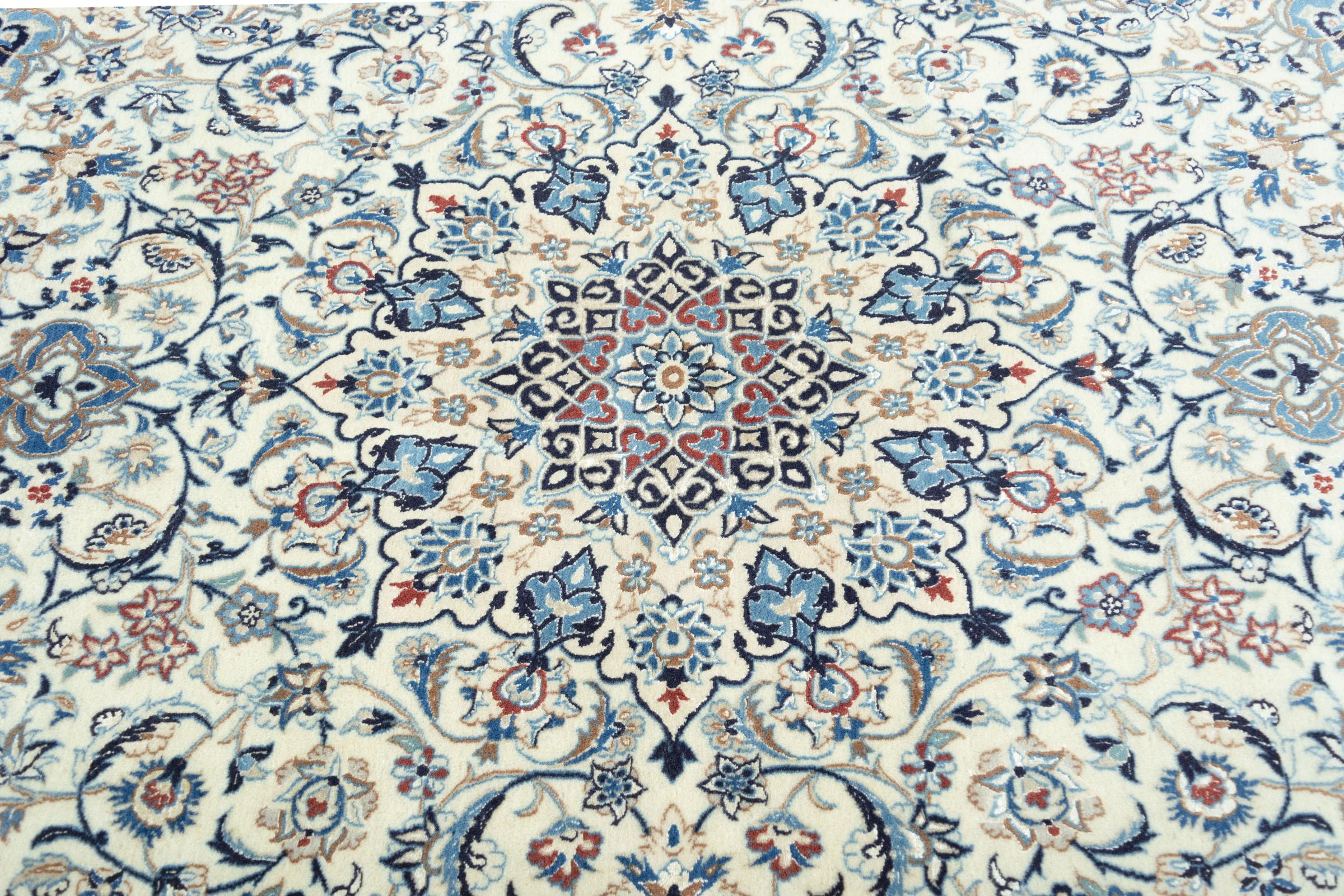 Rugs from the city of Nain, from the border of one of the largest deserts in Iran, are among the most famous Persian rugs in the world. Their typical design is characterized by floral ornaments, a medallion in the middle as well as beige and red or blue shades. Thanks to their designations 4La, 6La, 9La and 12La, the finenesses of a Nain rug can be seen at a glance. The lower the "La" number, the higher the knot density and thus the finer the rug.