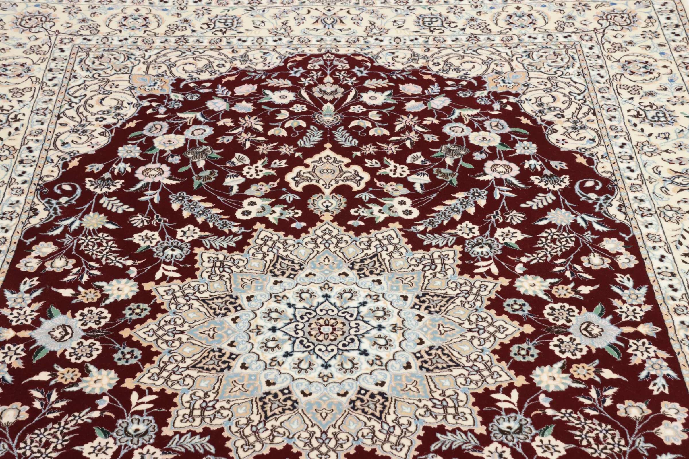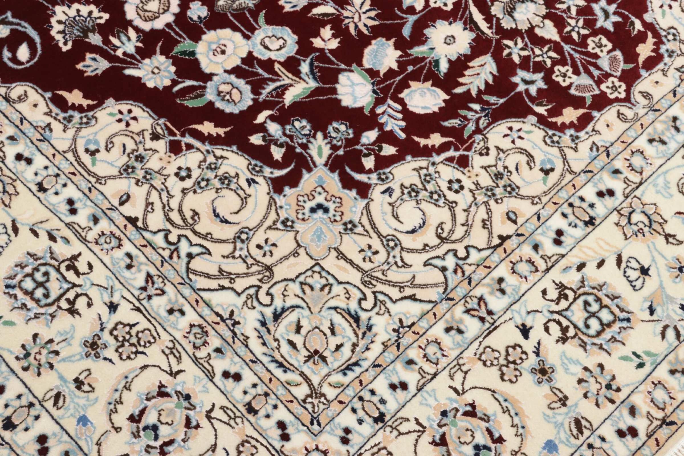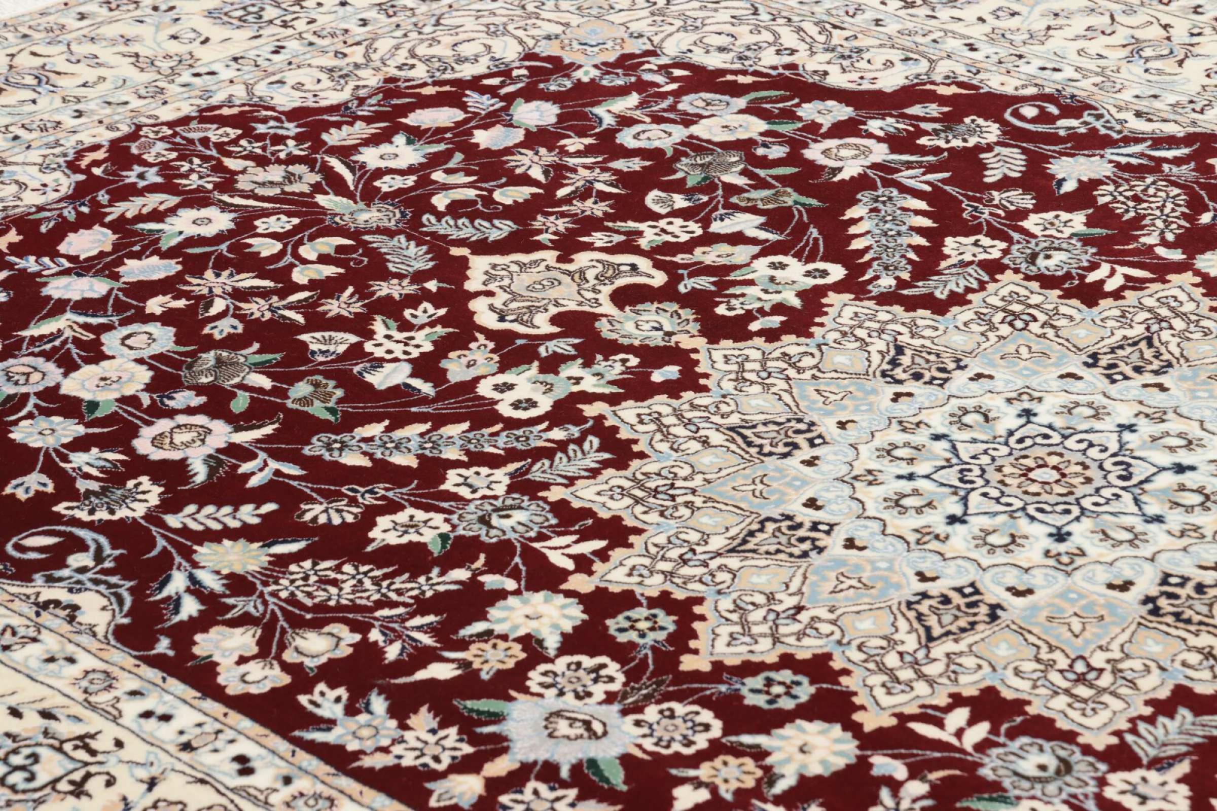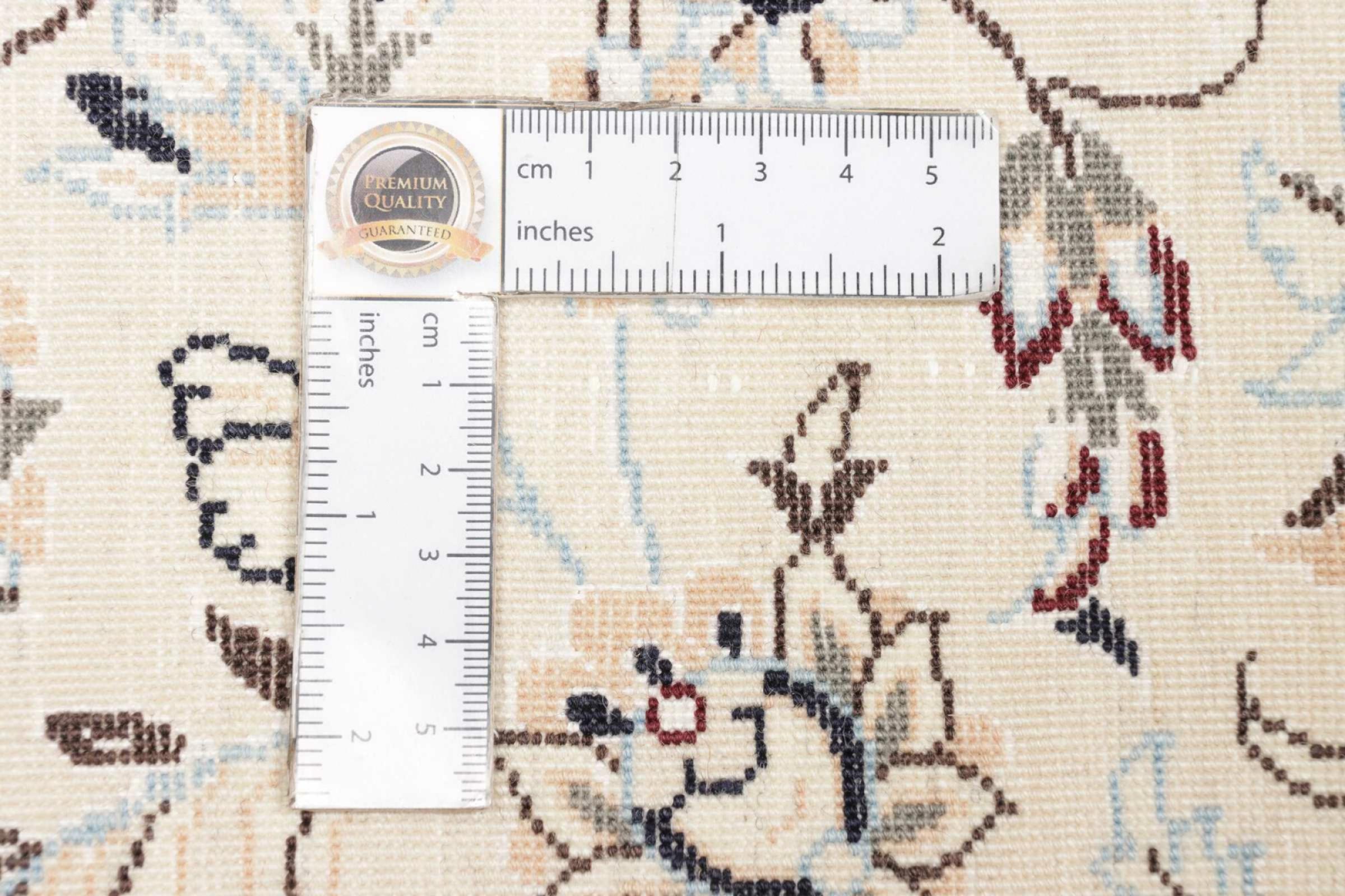 This Nain rug combines quality, tradition and an unmistakable design. It was hand-knotted from high-quality cork wool and natural silk in the desert town of the same name, Nain. Lovers of valuable rugs from Iran will love this Persian rug. With Nain rugs in the 6La and 4La classifications, you have a real work of art with an incredible level of detail that you can really lose yourself in. Nain 4La rugs are almost impossible to find today, as they are extremely elaborate to produce.