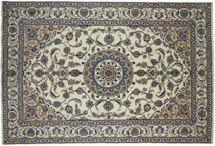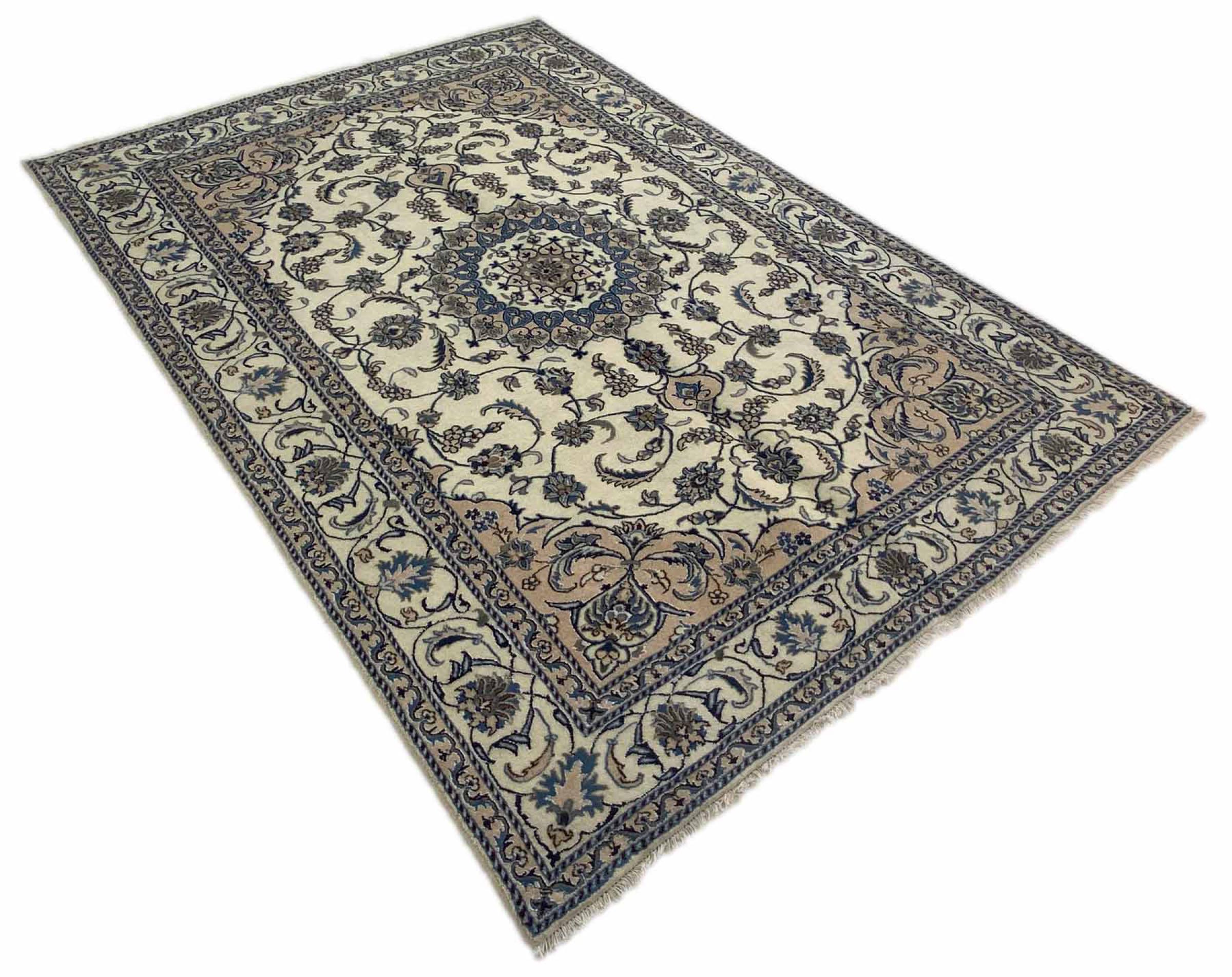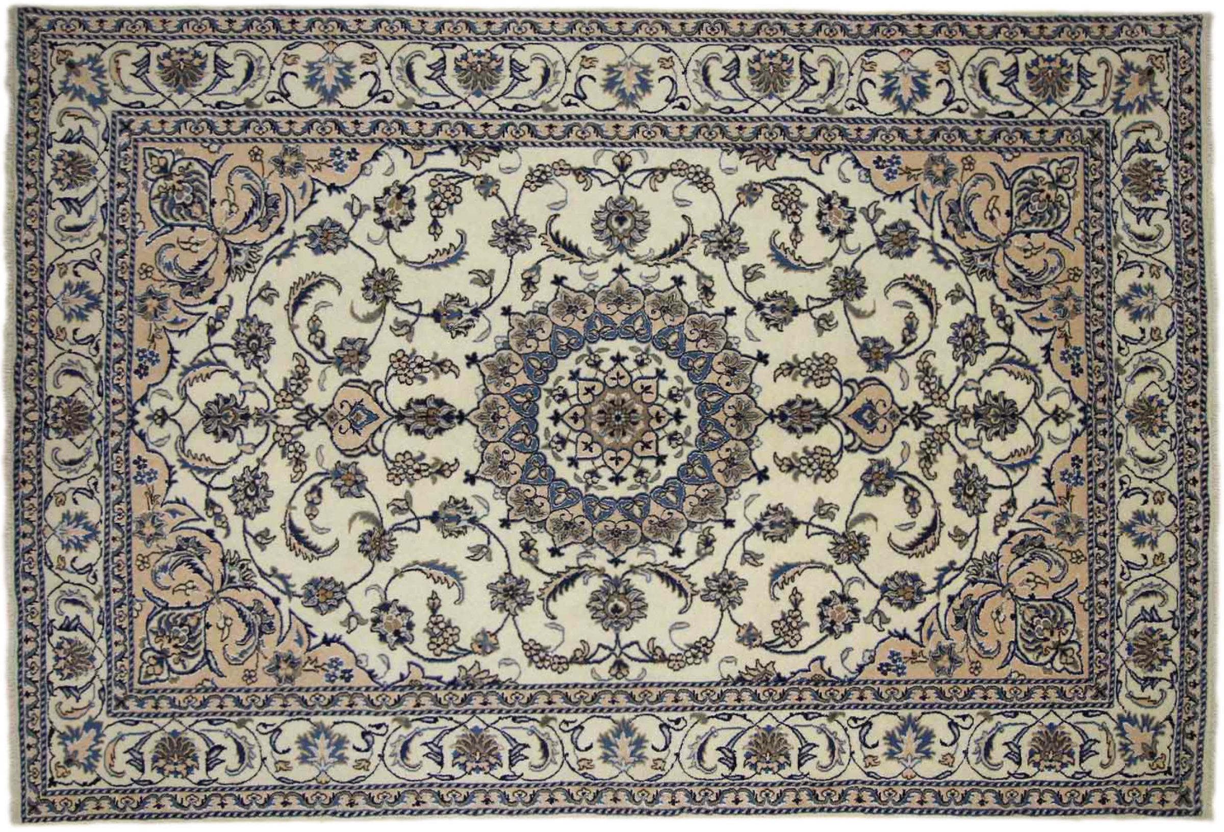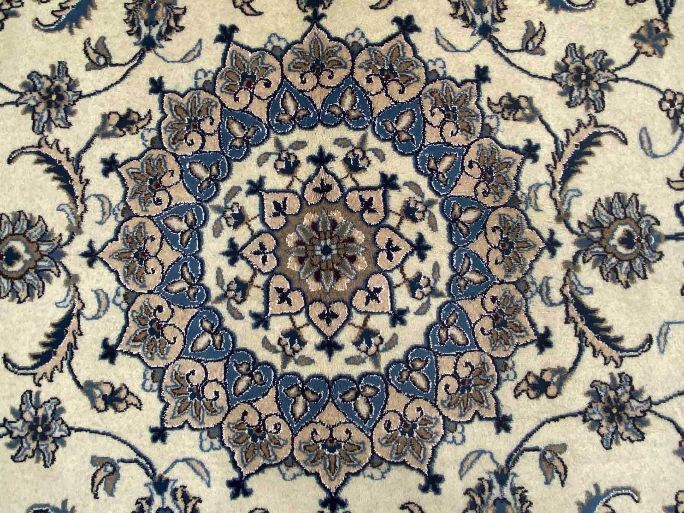 Rugs from the city of Nain, from the border of one of the largest deserts in Iran, are among the most famous Persian rugs in the world. Their typical design is characterized by floral ornaments, a medallion in the middle as well as beige and red or blue shades. Thanks to their designations 4La, 6La, 9La and 12La, the finenesses of a Nain rug can be seen at a glance. The lower the "La" number, the higher the knot density and thus the finer the rug.