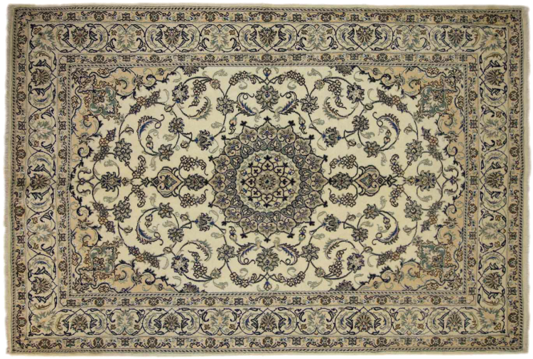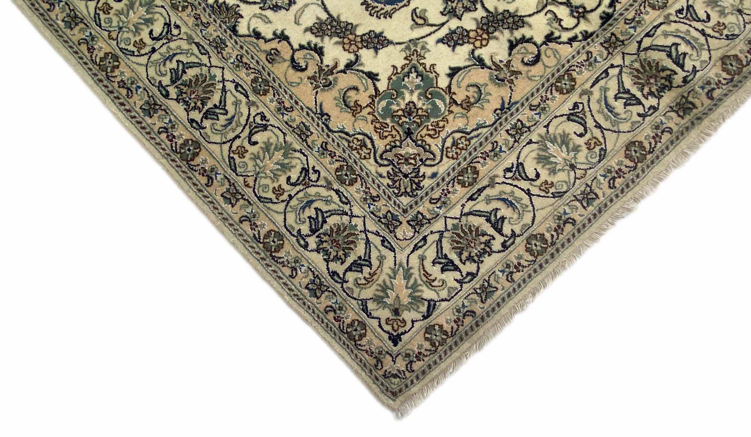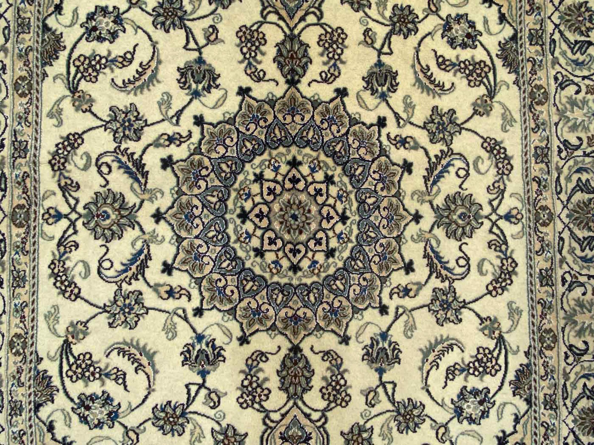 Rugs from the city of Nain, from the border of one of the largest deserts in Iran, are among the most famous Persian rugs in the world. Their typical design is characterized by floral ornaments, a medallion in the middle as well as beige and red or blue shades. Thanks to their designations 4La, 6La, 9La and 12La, the finenesses of a Nain rug can be seen at a glance. The lower the "La" number, the higher the knot density and thus the finer the rug.