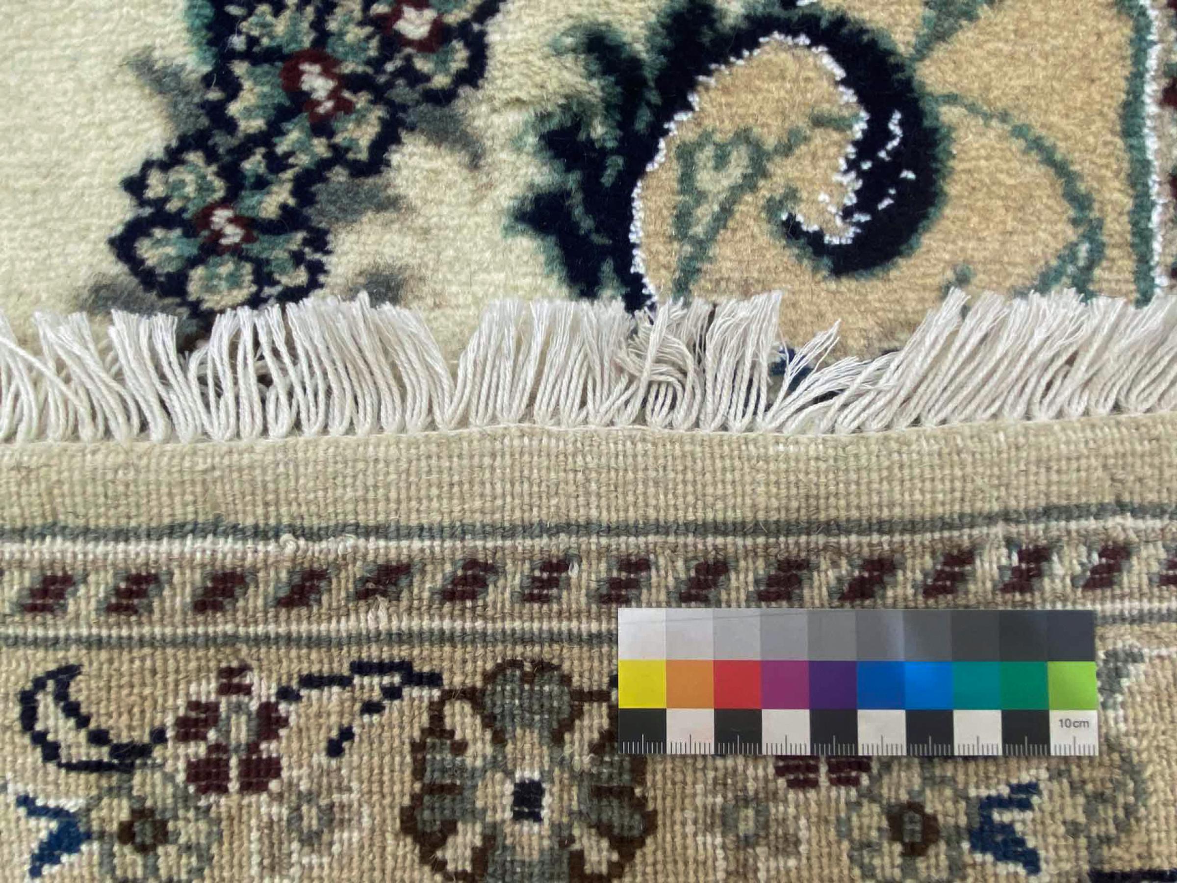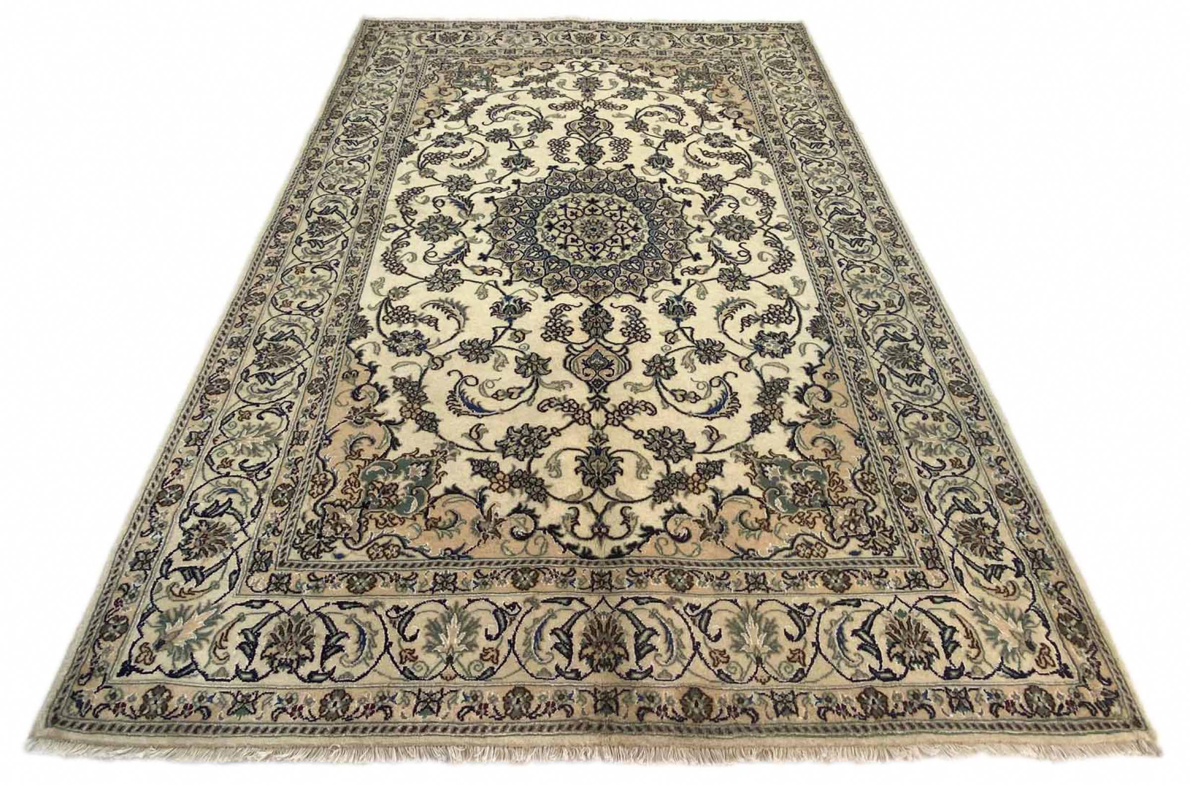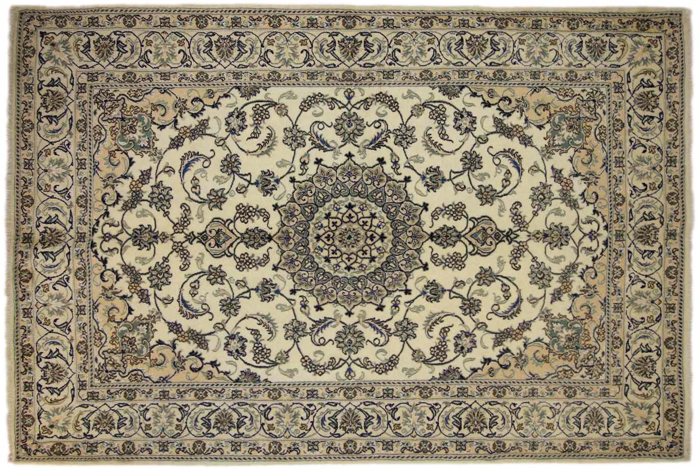 Rugs from the city of Nain, from the border of one of the largest deserts in Iran, are among the most famous Persian rugs in the world. Their typical design is characterized by floral ornaments, a medallion in the middle as well as beige and red or blue shades. Thanks to their designations 4La, 6La, 9La and 12La, the finenesses of a Nain rug can be seen at a glance. The lower the "La" number, the higher the knot density and thus the finer the rug.