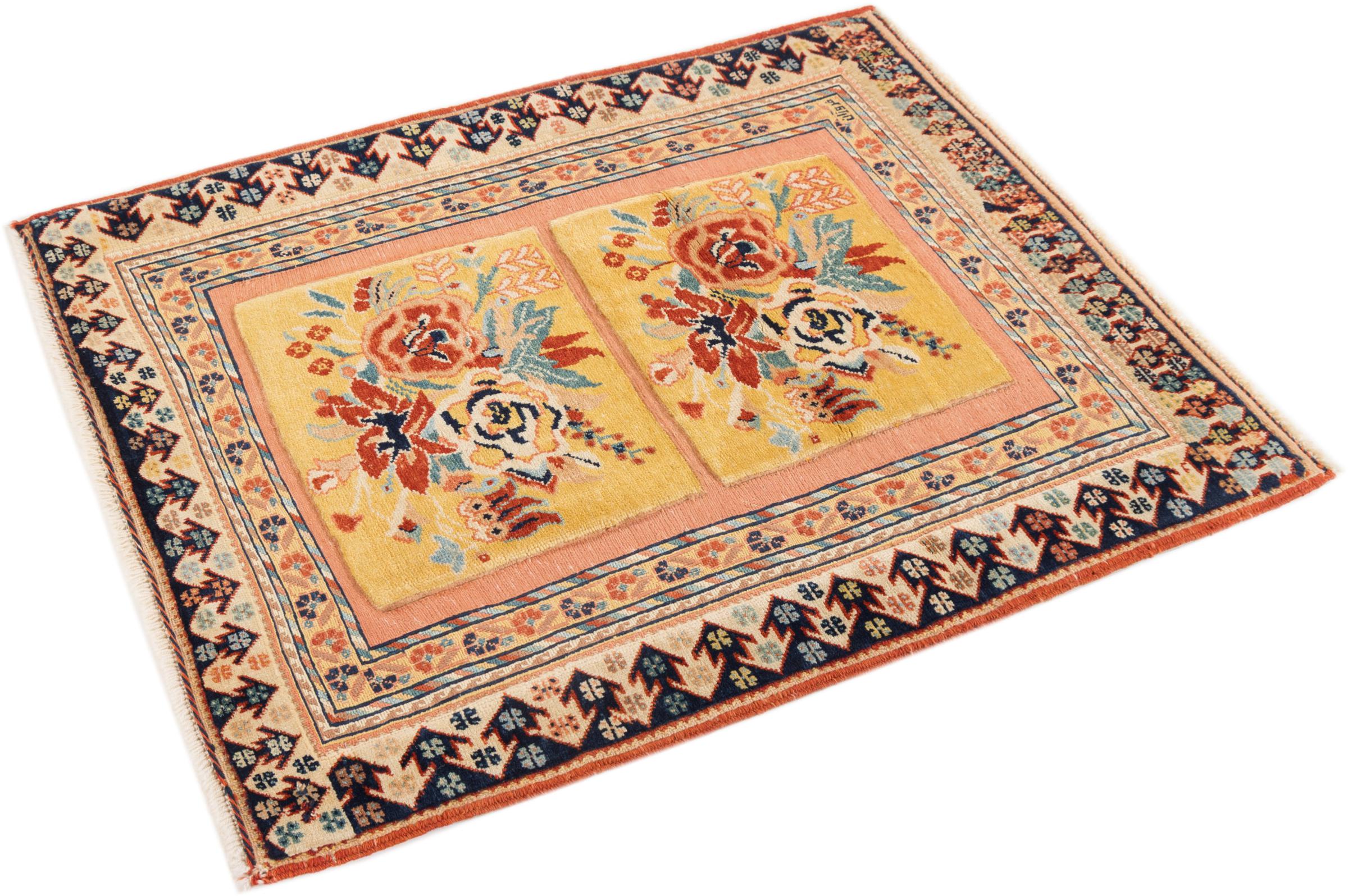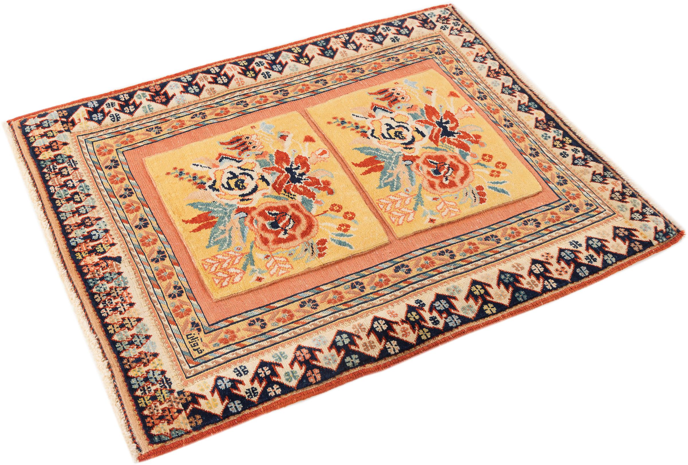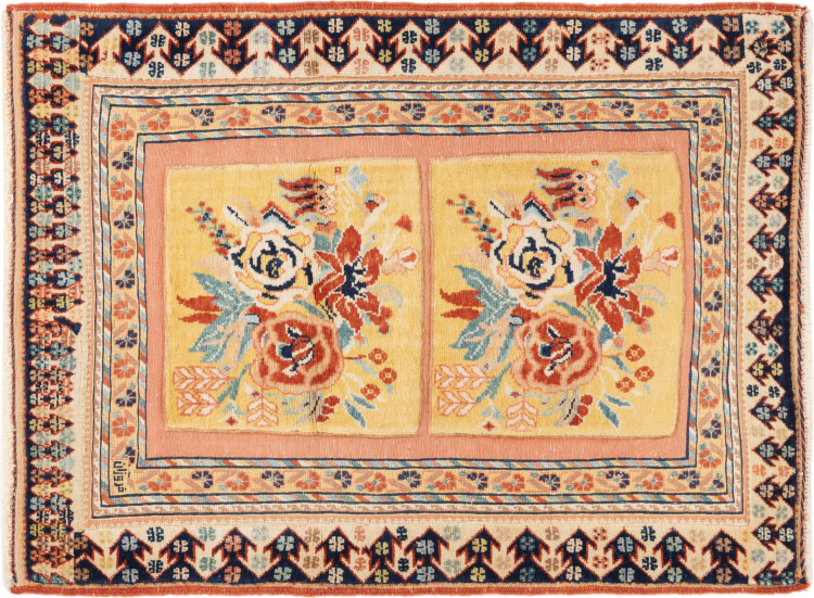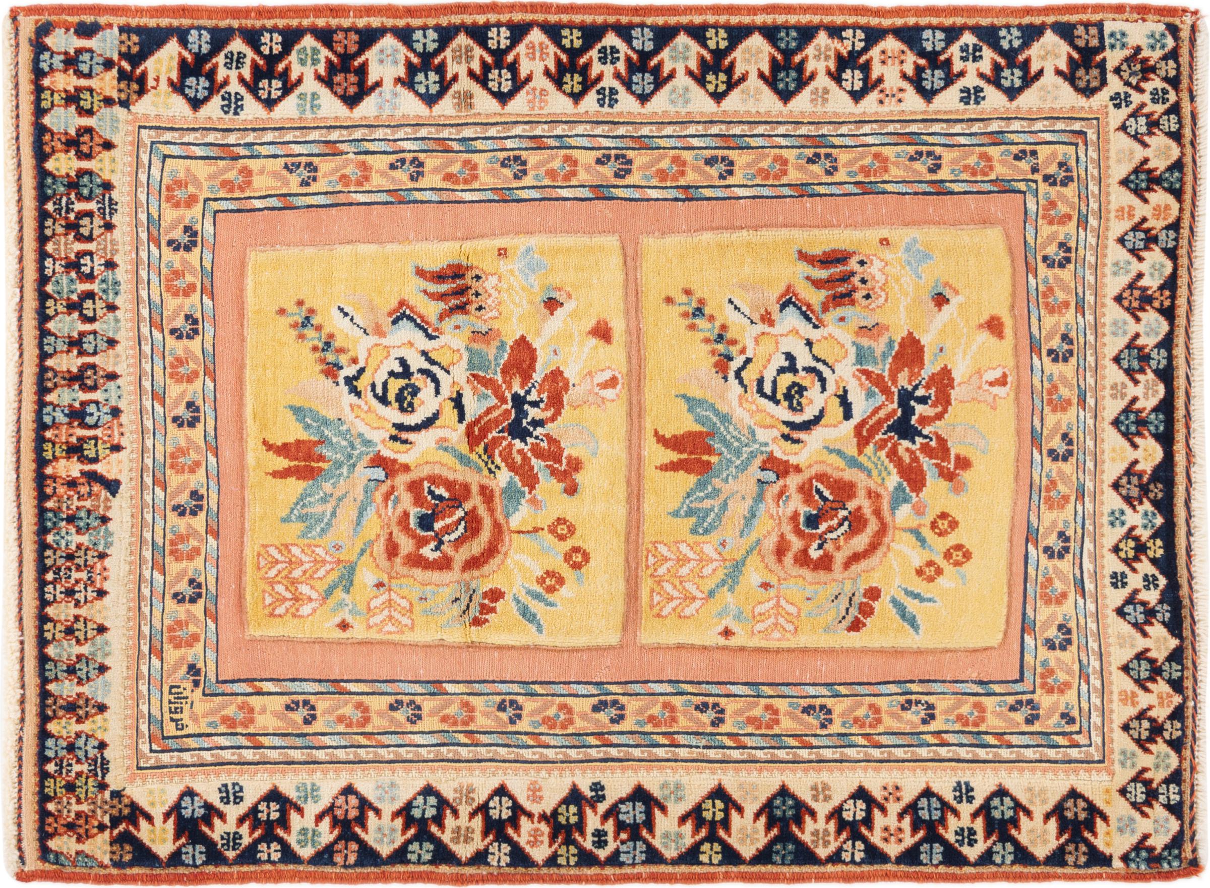 Carpet ID: 296744003317 Size: 118x88 cm Thickness: ap. 8 mm Knot density: 160 000 - 200 000 / m² Manufacturing: Knotted by hand Pile: Handspun wool Warp: Sheep wool Origin: Persia Age: New Weight: ap. 3 kg In stock: Unique - Only 1 in stock