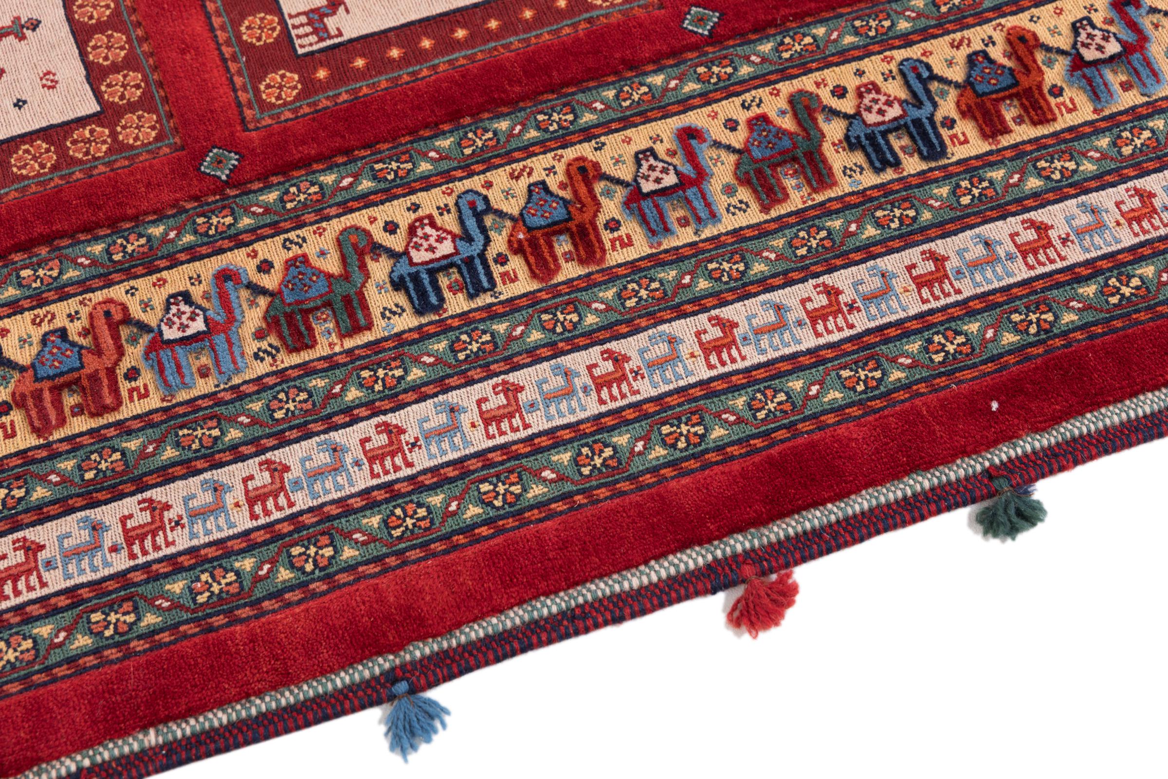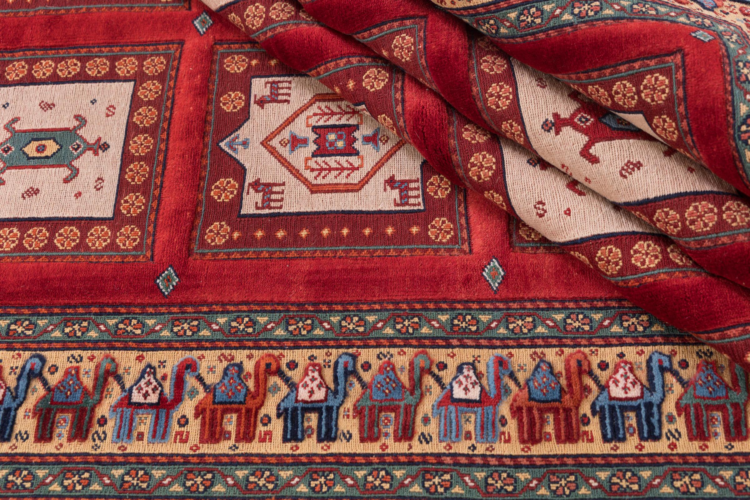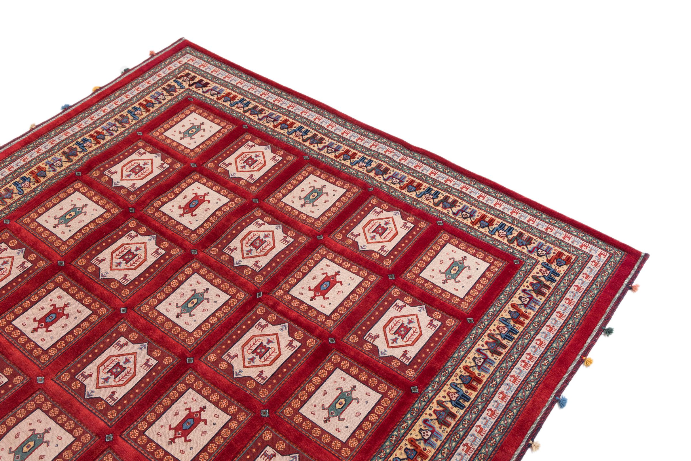 This handknotted and also handwoven Nimbaft is a perfect example of the skills and the combination of two very different manufacturing processes of Oriental Carpets.