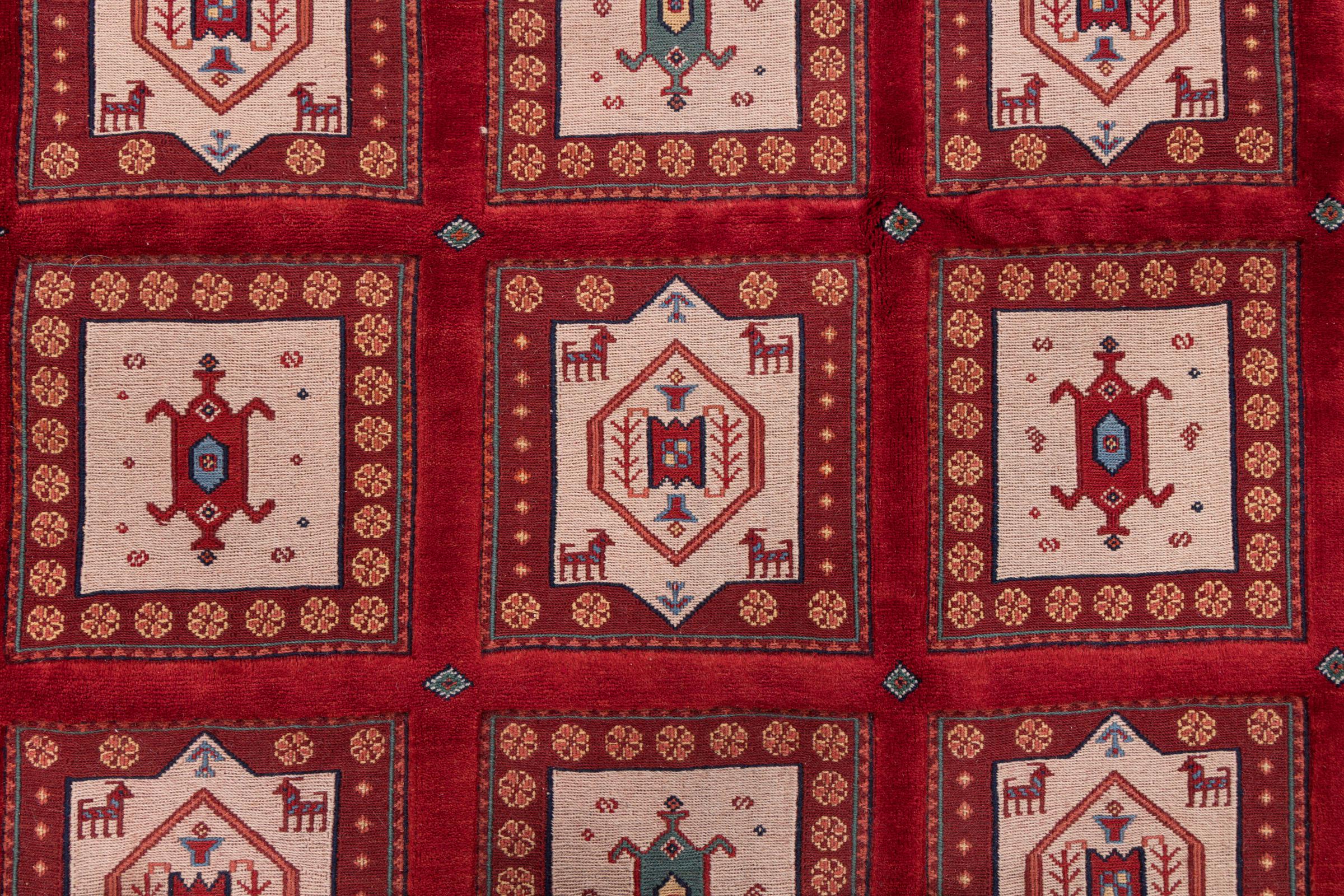 This rug is made of hand spun sheep wool of the highest quality. Especially in Iran (former Persia), Afghanistan and Pakistan wool is still spun by hand before the actual knotting of the rug begins. Wool has proven itself as a natural and extremely hard-wearing material over centuries. Among other things, it has dirt-repellent and heat-insulating properties. At the same time, wool is incomparably soft and has a natural shine.