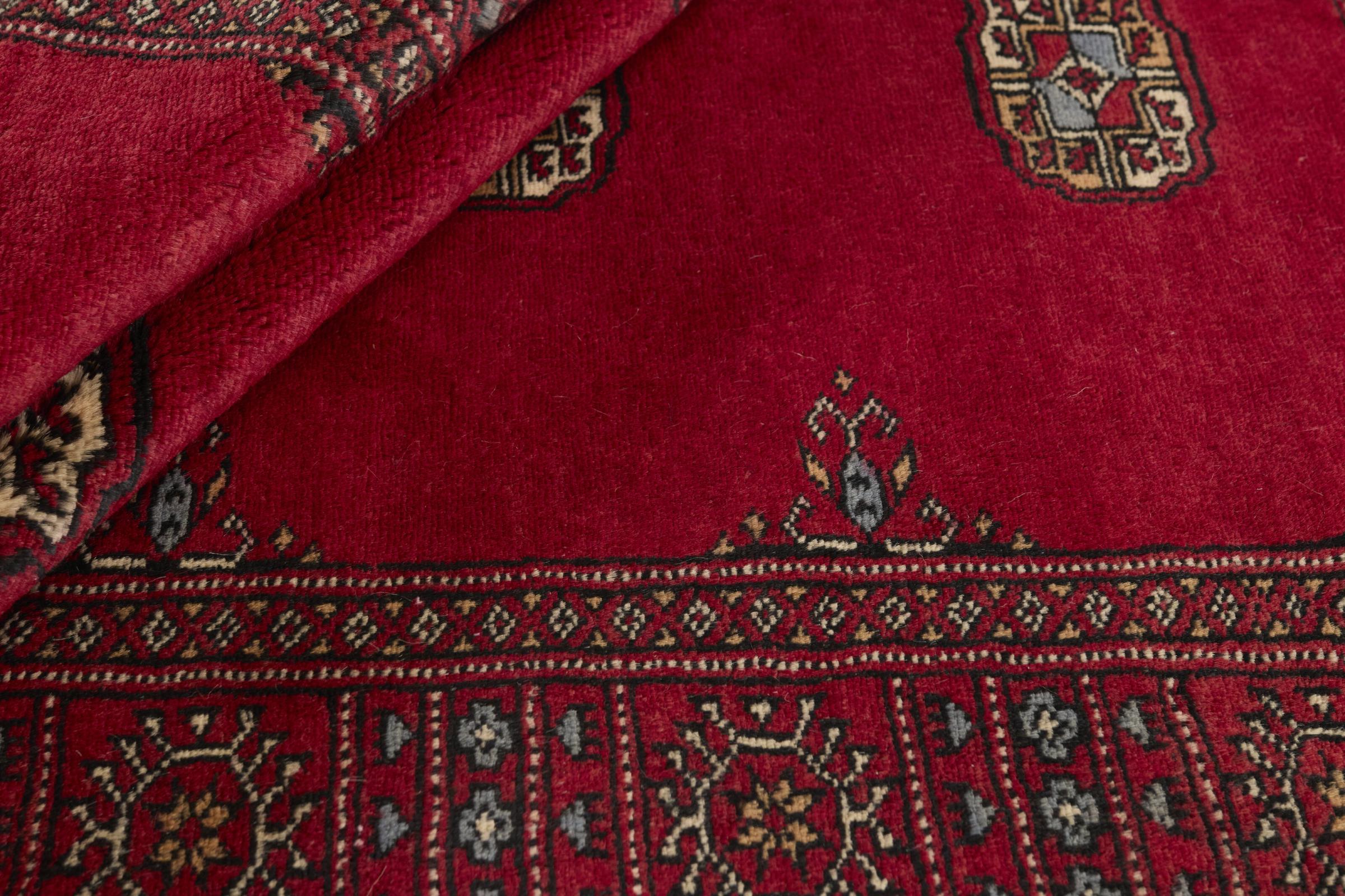 A large part of Pakistani rug production takes place in and around the cities of Lahore and Karachi. Many of the rug knotters of that time fled to Pakistan during the war with India and settled there. Today, especially hand-knotted Pakistan Bukhara rugs are well-known. Similar to the Afghan oriental rugs, Pakistani rugs are also made in dark colours and mostly have shades of red. Even the well-known elephant foot pattern (repeating octagonal pattern) can be found on a Pakistani.