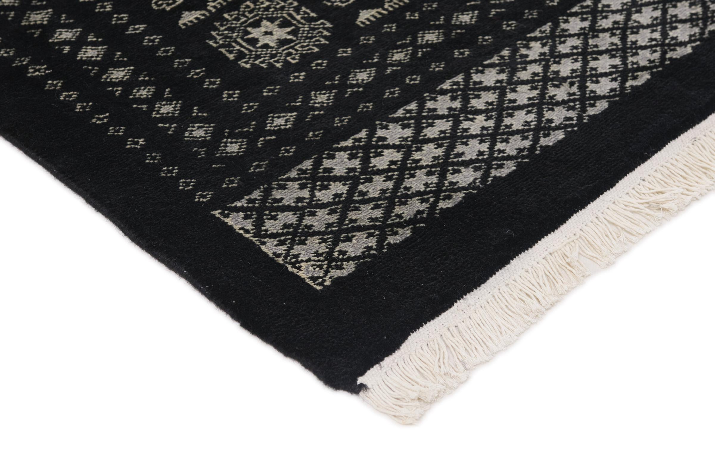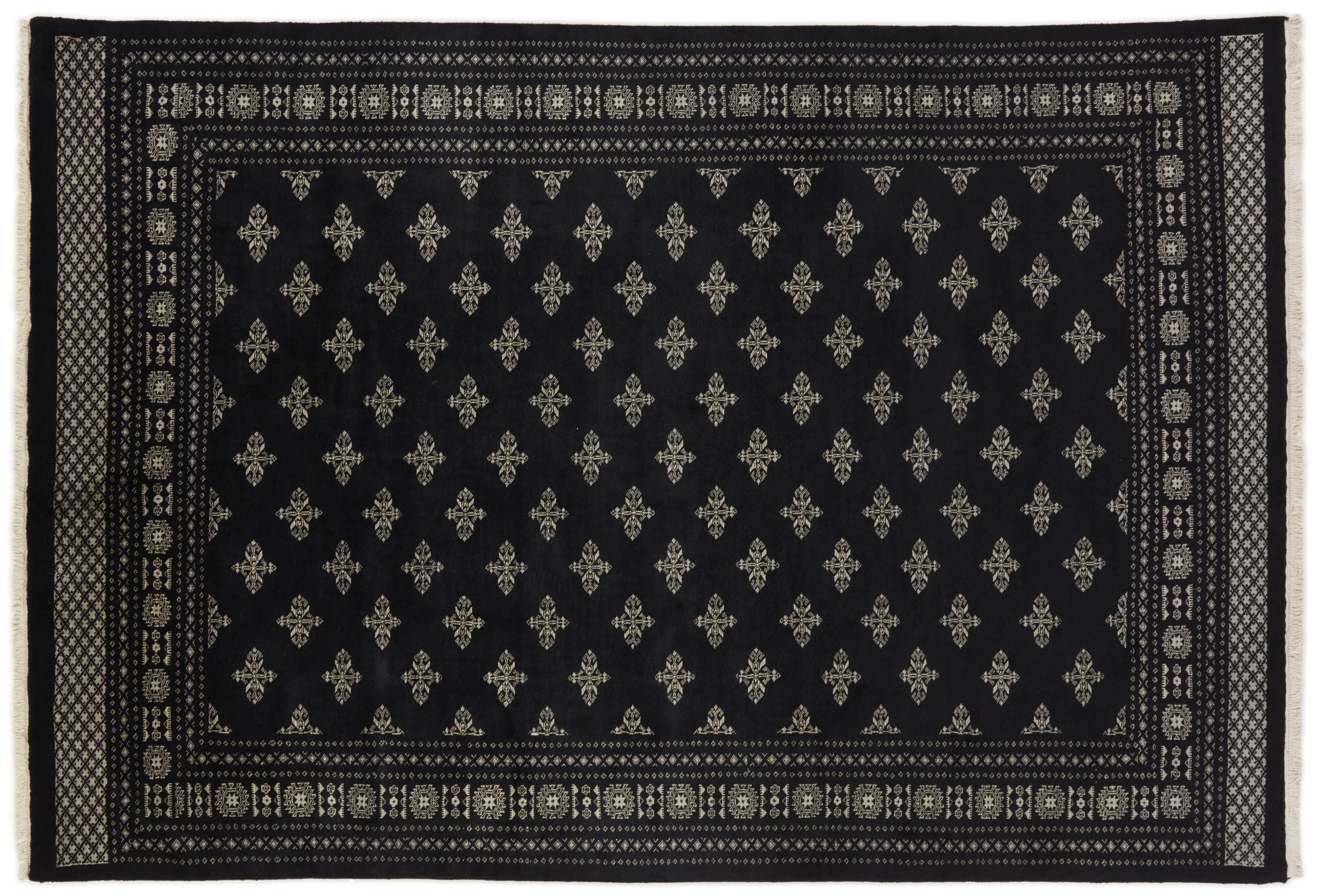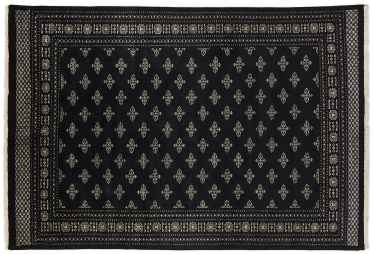 A large part of Pakistani rug production takes place in and around the cities of Lahore and Karachi. Many of the rug knotters of that time fled to Pakistan during the war with India and settled there. Today, especially hand-knotted Pakistan Bukhara rugs are well-known. Similar to the Afghan oriental rugs, Pakistani rugs are also made in dark colours and mostly have shades of red. Even the well-known elephant foot pattern (repeating octagonal pattern) can be found on a Pakistani.