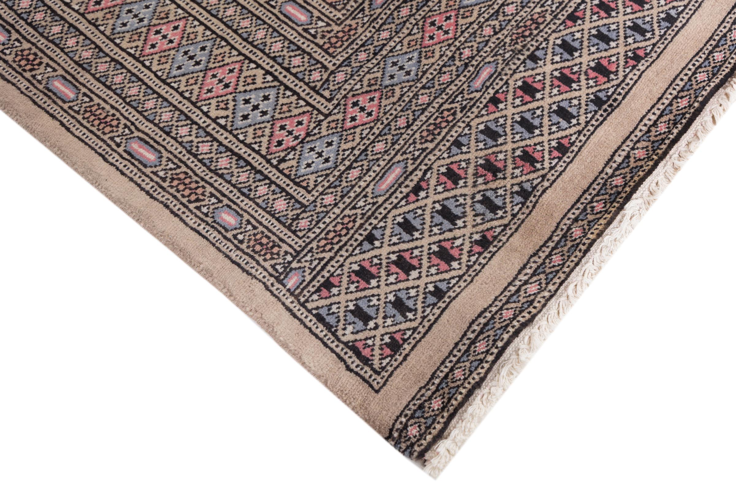 A large part of Pakistani rug production takes place in and around the cities of Lahore and Karachi. Many of the rug knotters of that time fled to Pakistan during the war with India and settled there. Today, especially hand-knotted Pakistan Bukhara rugs are well-known. Similar to the Afghan oriental rugs, Pakistani rugs are also made in dark colours and mostly have shades of red. Even the well-known elephant foot pattern (repeating octagonal pattern) can be found on a Pakistani.