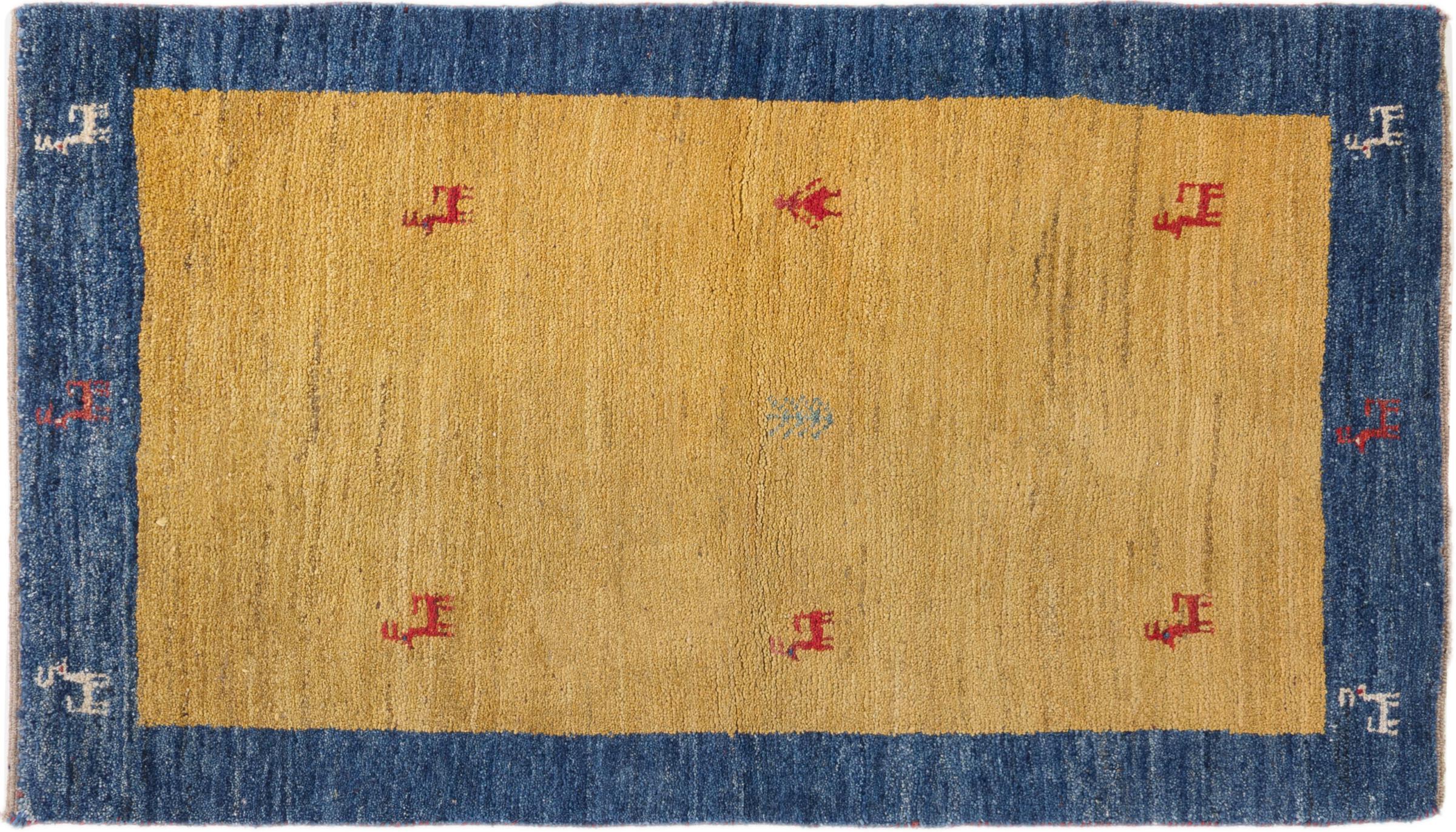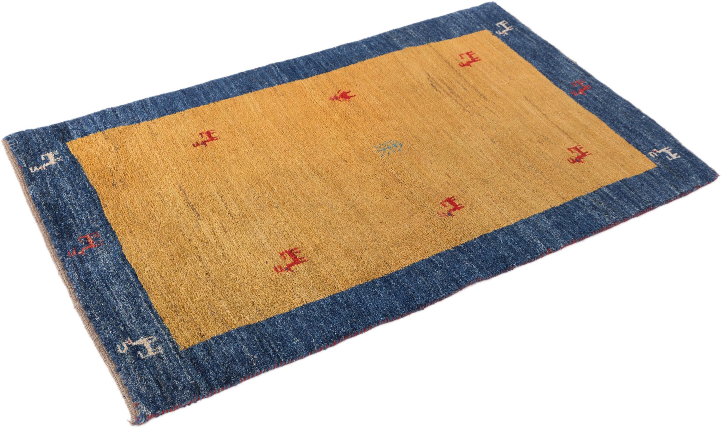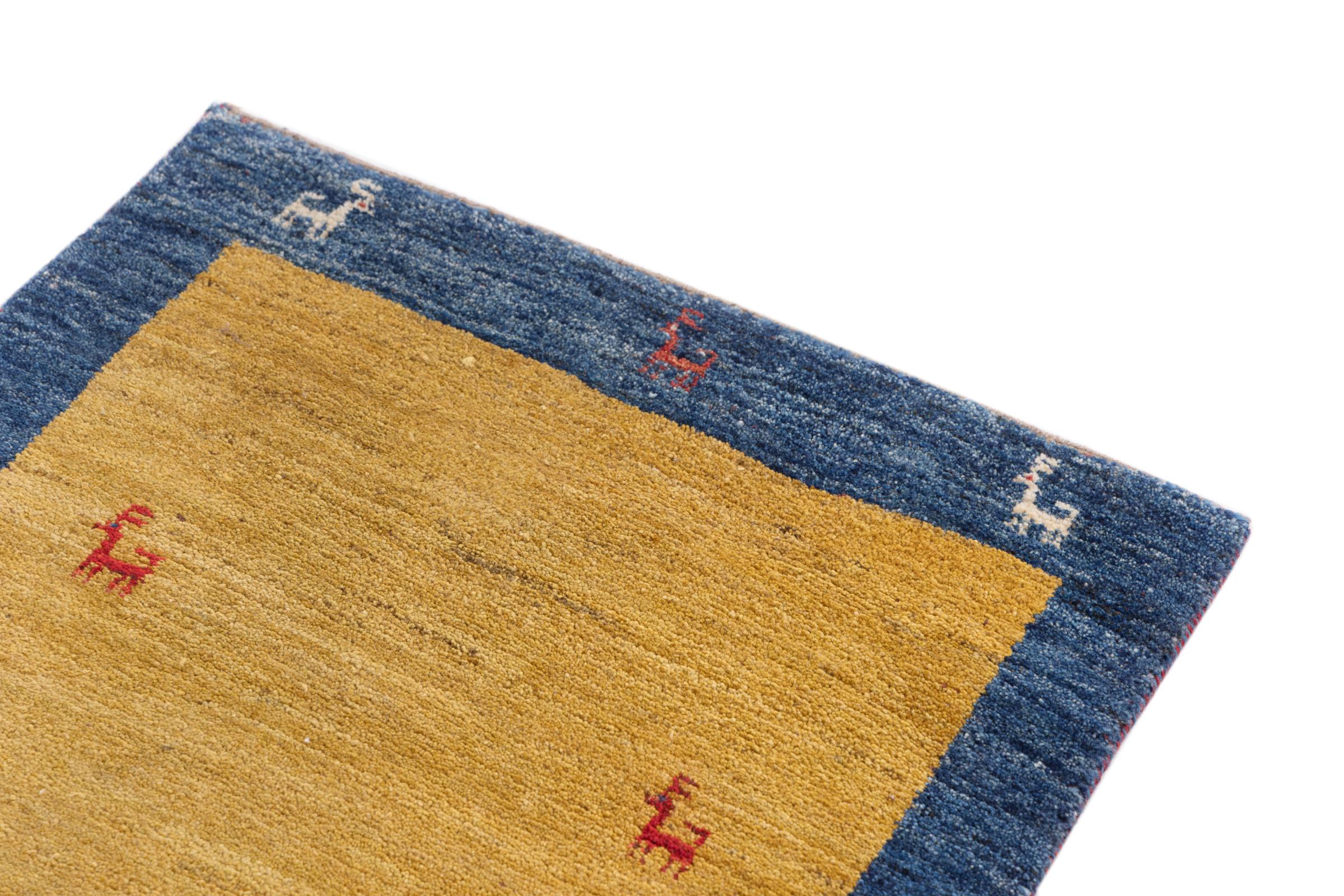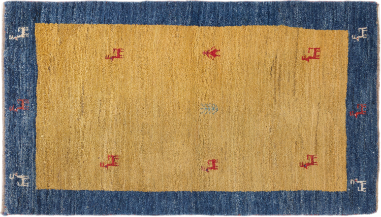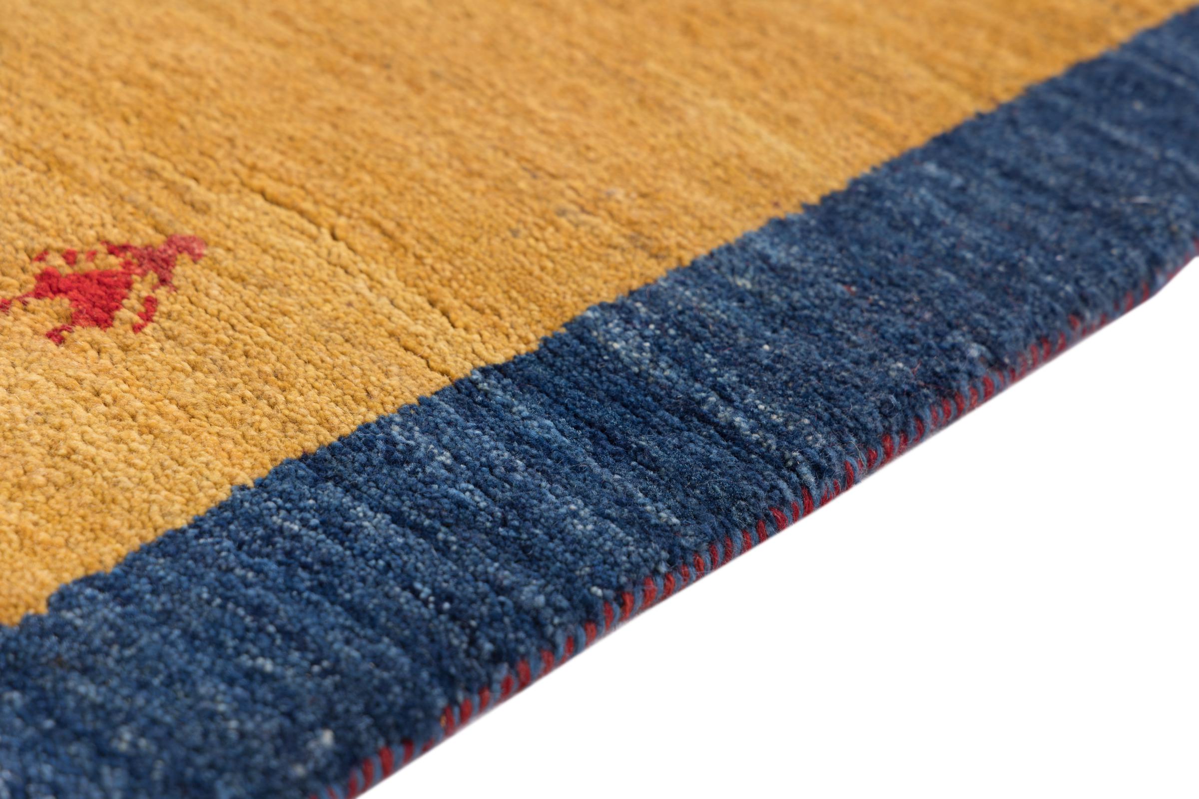 This beautiful rug is a Persian Gabbeh and thus belongs to the highest quality Gabbeh rugs. The rugs are knotted by nomads or semi-nomads in Iran following traditional handicraft. The simple motifs and patterns are mostly inspired by the nomads' close environment. For example camels, trees or bushes can be found on the traditional rugs. Persian Gabbeh rugs are made of wool from locally raised flocks of sheep. The wool is therefore mostly still spun by hand. Thus each of these oriental rugs embodies a unique character of centuries-old culture.
