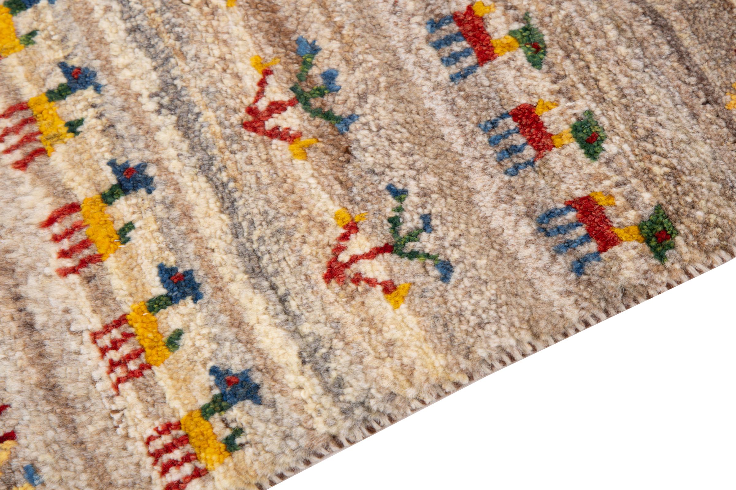 This rug belongs to village and nomadic rugs from Iran, formerly Persia. This type of rug is knotted by hand in smaller towns and villages in old tradition. Even nomads still knot Persian rugs in the open air. The rugs are knotted without a draft and completely from the mind. They are characterized by classical ornaments, which are arranged in straight and geometrical patterns. Thanks to their cultural-traditional origin, these rugs have a unique character that embodies ancient Persia.