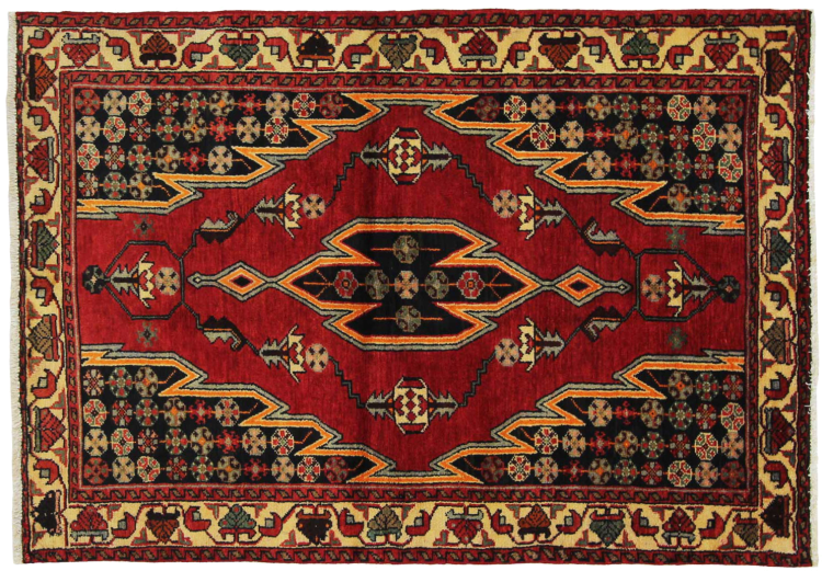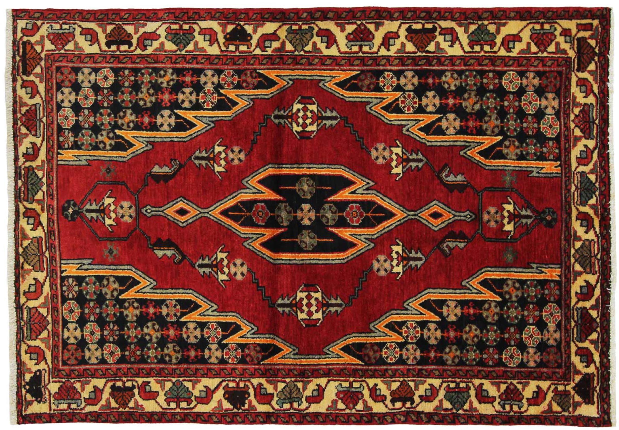 Carpet ID: 318571006185719 Size: 151x107 cm Thickness: ap. 12 mm Knot density: 128 000 - 160 000 / m² Manufacturing: Knotted by hand Pile: Handspun wool Warp: Cotton Origin: Persia Age: New Weight: ap. 6 kg In stock: Unique - Only 1 in stock