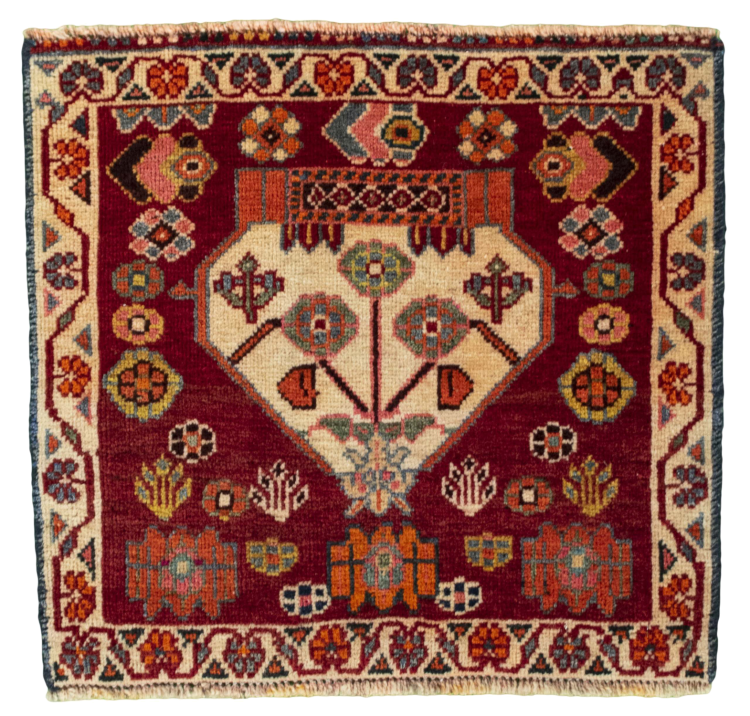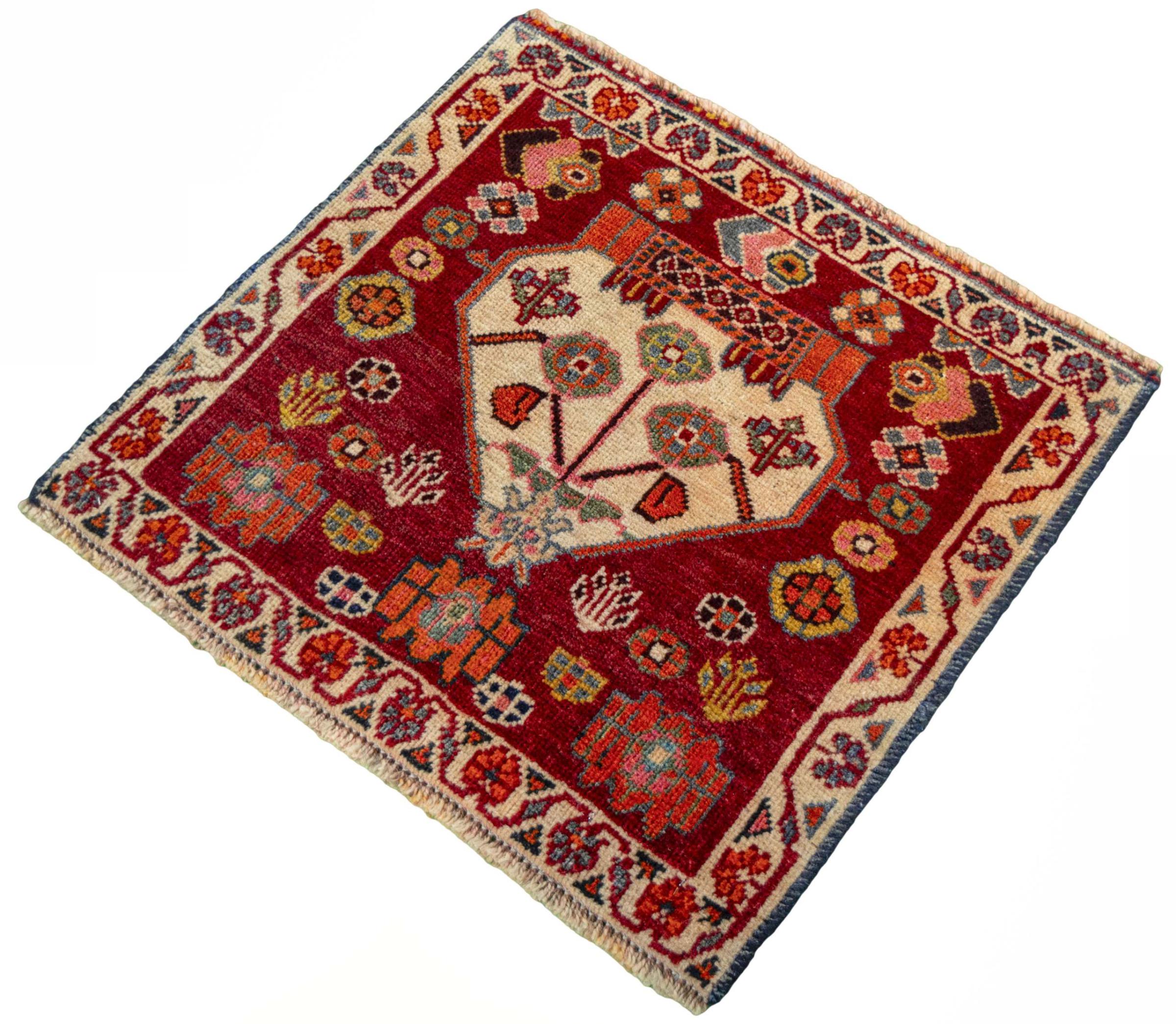 Carpet ID: 300157008273929 Size: 52x56 cm Thickness: ap. 10 mm Knot density: 96 000 - 120 000 / m² Manufacturing: Knotted by hand Pile: Handspun wool Warp: Sheep wool Origin: Persia Age: New Weight: ap. 1 kg In stock: Unique - Only 1 in stock