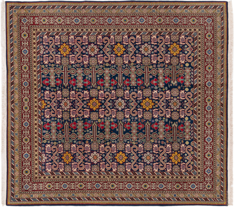 Carpet ID: 296277001956 Size: 220x220 cm Thickness: ap. 12 mm Knot density: 200 000 - 250 000 / m² Manufacturing: Knotted by hand Pile: Handspun wool Warp: Cotton Origin: Azerbaijan / Russia Age: New Weight: ap. 15 kg Also know as Afghan Shirvan, Kaukasisch In stock: Unique - Only 1 in stock