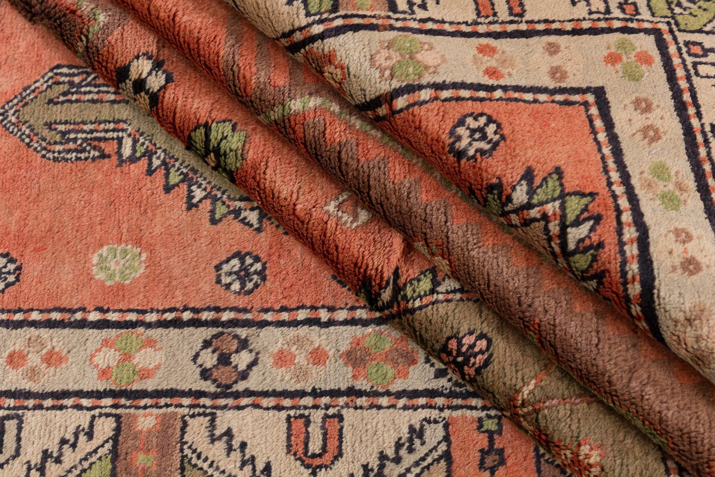 This handknotted Shirvan is a very robust carpet from eastern Caucasus, which catches one’s eye with its beautiful colouring and its beautiful decorating elements. Thanks to a very dense knotting it is also durable.