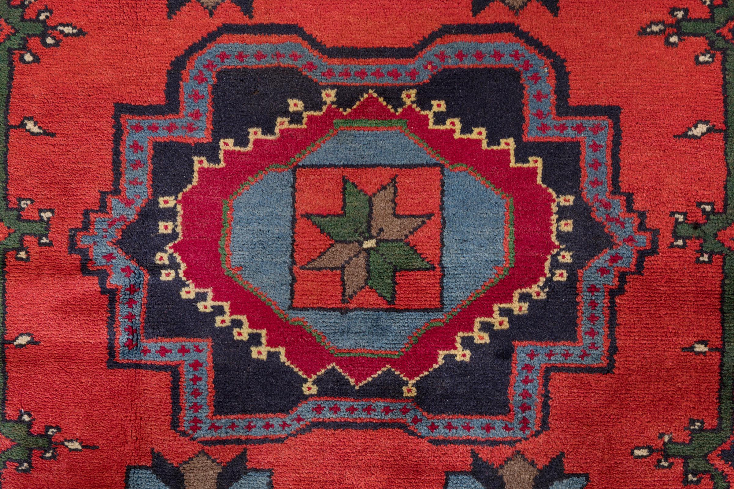 This handknotted Shirvan is a very robust carpet from eastern Caucasus, which catches one’s eye with its beautiful colouring and its beautiful decorating elements. Thanks to a very dense knotting it is also durable.