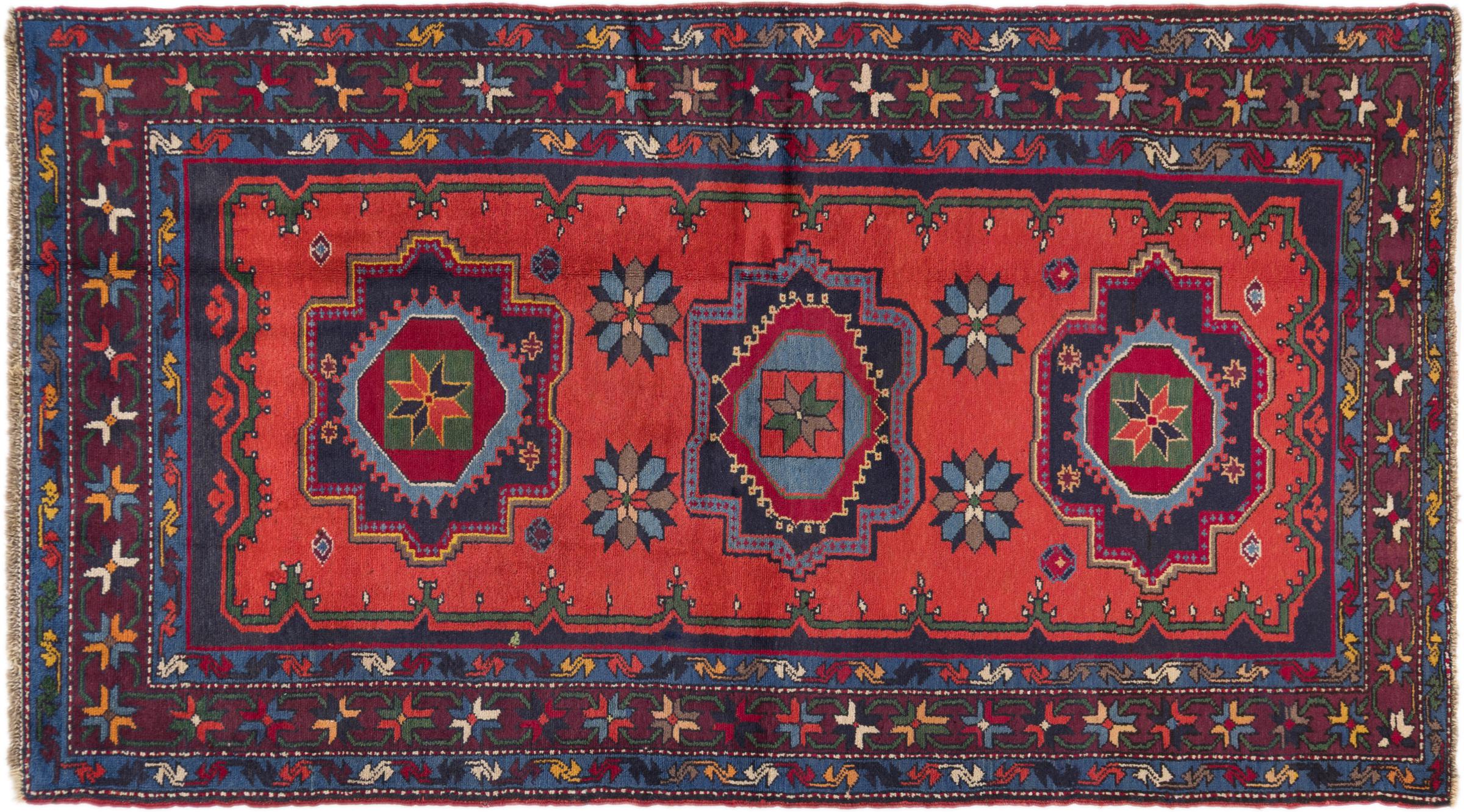 Carpet ID: 296094006751 Size: 220x120 cm Thickness: ap. 12 mm Knot density: 200 000 - 250 000 / m² Manufacturing: Knotted by hand Pile: Handspun wool Warp: Sheep wool Origin: Azerbaijan / Russia Age: Old/Semi antique, over 50 years Weight: ap. 8 kg Also know as Afghan Shirvan, Kaukasisch In stock: Unique - Only 1 in stock