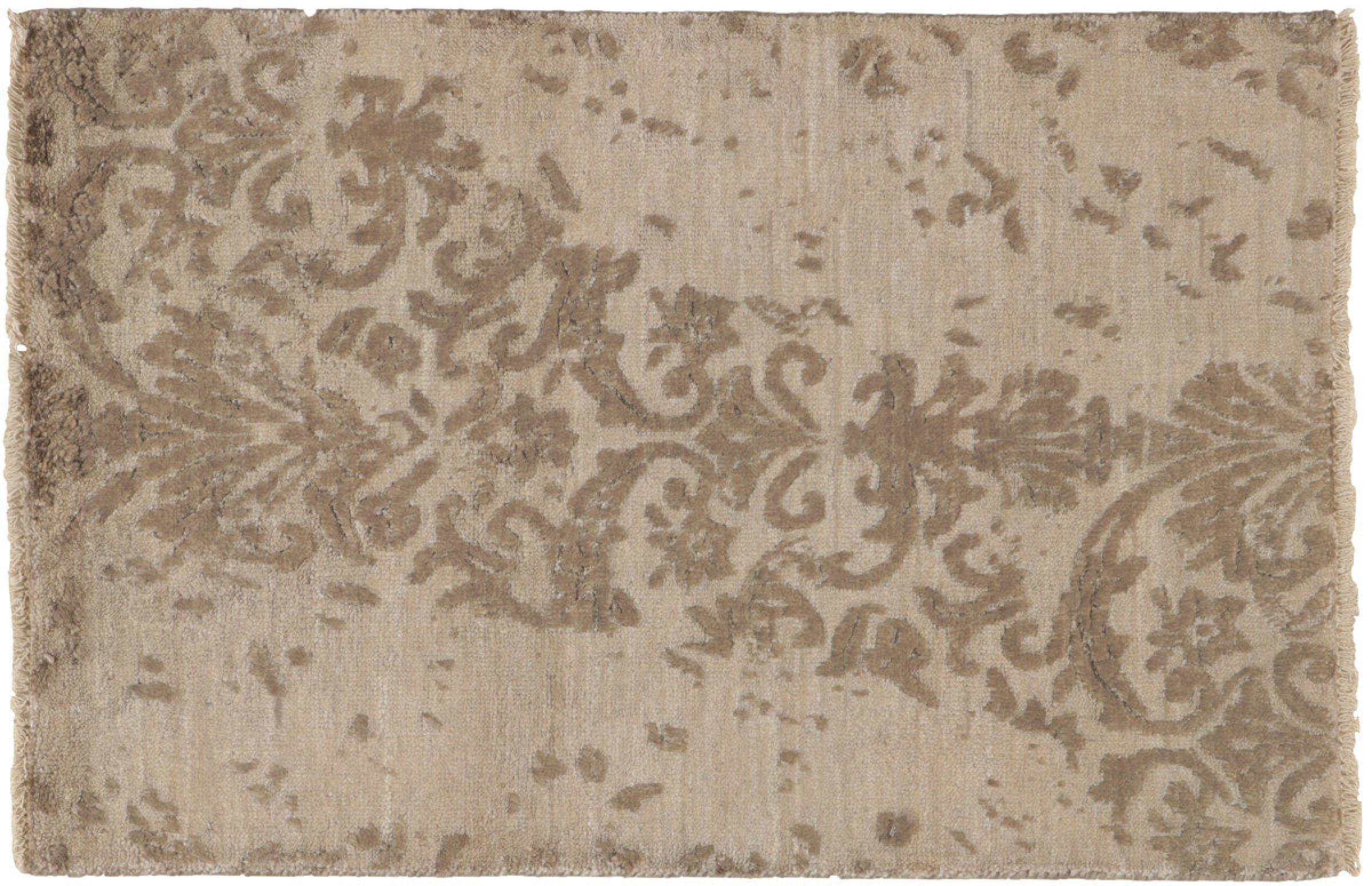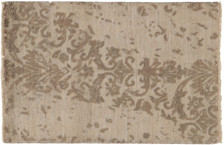 Carpet ID: 85117009257024 Size: 89x59 cm Thickness: ap. 12 mm Knot density: 200 000 - 250 000 / m² Manufacturing: Knotted by hand Pile: Wool with bamboo-silk Warp: Cotton Origin: India Age: New Weight: ap. 2 kg In stock: Unique - Only 1 in stock