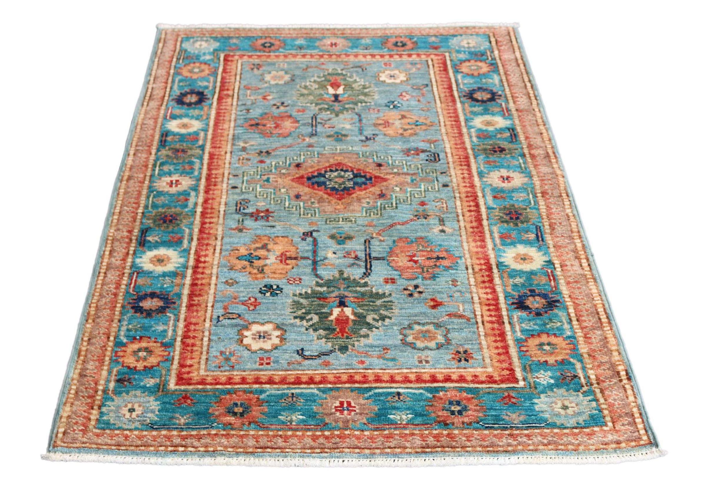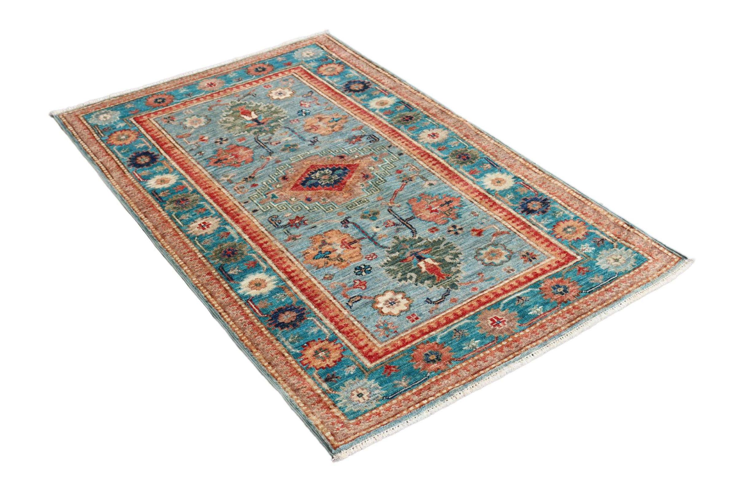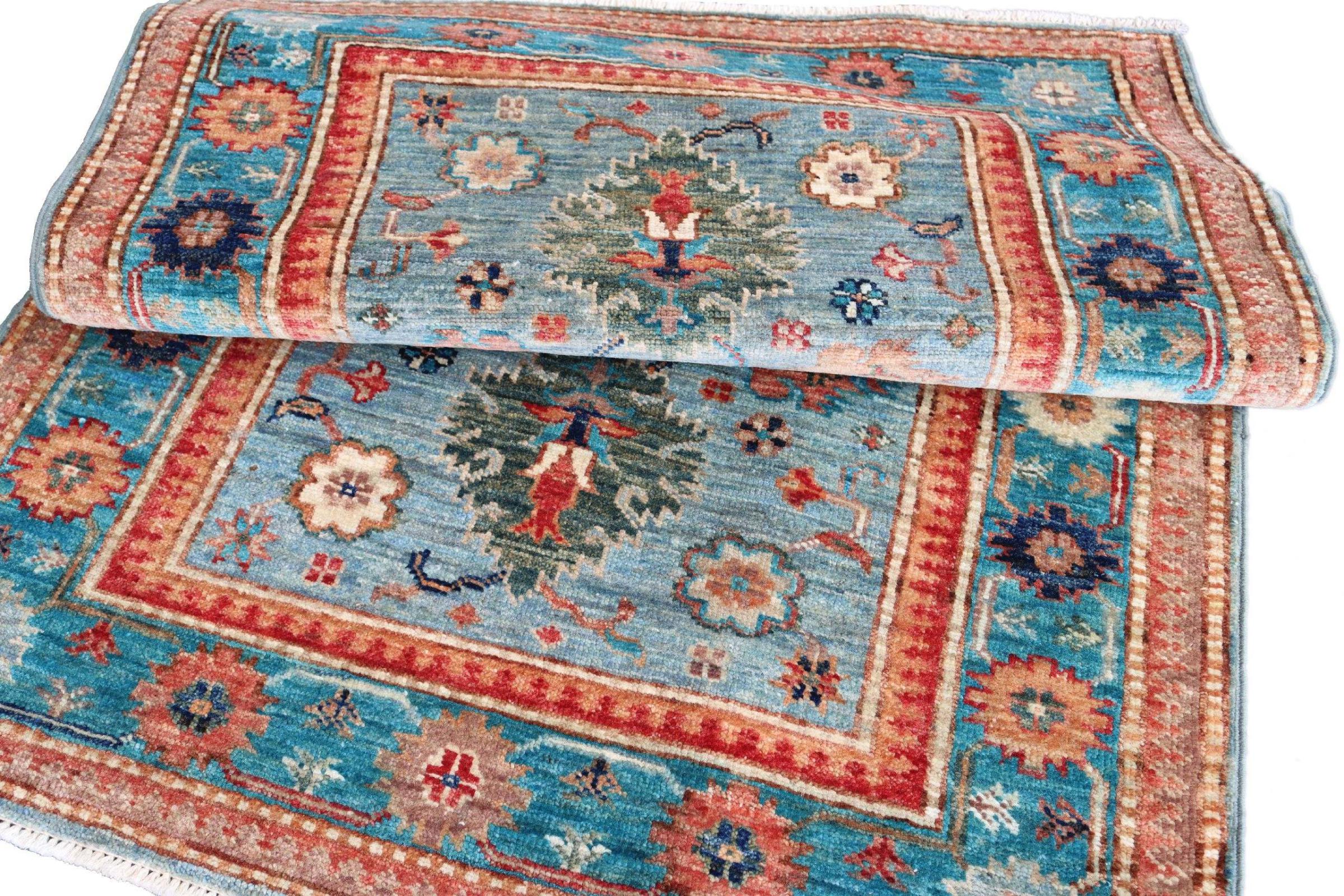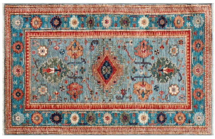 Carpet ID: 310521006374766 Size: 127x82 cm Thickness: ap. 5 mm Knot density: 120 000 - 150 000 / m² Manufacturing: Knotted by hand Pile: Handspun wool Warp: Cotton Origin: Pakistan Age: New Weight: ap. 3 kg In stock: Unique - Only 1 in stock