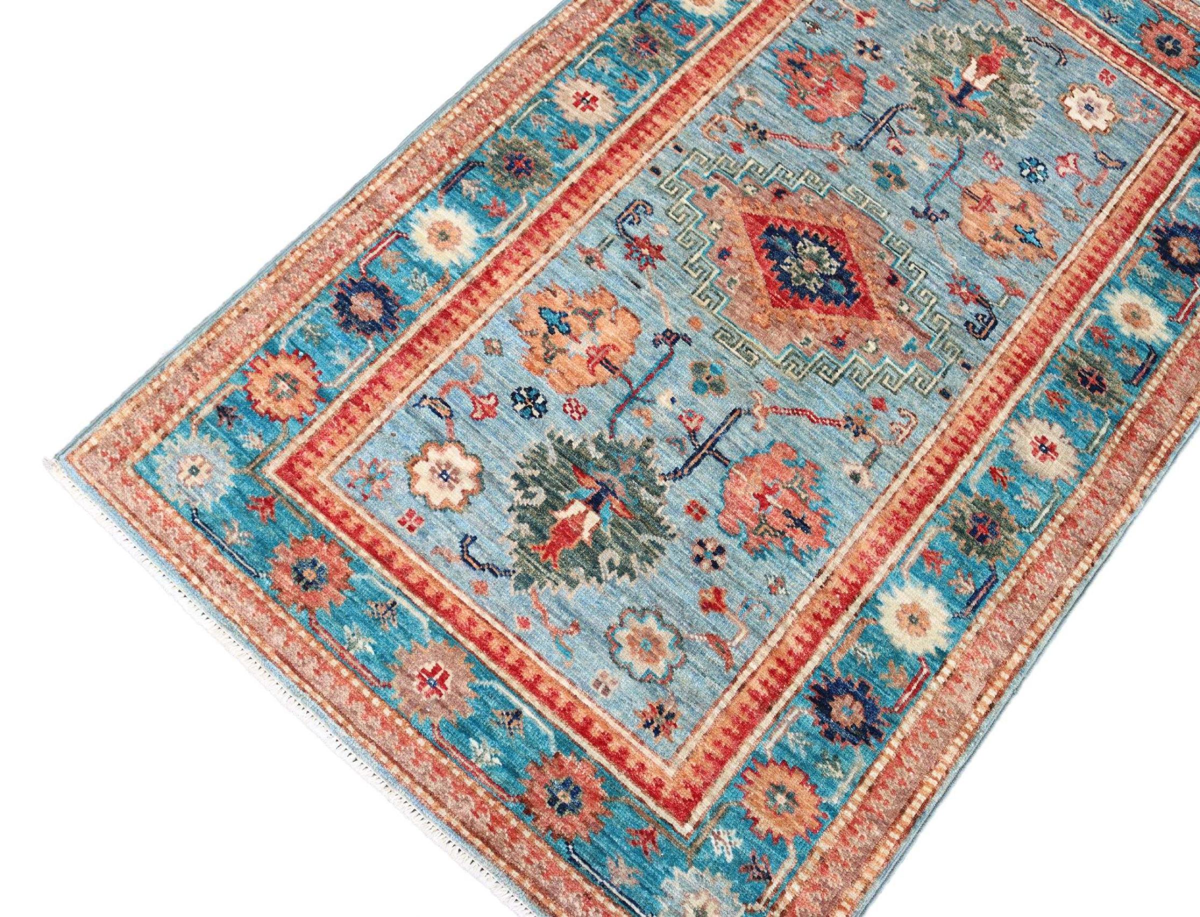 This rug is made of hand spun sheep wool of the highest quality. Especially in Iran (former Persia), Afghanistan and Pakistan wool is still spun by hand before the actual knotting of the rug begins. Wool has proven itself as a natural and extremely hard-wearing material over centuries. Among other things, it has dirt-repellent and heat-insulating properties. At the same time, wool is incomparably soft and has a natural shine.