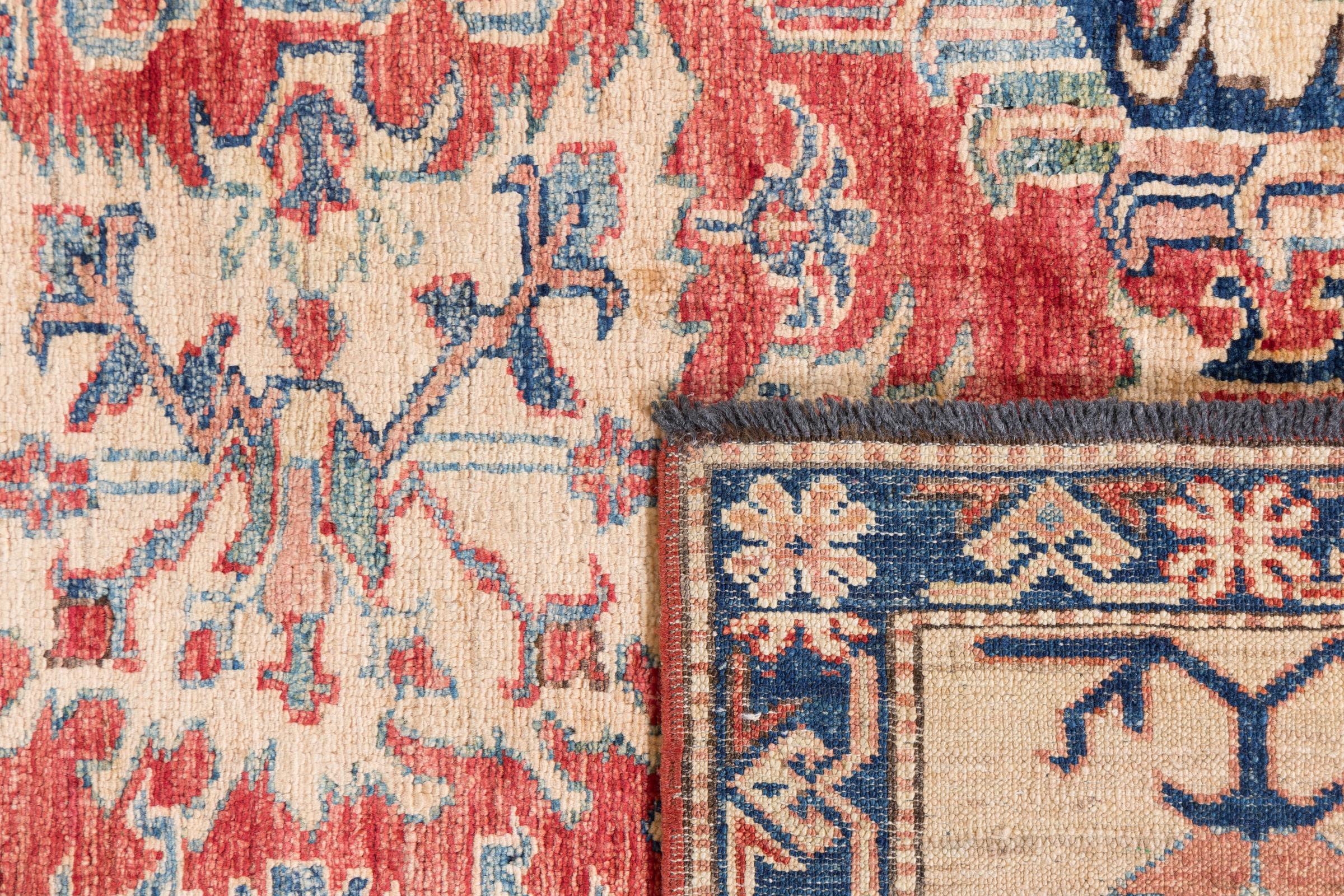 This rug is made of hand spun sheep wool of the highest quality. Especially in Iran (former Persia), Afghanistan and Pakistan wool is still spun by hand before the actual knotting of the rug begins. Wool has proven itself as a natural and extremely hard-wearing material over centuries. Among other things, it has dirt-repellent and heat-insulating properties. At the same time, wool is incomparably soft and has a natural shine.
