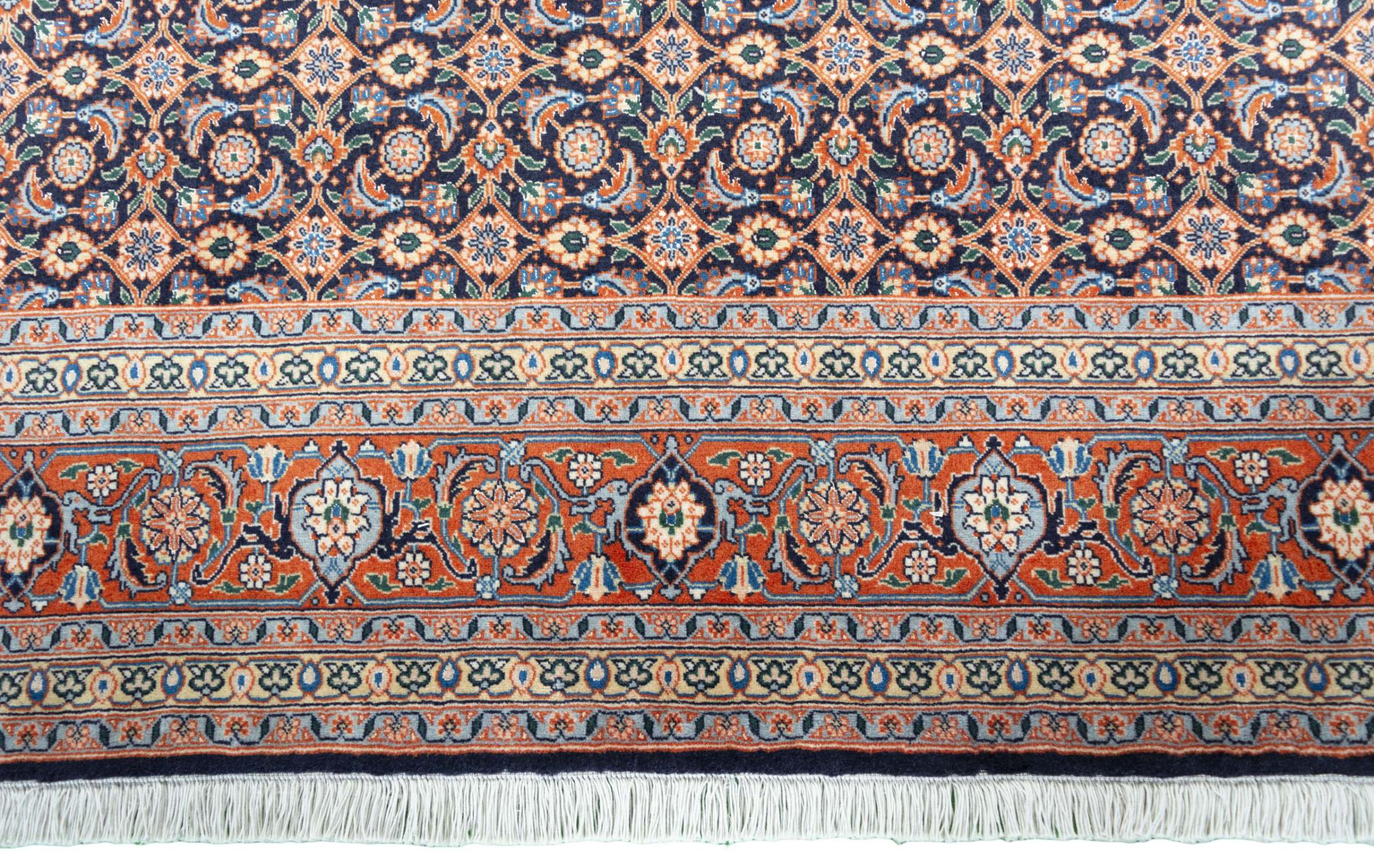 Carpet ID: 310539007592311 Size: 197x154 cm Thickness: ap. 7 mm Knot density: 450 000 - 500 000 / m² Manufacturing: Knotted by hand Pile: Cork wool with silk Warp: Cotton Origin: Persia Age: New Weight: ap. 9 kg Also know as Tabriz, Tabris, Täbris, Tebriz, Tebris, 40Raj, 50Raj In stock: Unique - Only 1 in stock