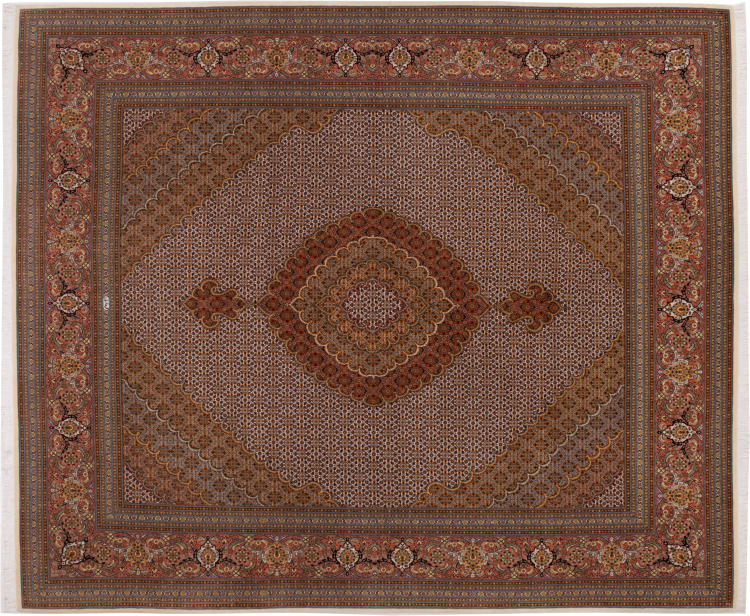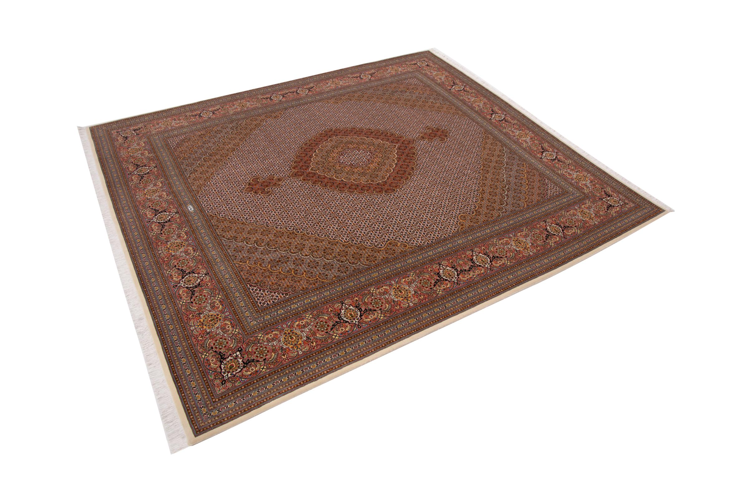 Carpet ID: 292768007560261 Size: 308x256 cm Thickness: ap. 7 mm Knot density: 440 000 - 490 000 / m² Manufacturing: Knotted by hand Pile: Wool with silk Warp: Cotton Origin: Persia Age: New Weight: ap. 24 kg Also know as Tabriz, Tabris, Täbris, Tebriz, Tebris, 40Raj, 50Raj In stock: Unique - Only 1 in stock