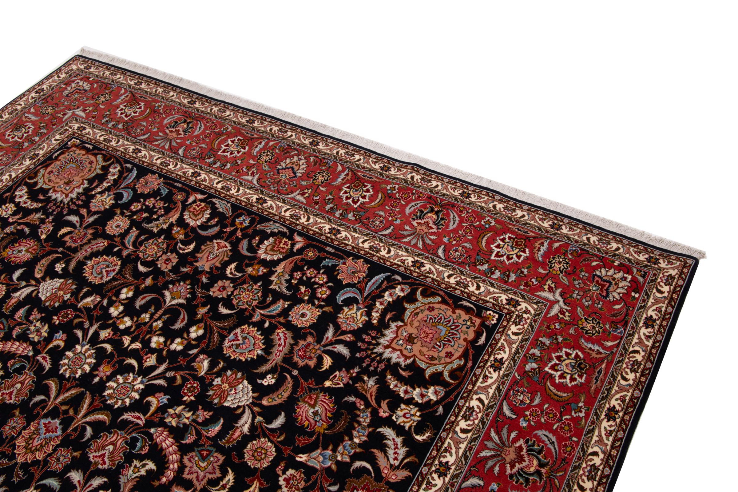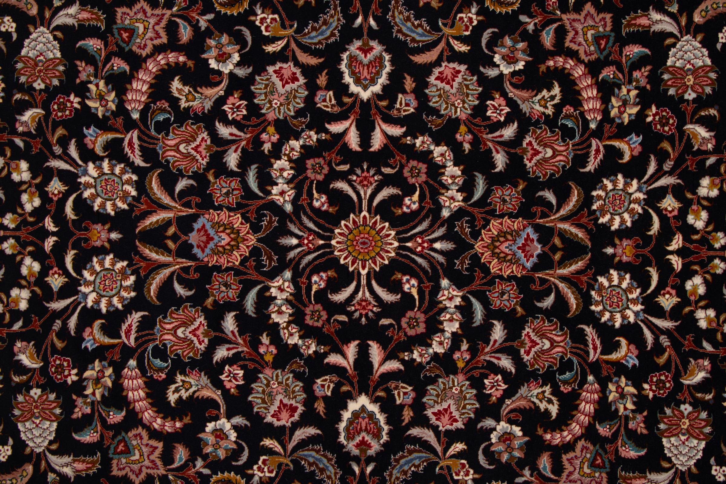 Carpet ID: 292735002273597 Size: 311x254 cm Thickness: ap. 7 mm Knot density: 440 000 - 490 000 / m² Manufacturing: Knotted by hand Pile: Wool with silk Warp: Cotton Origin: Persia Age: New Weight: ap. 24 kg Also know as Tabriz, Tabris, Täbris, Tebriz, Tebris, 40Raj, 50Raj In stock: Unique - Only 1 in stock