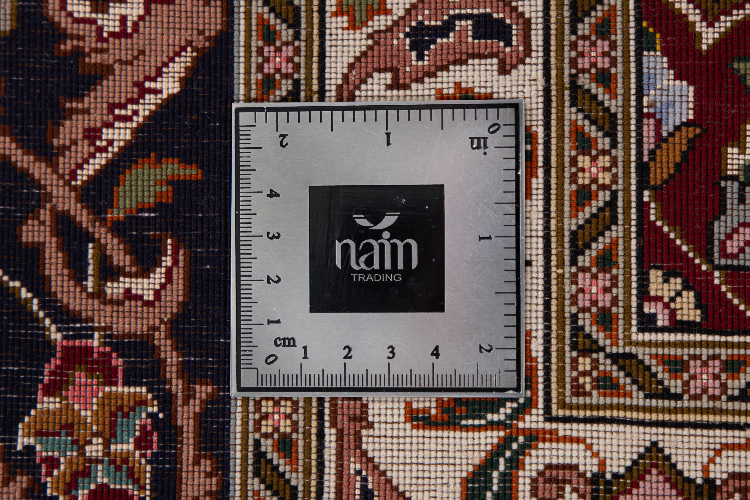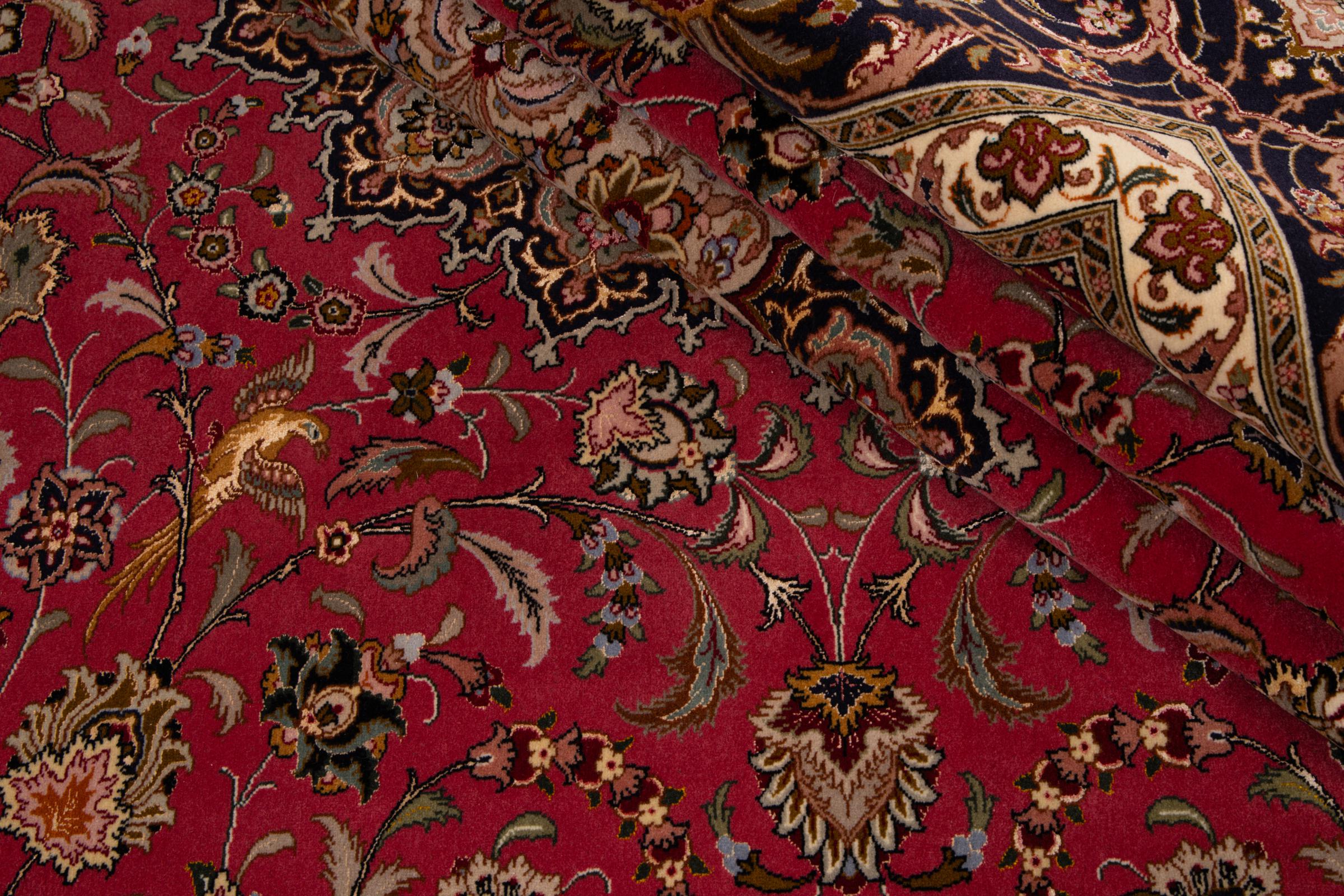 Carpet ID: 293791001609729 Size: 347x249 cm Thickness: ap. 7 mm Knot density: 440 000 - 490 000 / m² Manufacturing: Knotted by hand Pile: Wool with silk Warp: Cotton Origin: Persia Age: New Weight: ap. 26 kg Also know as Tabriz, Tabris, Täbris, Tebriz, Tebris, 40Raj, 50Raj In stock: Unique - Only 1 in stock