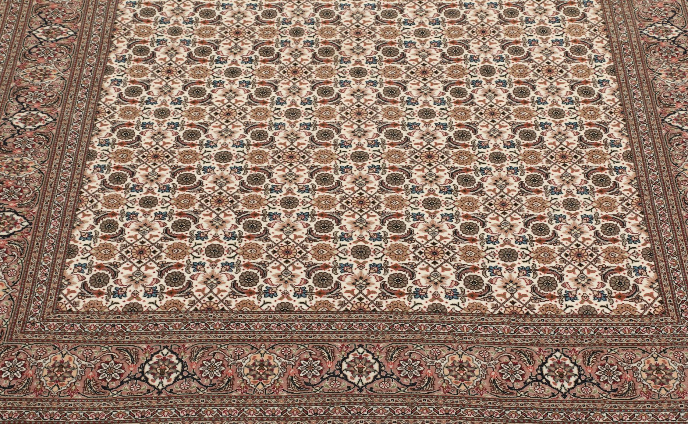 Carpet ID: 308733003373613 Size: 207x151 cm Thickness: ap. 7 mm Knot density: 440 000 - 490 000 / m² Manufacturing: Knotted by hand Pile: Wool with silk Warp: Cotton Origin: Persia Age: New Weight: ap. 9 kg Also know as Tabris, Tabriz, Tebris, Tebriz, Täbris In stock: Unique - Only 1 in stock
