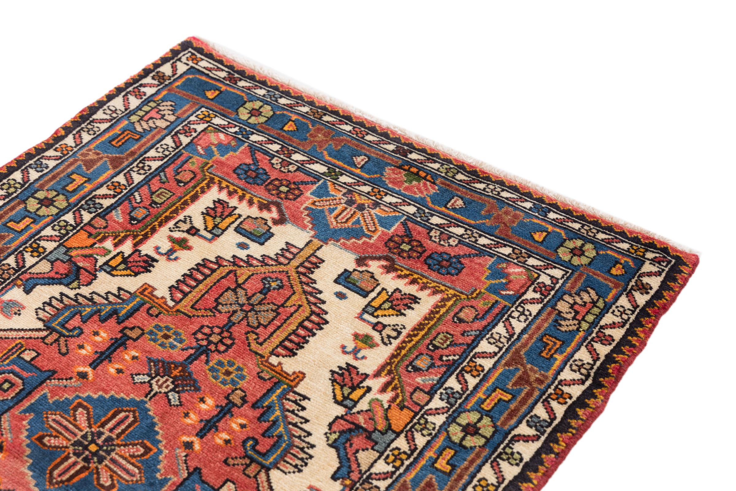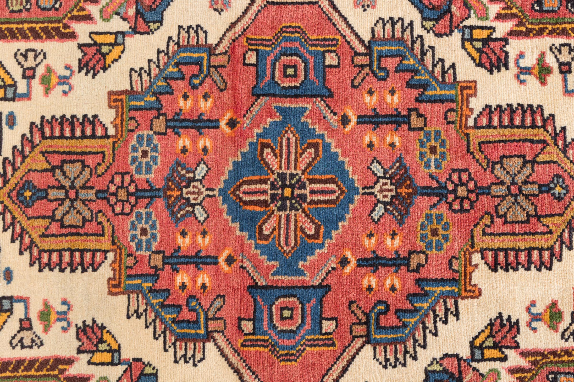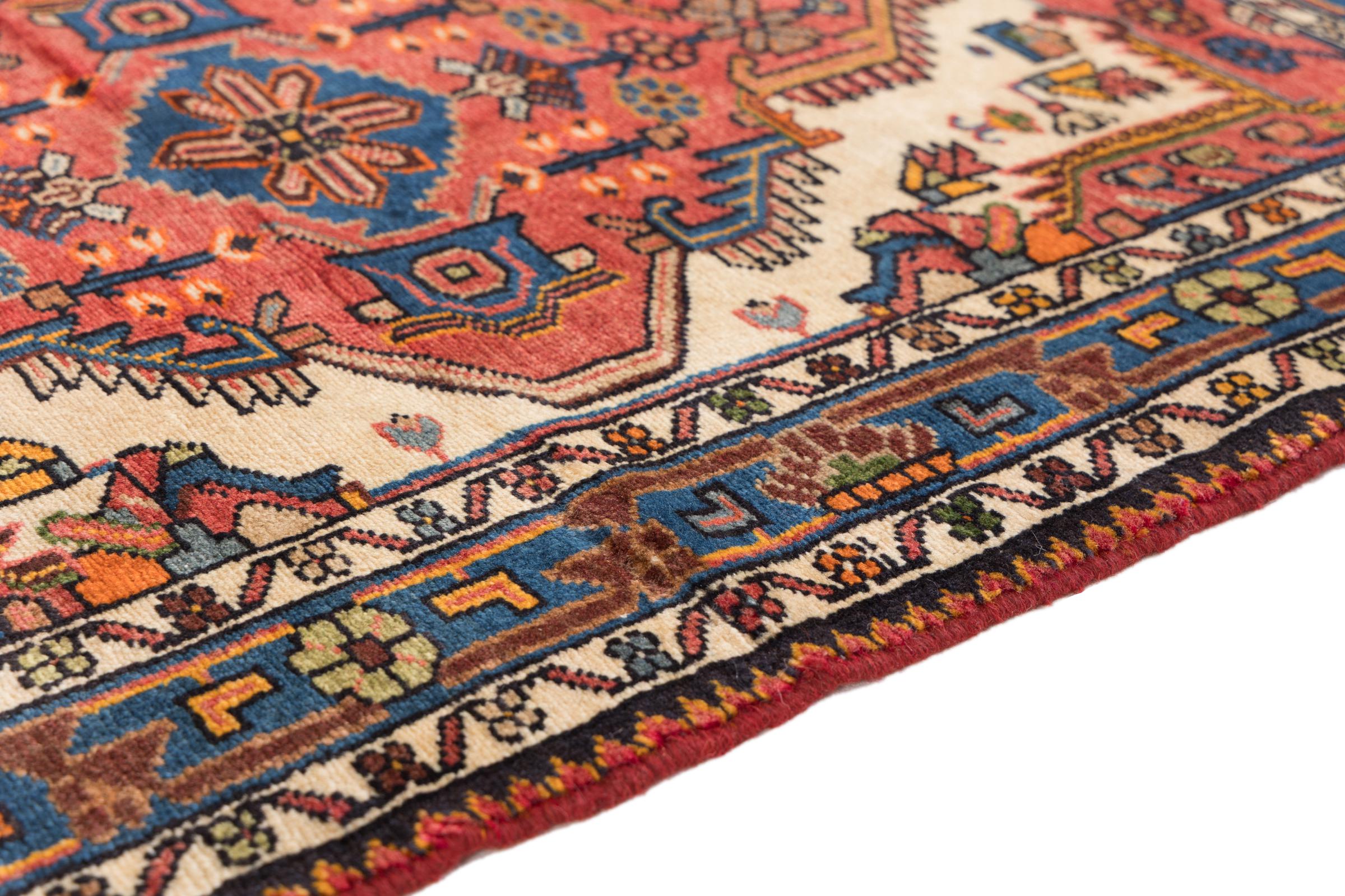 This rug belongs to village and nomadic rugs from Iran, formerly Persia. This type of rug is knotted by hand in smaller towns and villages in old tradition. Even nomads still knot Persian rugs in the open air. The rugs are knotted without a draft and completely from the mind. They are characterized by classical ornaments, which are arranged in straight and geometrical patterns. Thanks to their cultural-traditional origin, these rugs have a unique character that embodies ancient Persia.