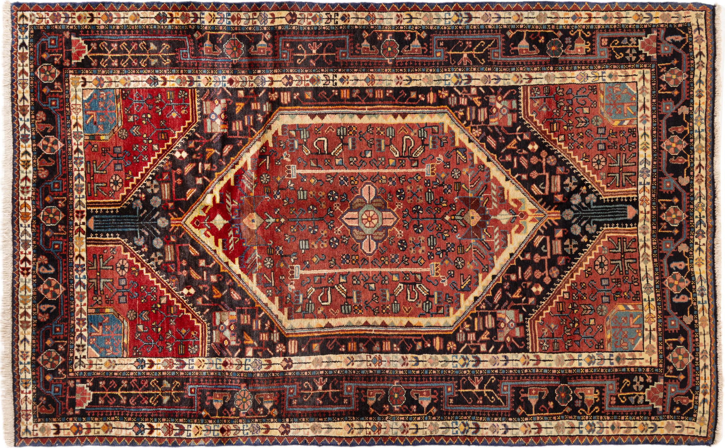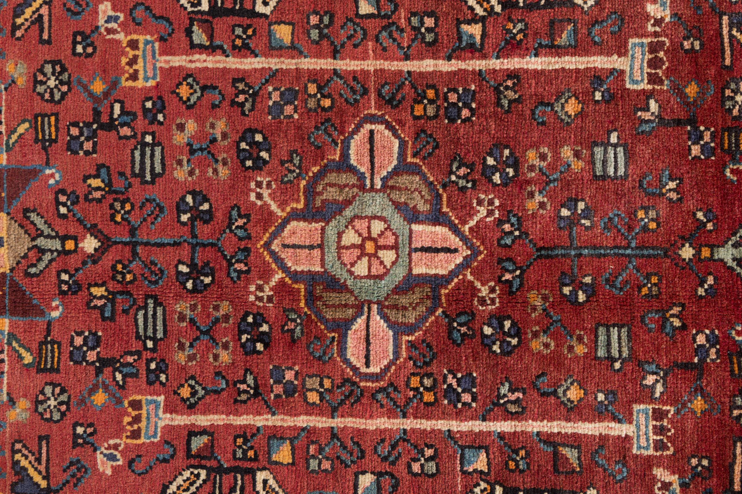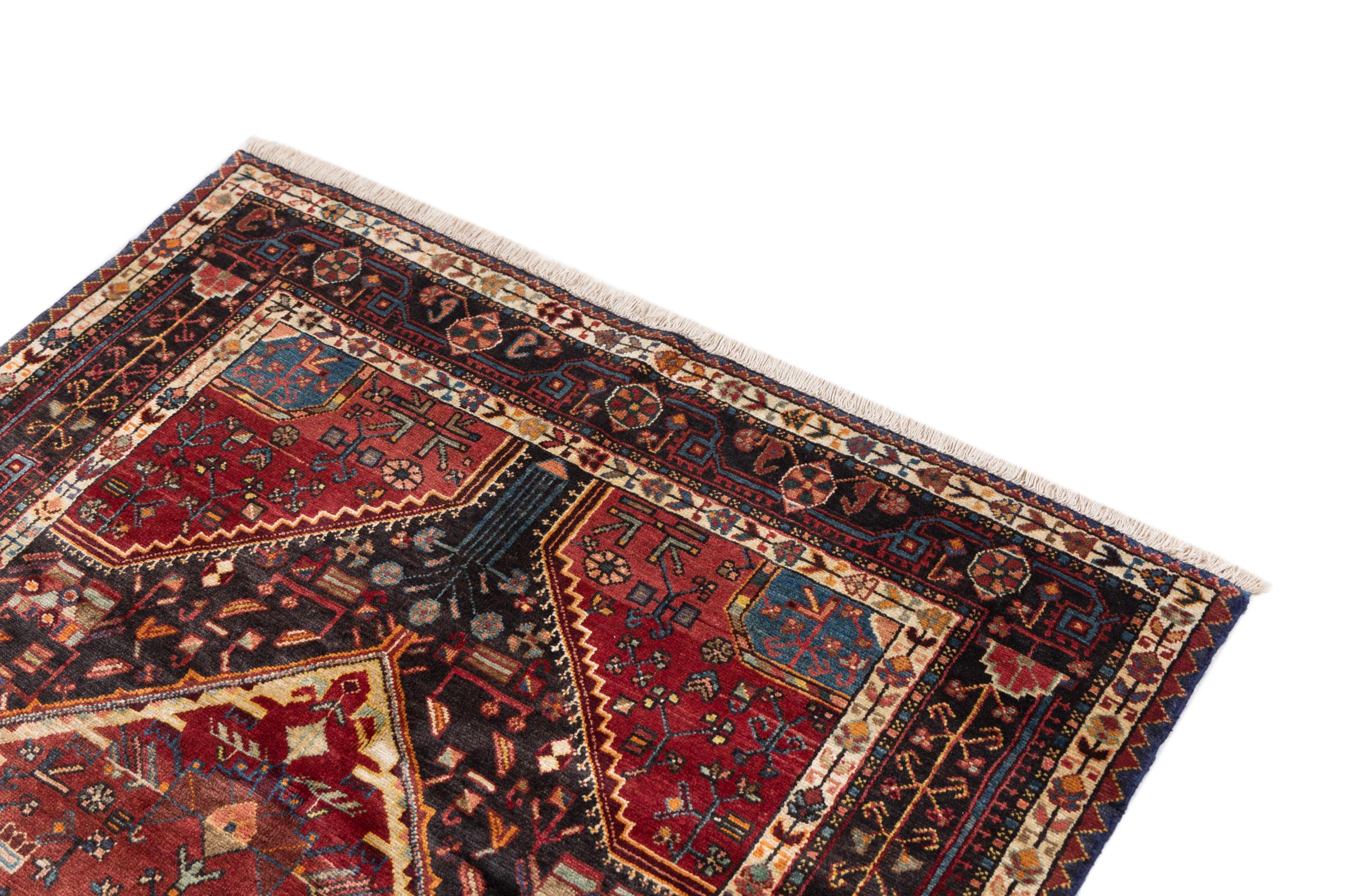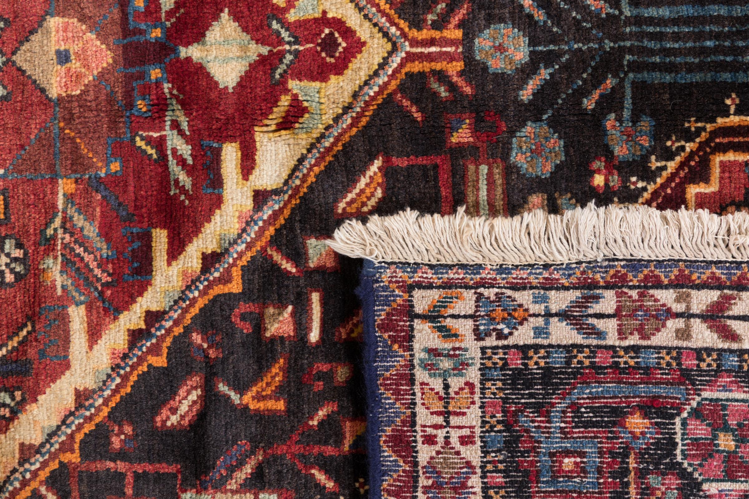 This rug belongs to village and nomadic rugs from Iran, formerly Persia. This type of rug is knotted by hand in smaller towns and villages in old tradition. Even nomads still knot Persian rugs in the open air. The rugs are knotted without a draft and completely from the mind. They are characterized by classical ornaments, which are arranged in straight and geometrical patterns. Thanks to their cultural-traditional origin, these rugs have a unique character that embodies ancient Persia.