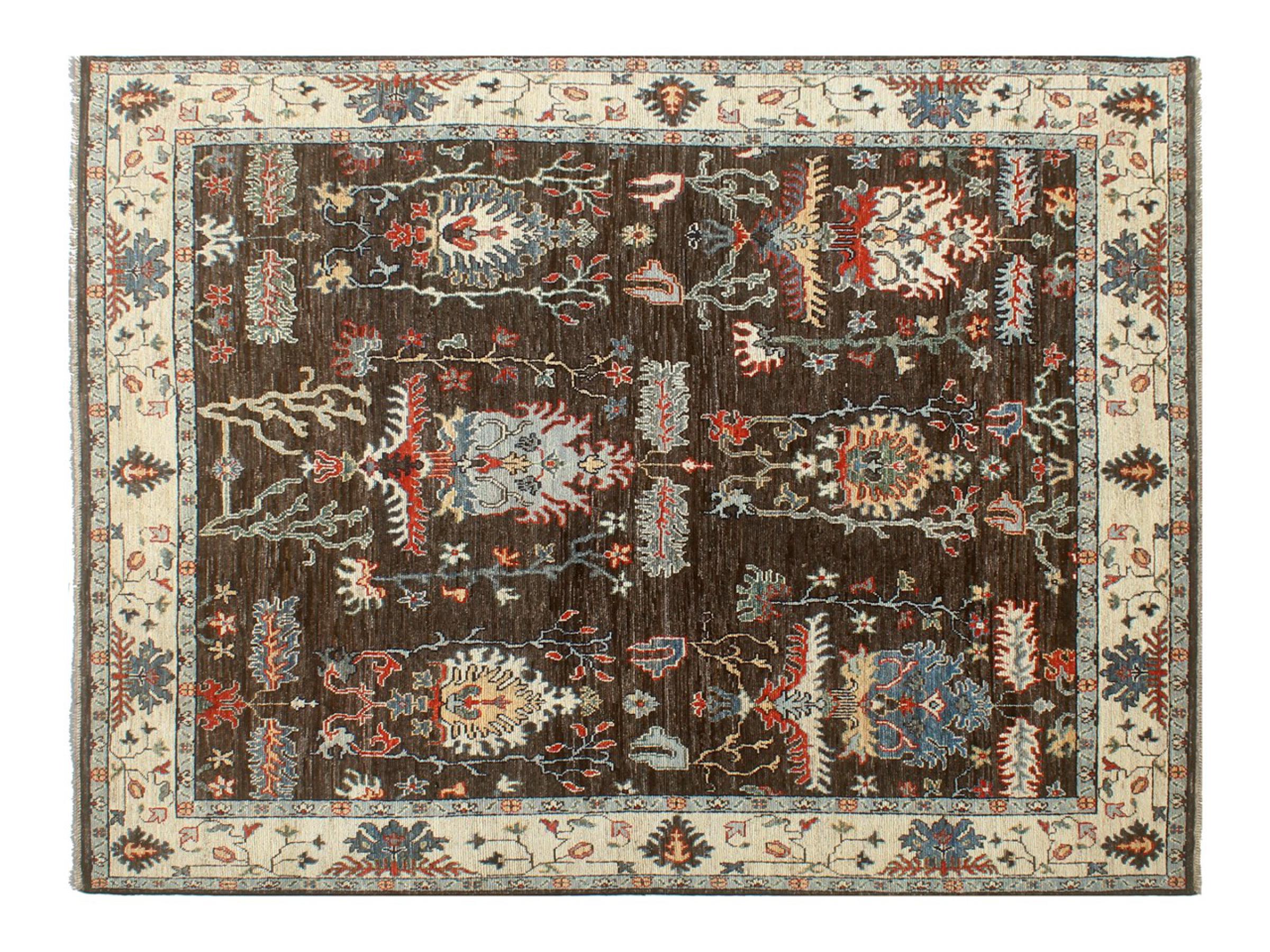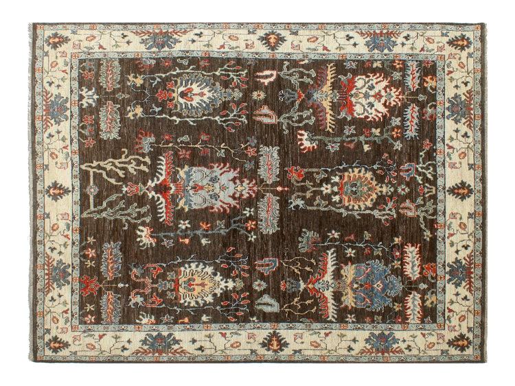 Carpet ID: 282782002085221 Size: 345x277 cm Thickness: ap. 6 mm Knot density: 120 000 - 150 000 / m² Manufacturing: Knotted by hand Pile: Handspun wool Warp: Cotton Origin: Afghanistan Age: New Weight: ap. 33 kg Also know as Ushak, Oushak In stock: Unique - Only 1 in stock