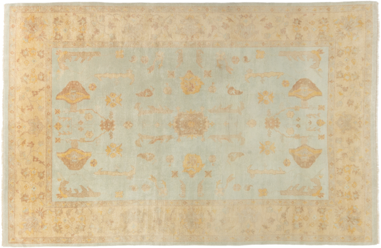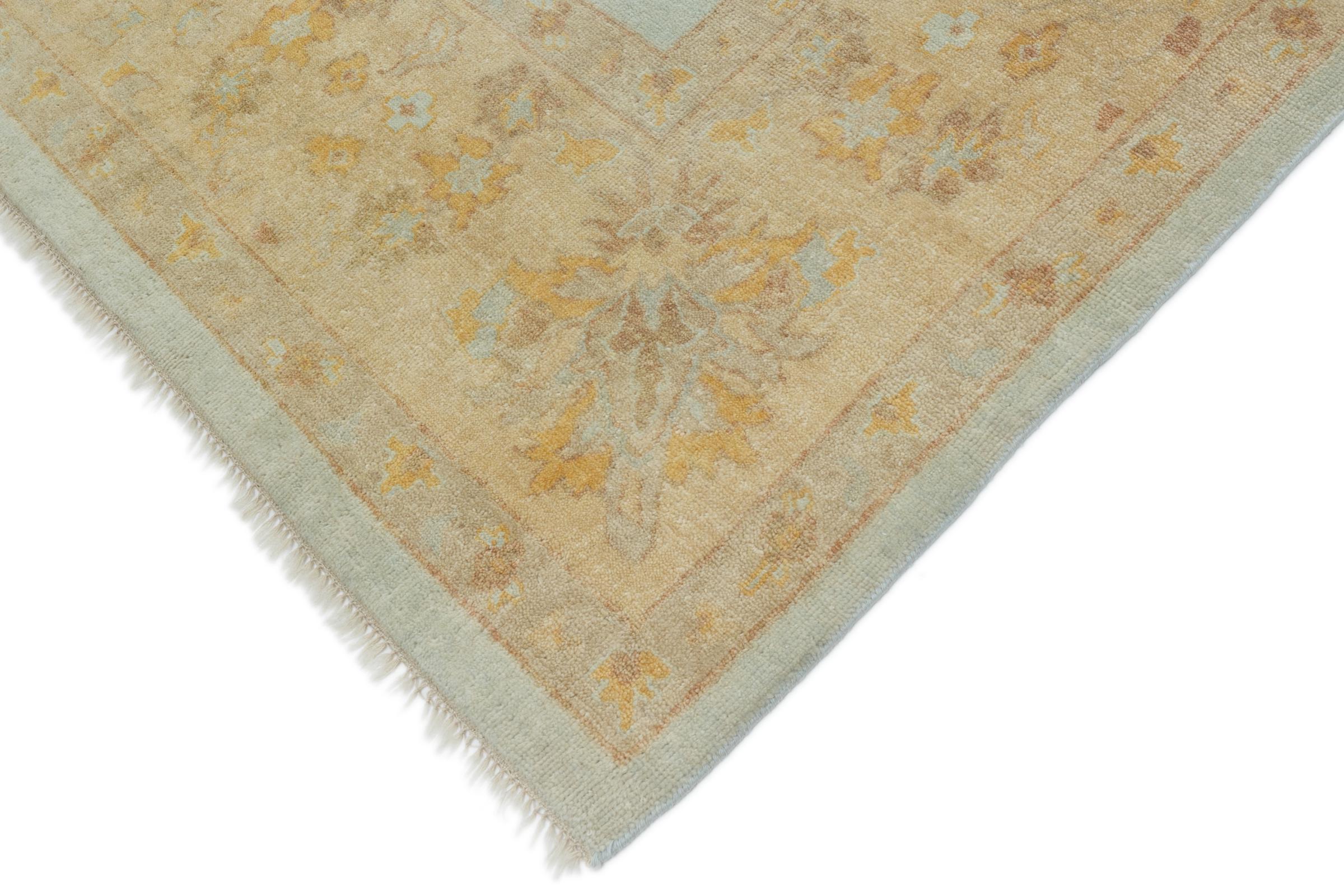 Carpet ID: 263113008007468 Size: 424x301 cm Thickness: ap. 6 mm Knot density: 72 000 - 90 000 / m² Manufacturing: Knotted by hand Pile: Handspun wool Warp: Sheep wool Origin: India Age: New Weight: ap. 45 kg Also know as Ushak, Oushak In stock: Unique - Only 1 in stock