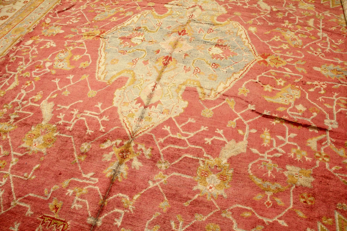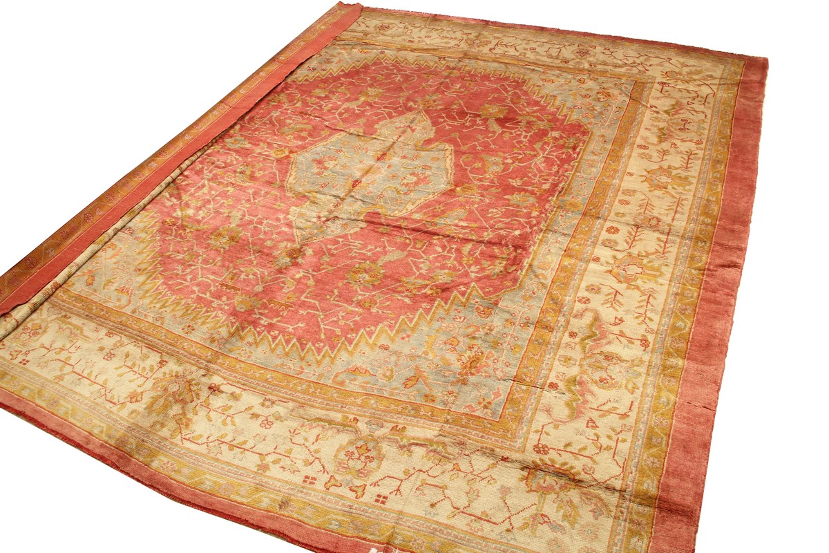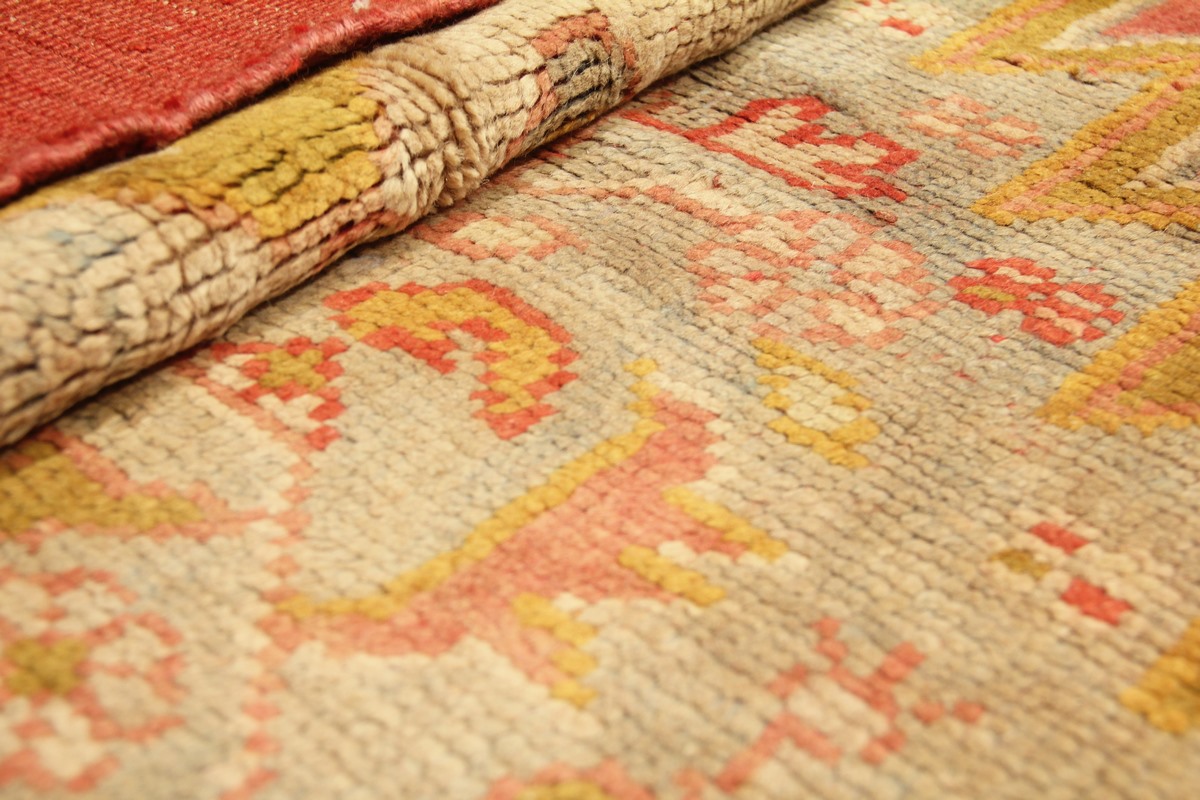 Carpet ID: 1566300721350 Size: 455x443 cm Thickness: ap. 6 mm Knot density: 80 000 - 100 000 / m² Manufacturing: Knotted by hand Pile: Sheep wool Warp: Cotton Condition / Conservation Perfect Origin: Turkey Age: Antique, over 80 years Weight: ap. 71 kg Also know as Ushak, Oushak In stock: Unique - Only 1 in stock