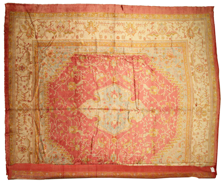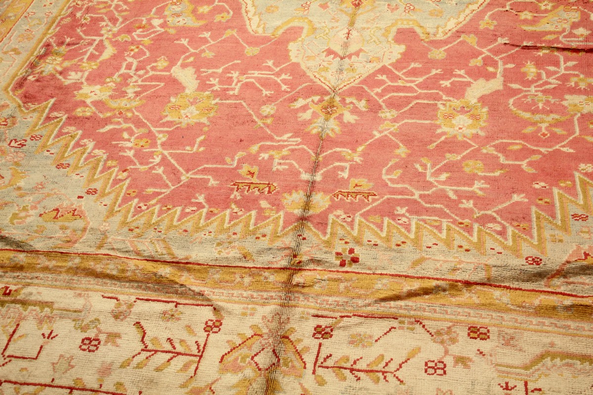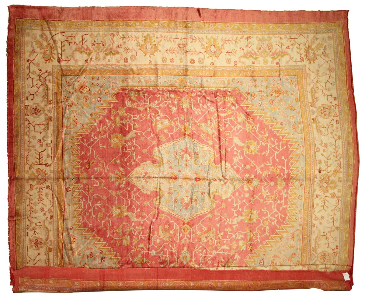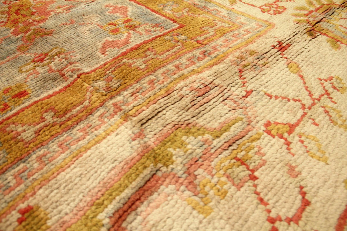 Carpet ID: 1566300721350 Size: 455x443 cm Thickness: ap. 6 mm Knot density: 80 000 - 100 000 / m² Manufacturing: Knotted by hand Pile: Sheep wool Warp: Cotton Condition / Conservation Perfect Origin: Turkey Age: Antique, over 80 years Weight: ap. 71 kg Also know as Ushak, Oushak In stock: Unique - Only 1 in stock