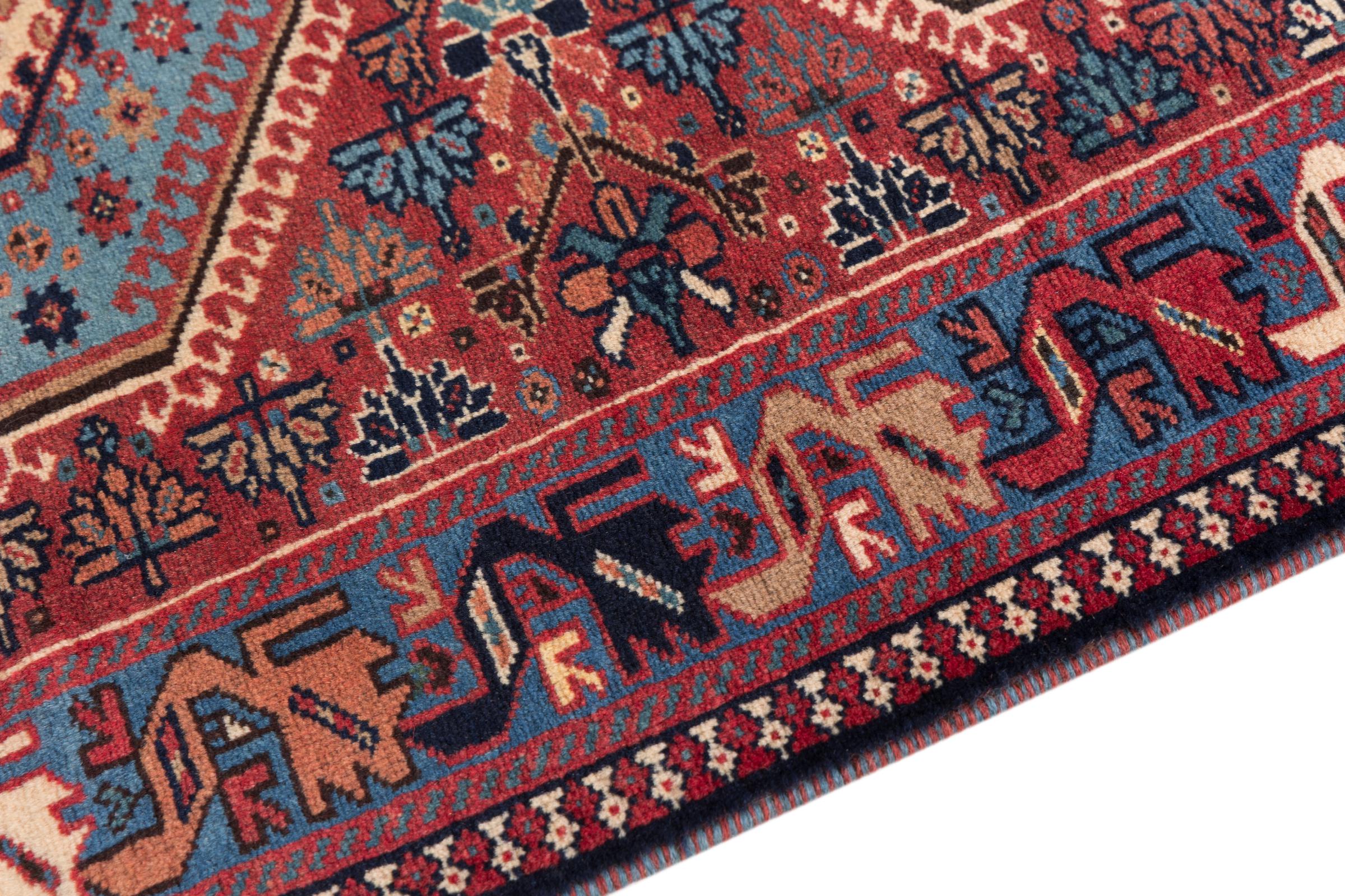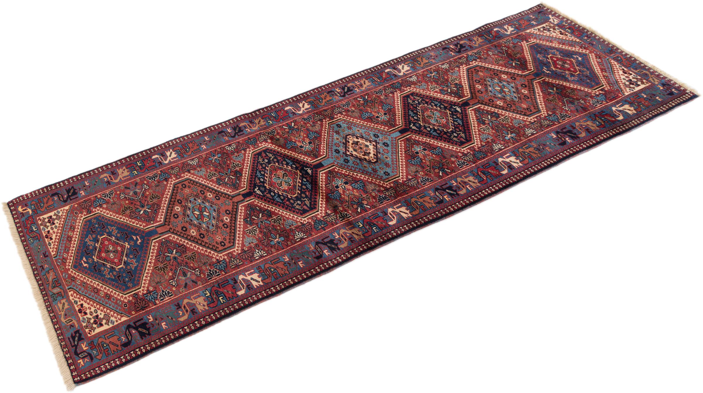 This rug belongs to village and nomadic rugs from Iran, formerly Persia. This type of rug is knotted by hand in smaller towns and villages in old tradition. Even nomads still knot Persian rugs in the open air. The rugs are knotted without a draft and completely from the mind. They are characterized by classical ornaments, which are arranged in straight and geometrical patterns. Thanks to their cultural-traditional origin, these rugs have a unique character that embodies ancient Persia.