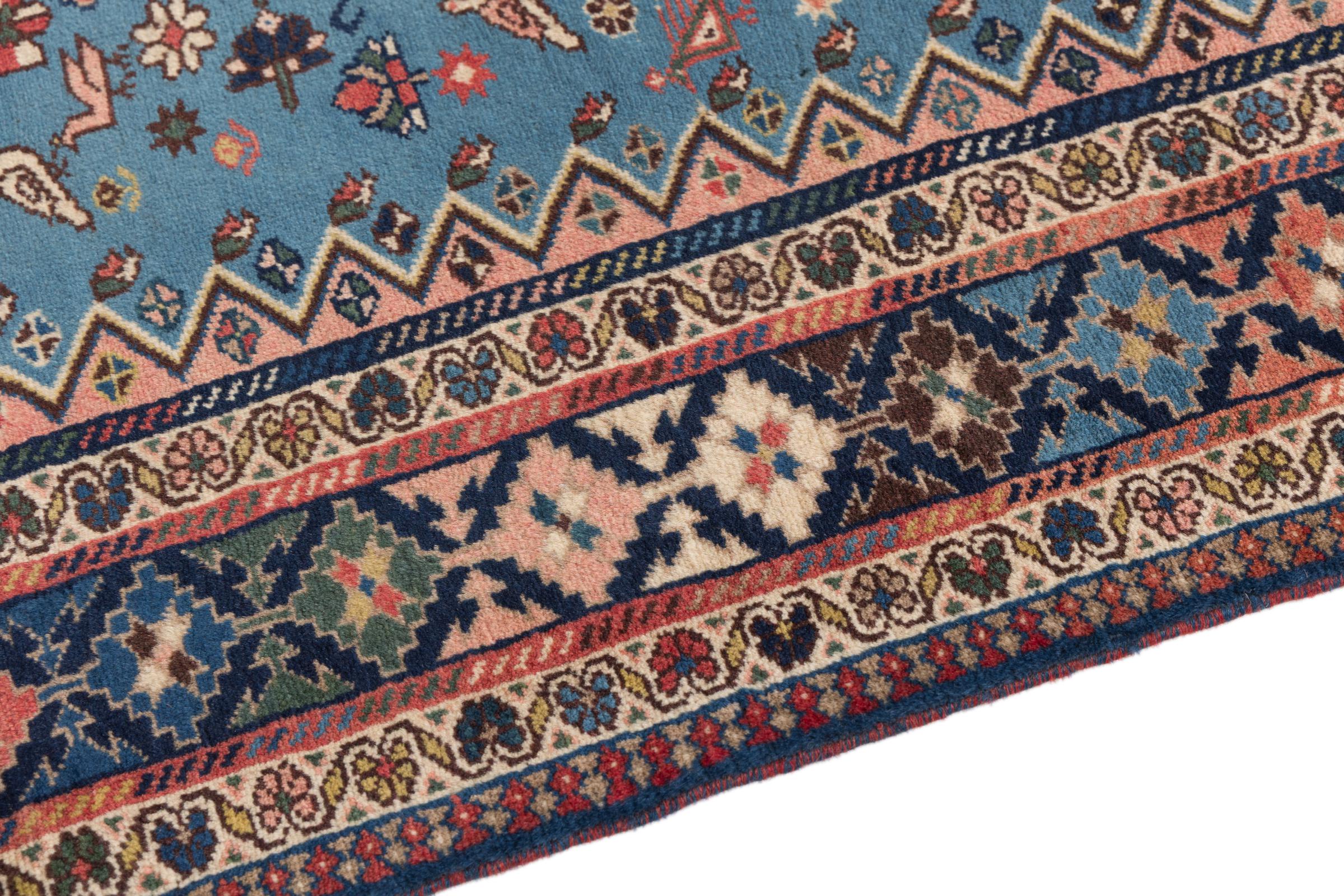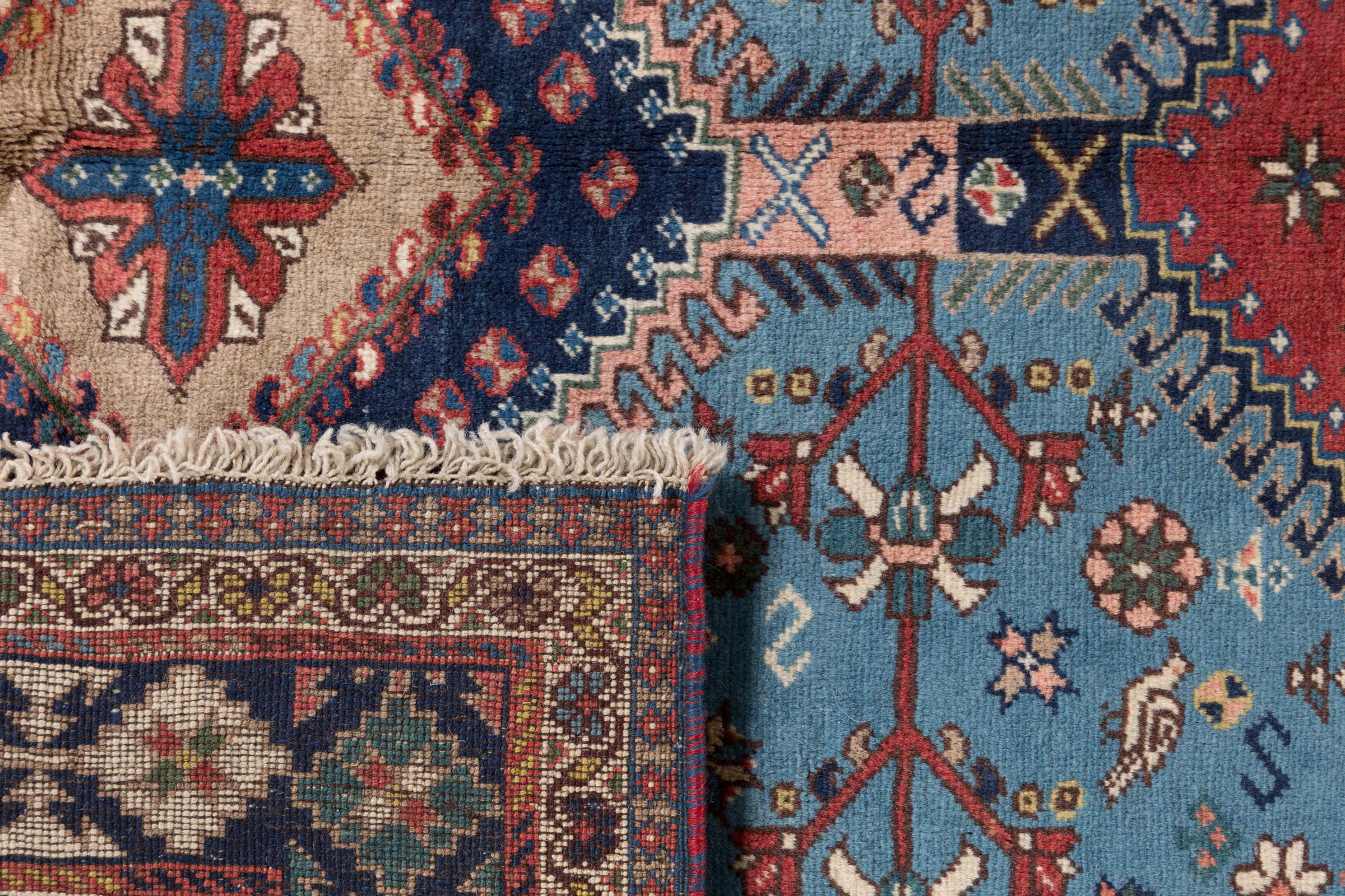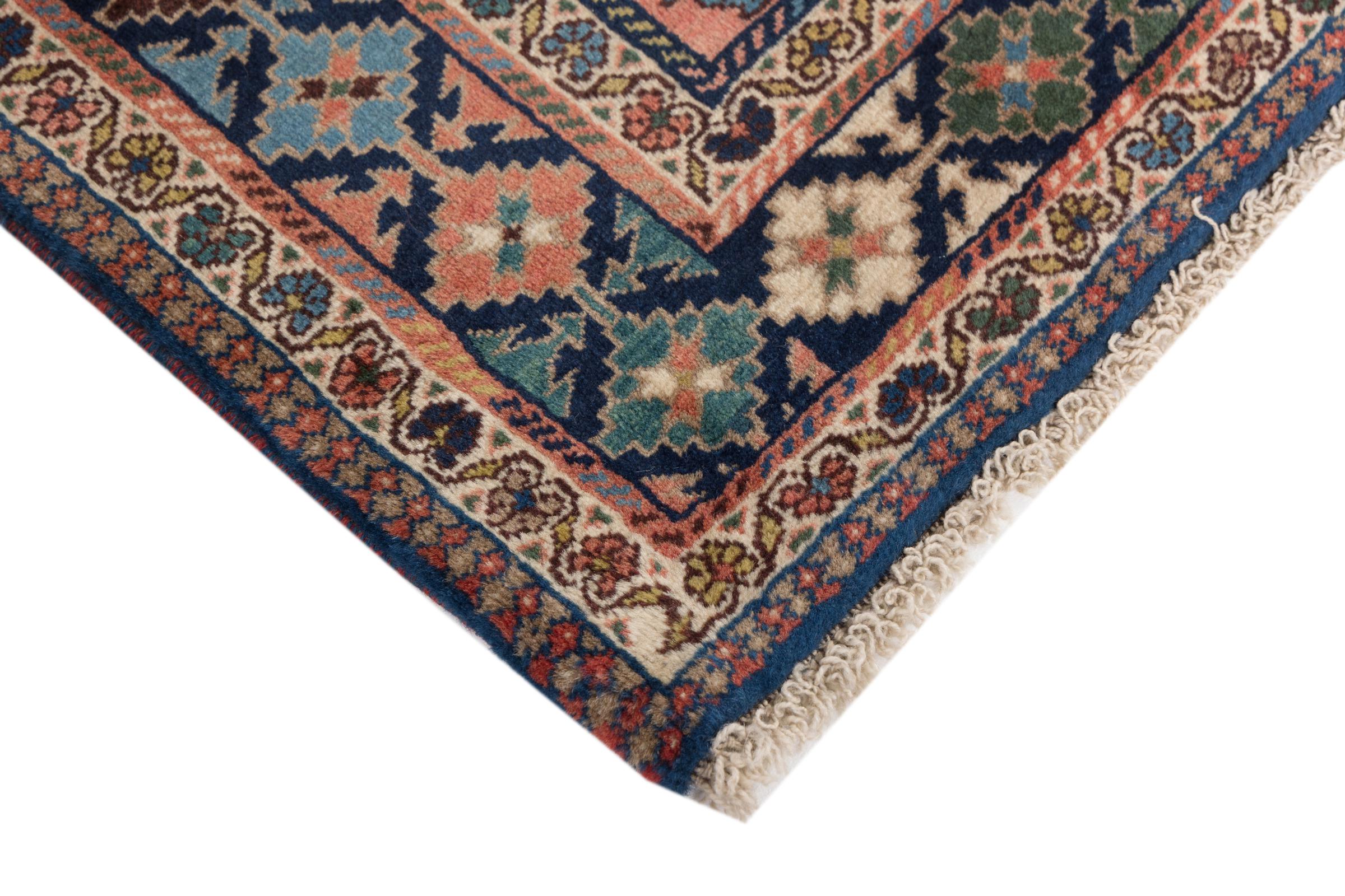 This rug belongs to village and nomadic rugs from Iran, formerly Persia. This type of rug is knotted by hand in smaller towns and villages in old tradition. Even nomads still knot Persian rugs in the open air. The rugs are knotted without a draft and completely from the mind. They are characterized by classical ornaments, which are arranged in straight and geometrical patterns. Thanks to their cultural-traditional origin, these rugs have a unique character that embodies ancient Persia.