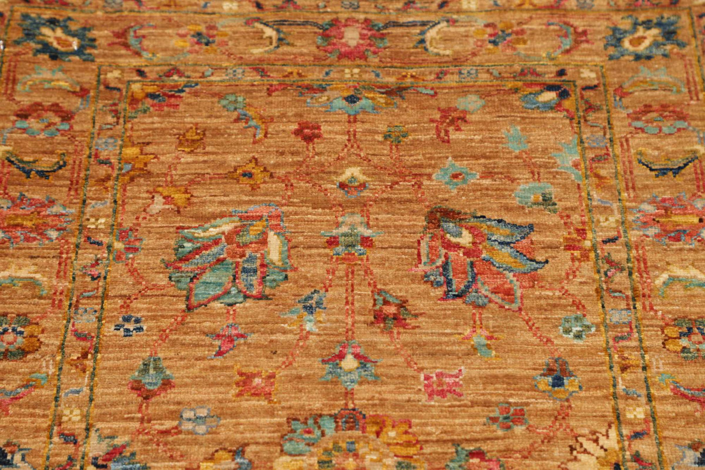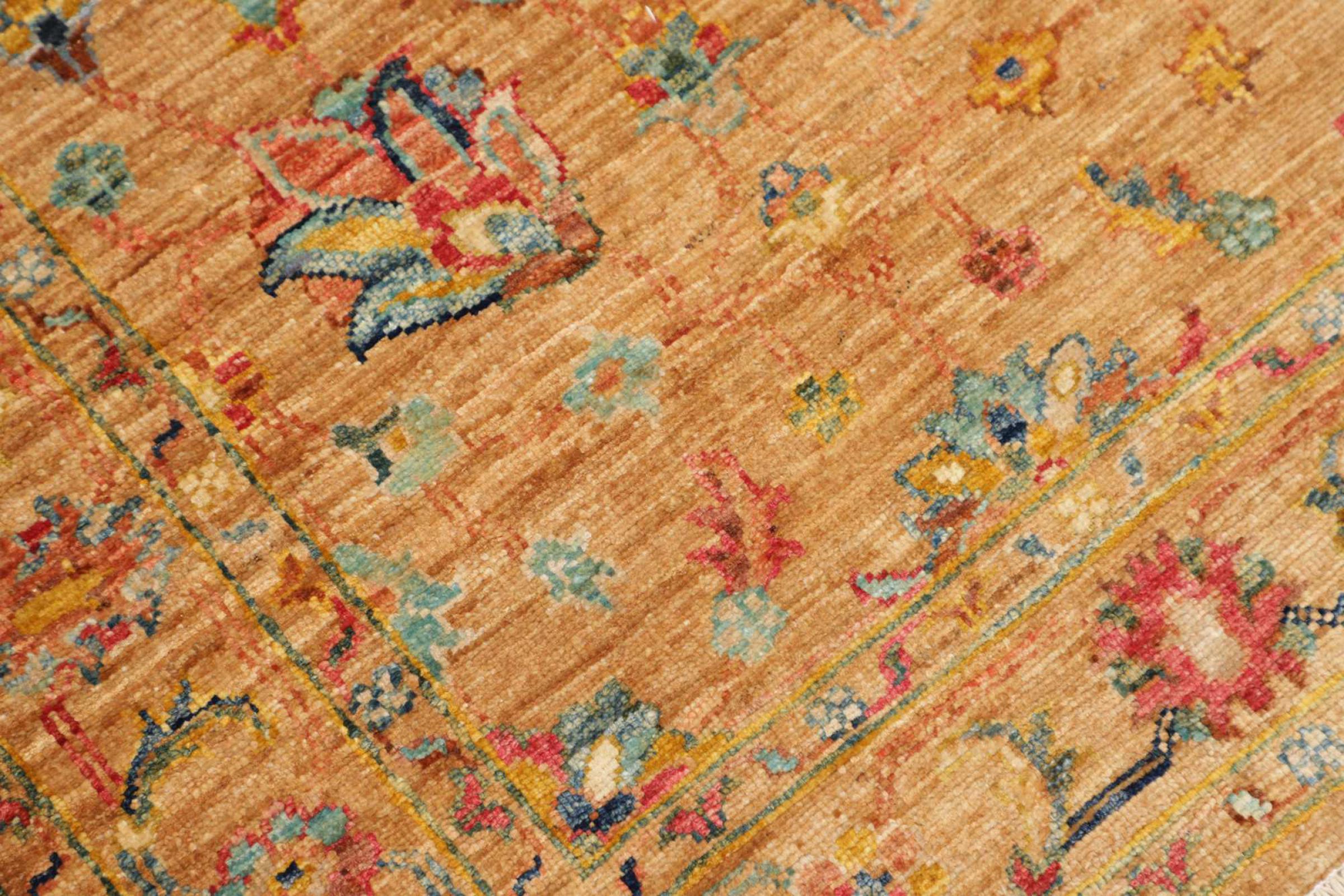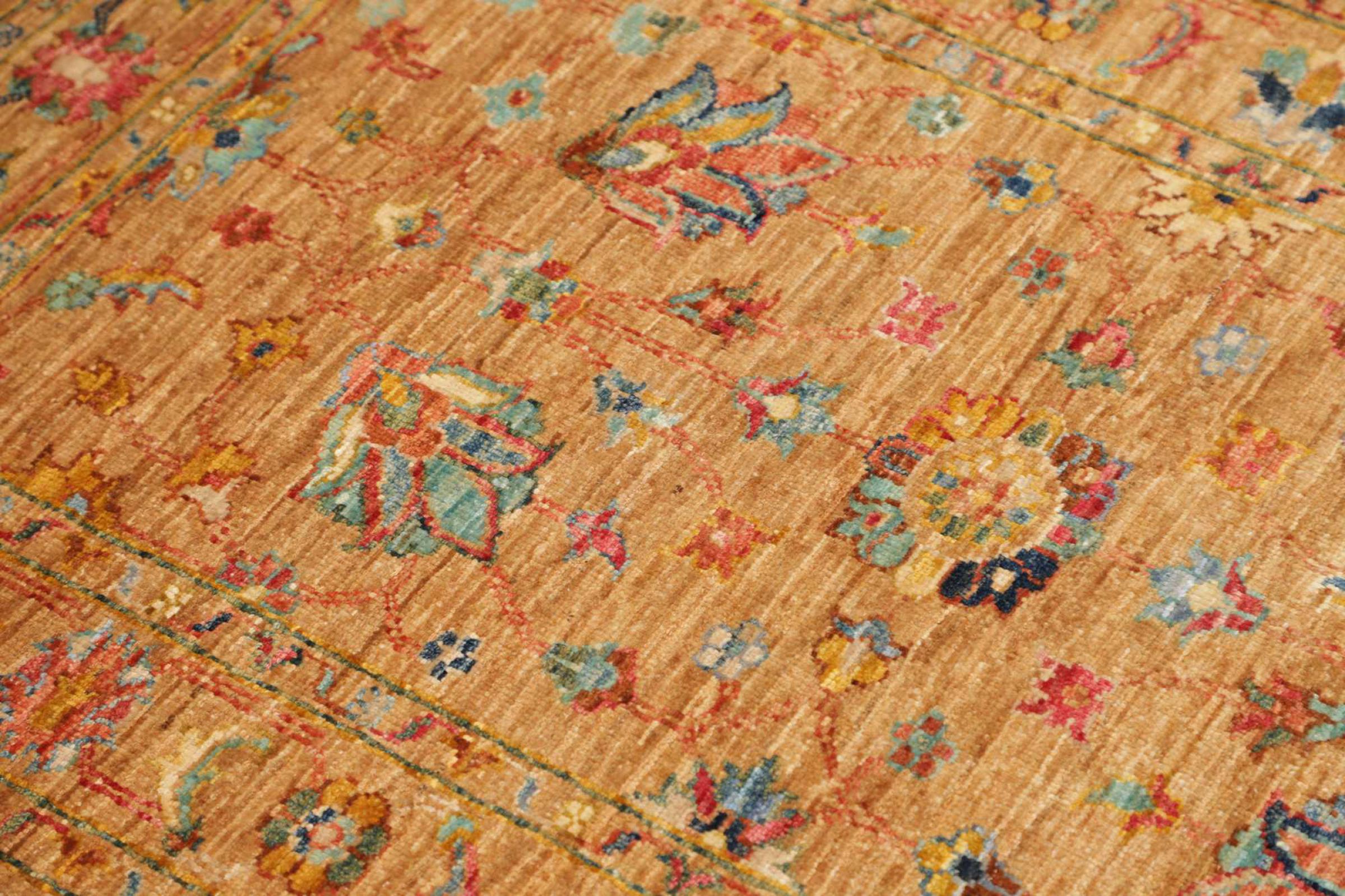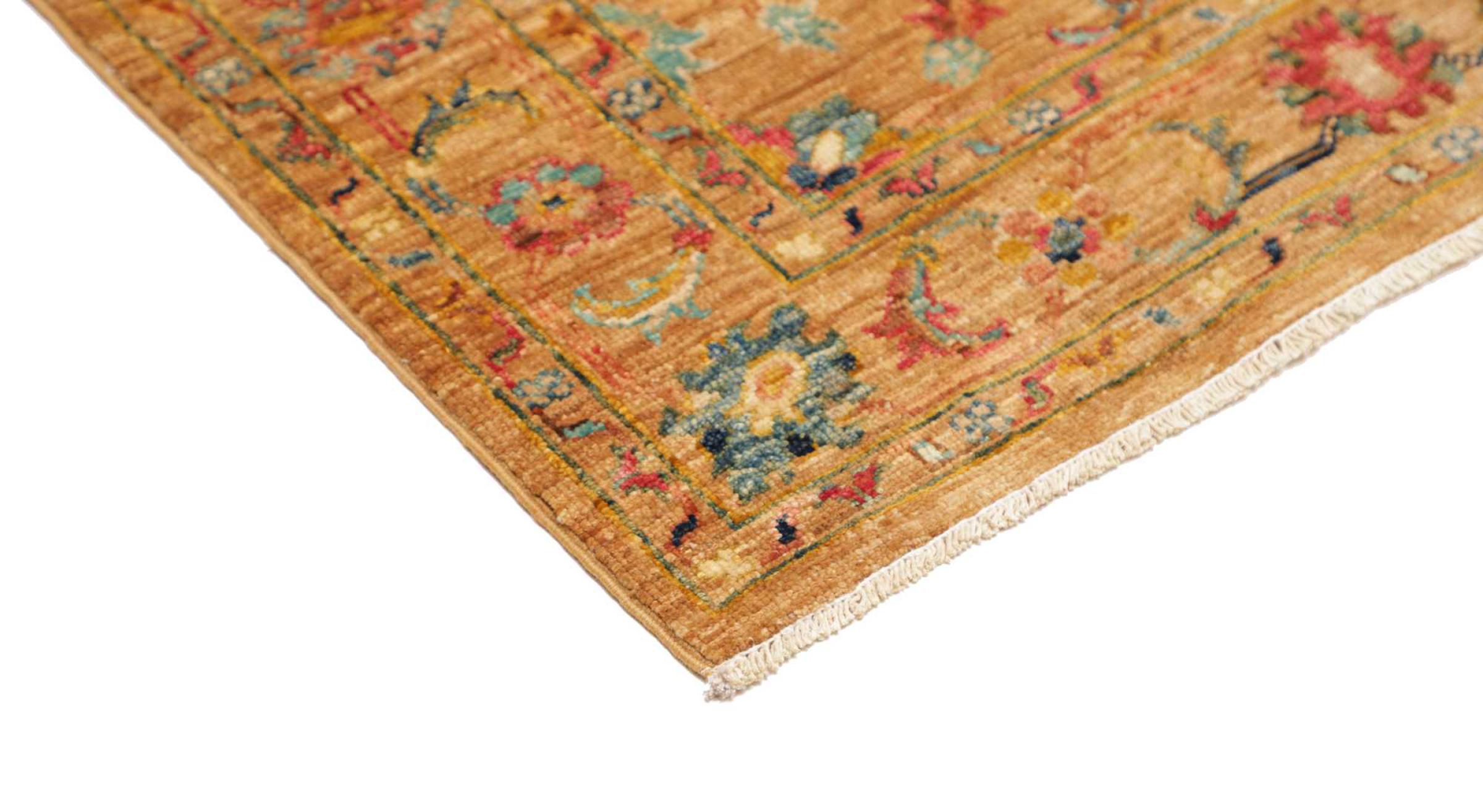 This rug is made of hand spun sheep wool of the highest quality. Especially in Iran (former Persia), Afghanistan and Pakistan wool is still spun by hand before the actual knotting of the rug begins. Wool has proven itself as a natural and extremely hard-wearing material over centuries. Among other things, it has dirt-repellent and heat-insulating properties. At the same time, wool is incomparably soft and has a natural shine.