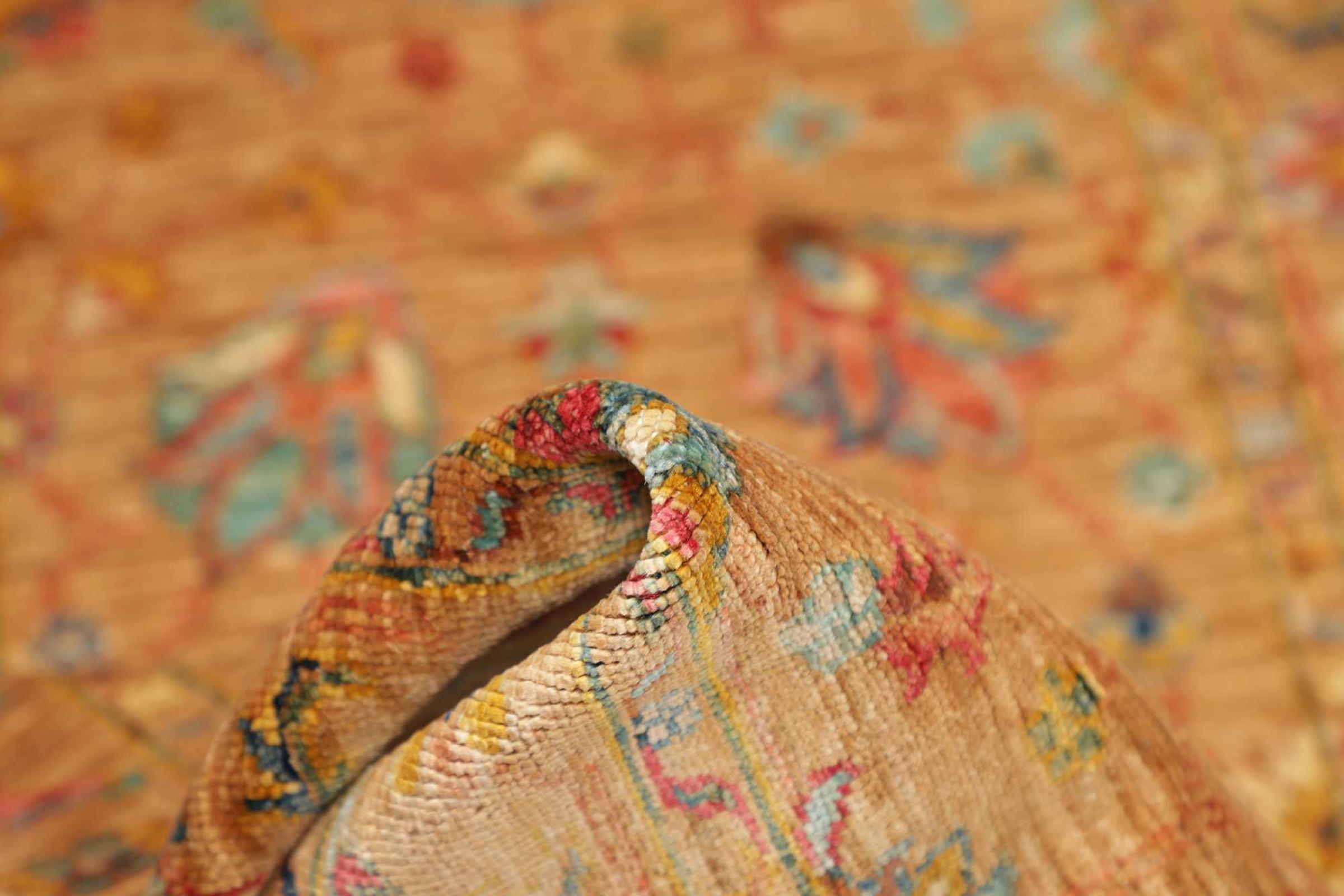 This modern Ziegler carpet was hand-knotted in new colours and patterns in Pakistan. The design and vibrant colours of this type of carpet impresses in modern interiors. Unlike traditional Ziegler carpets, this carpet does not take up the ornaments of traditional Persian carpets. It has a unique design combined with the high quality of natural sheep's wool and traditional craftsmanship.