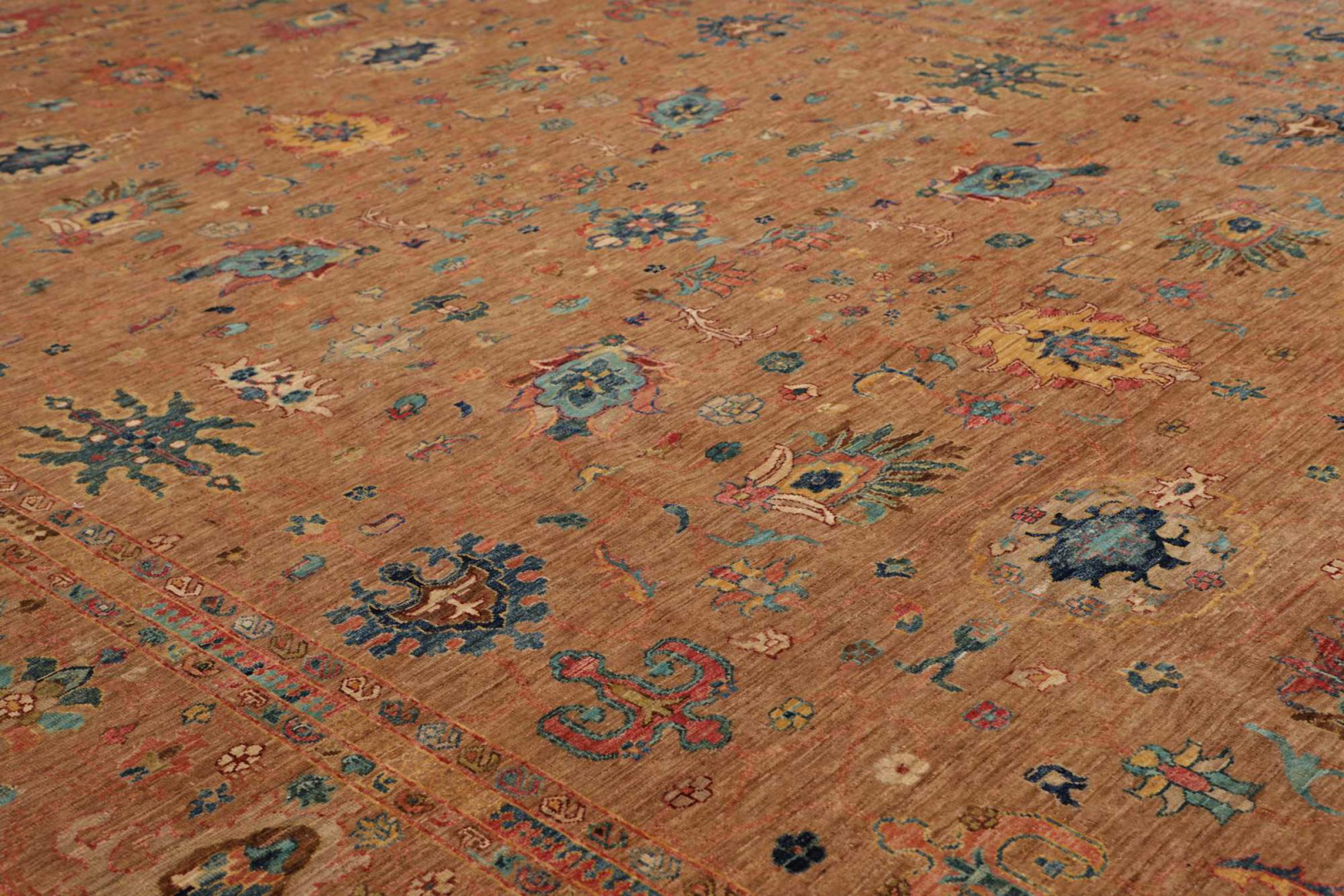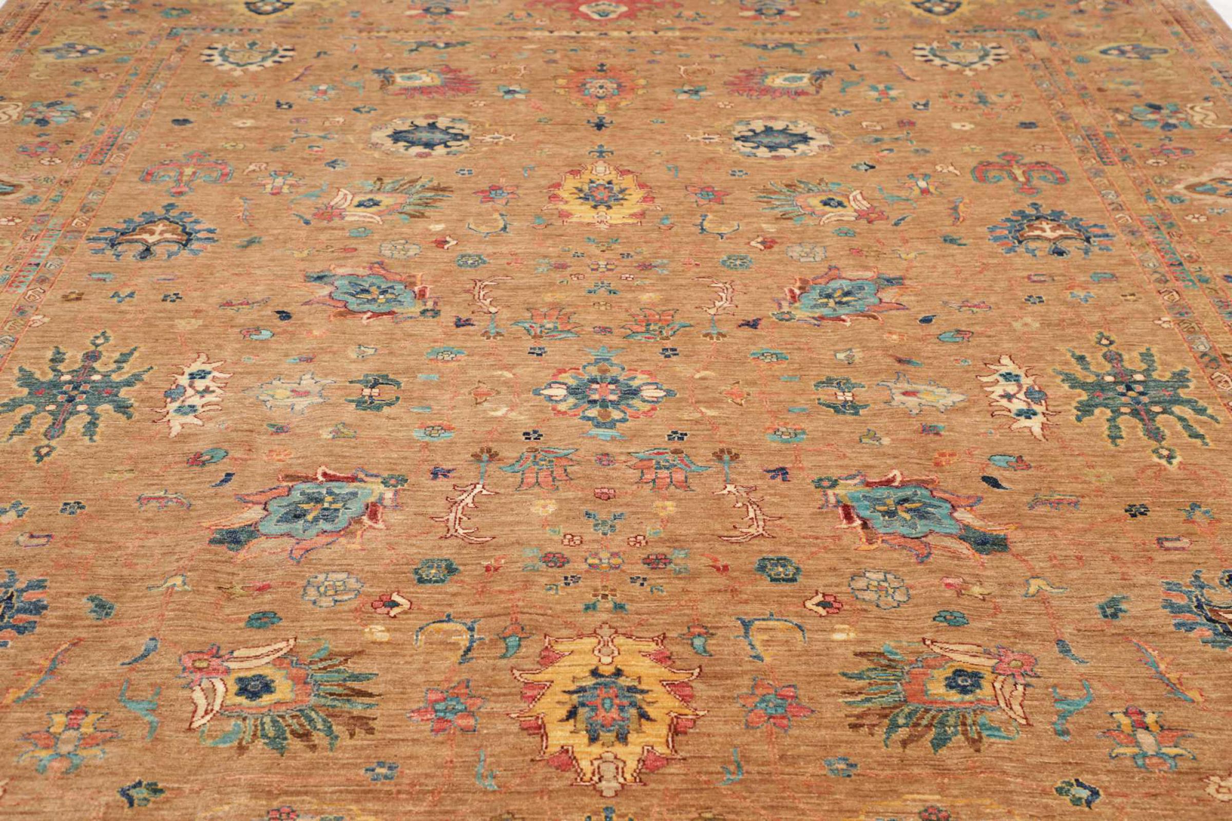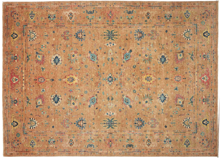 Carpet ID: 284826009165509 Size: 427x308 cm Thickness: ap. 6 mm Knot density: 128 000 - 160 000 / m² Manufacturing: Knotted by hand Pile: Handspun wool Warp: Cotton Origin: Pakistan Age: New Weight: ap. 39 kg In stock: Unique - Only 1 in stock