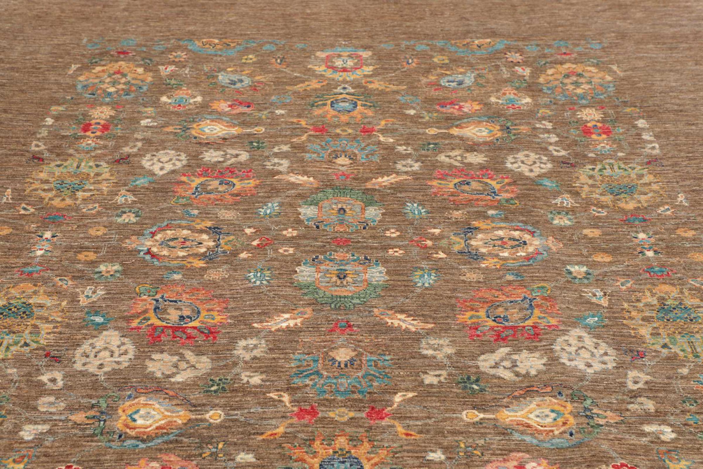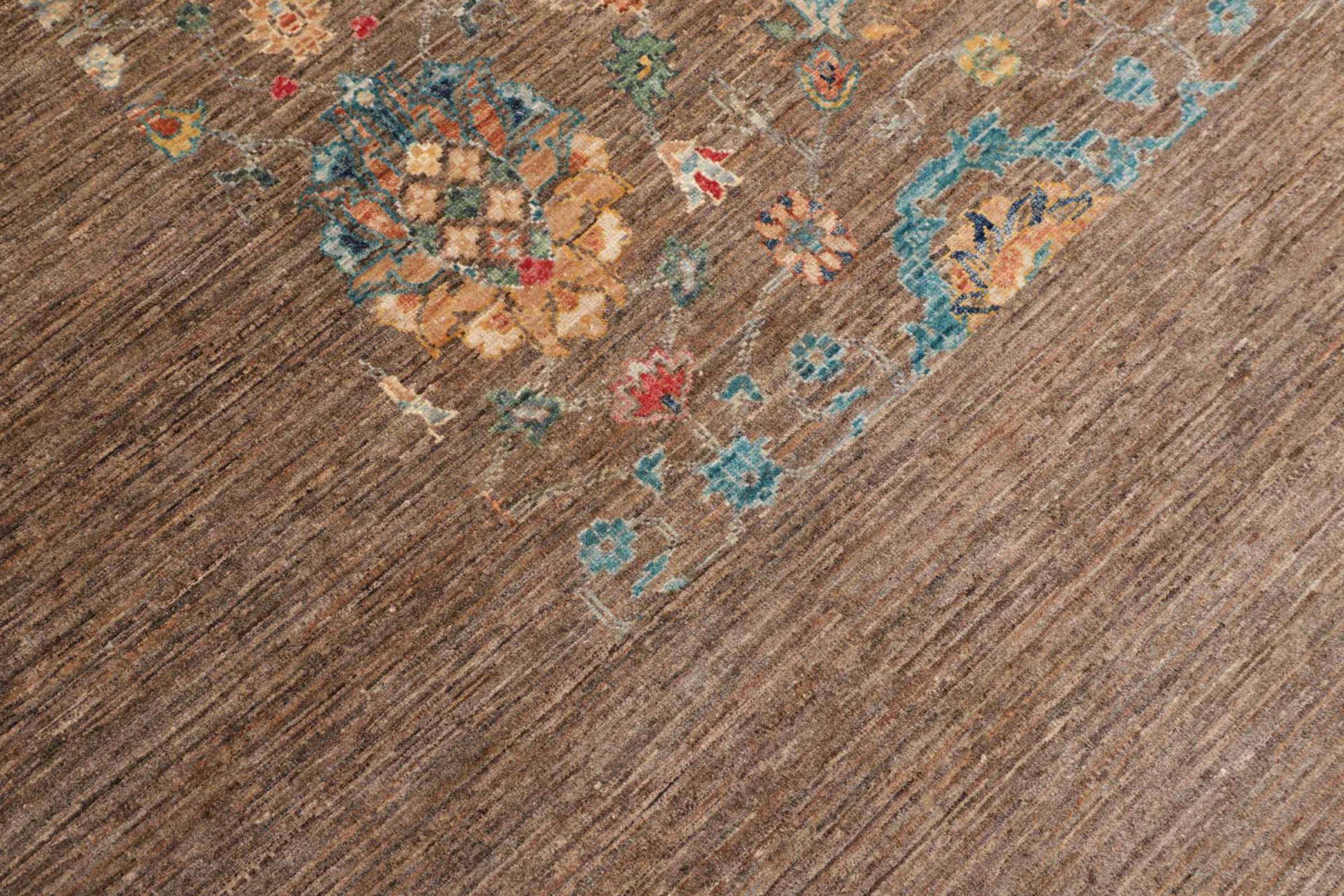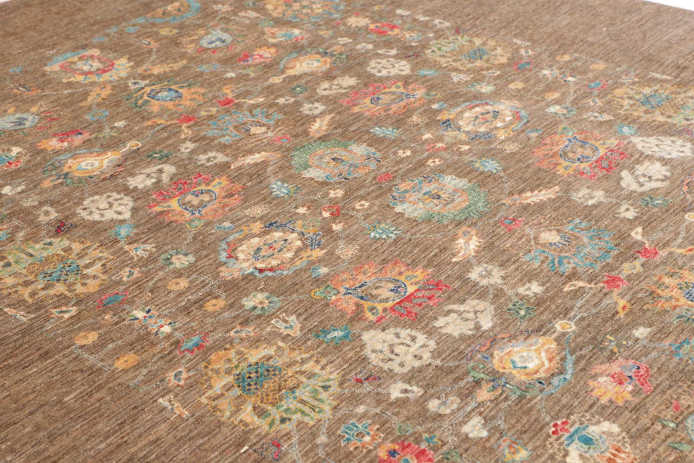 This modern Ziegler carpet was hand-knotted in new colours and patterns in Pakistan. The design and vibrant colours of this type of carpet impresses in modern interiors. Unlike traditional Ziegler carpets, this carpet does not take up the ornaments of traditional Persian carpets. It has a unique design combined with the high quality of natural sheep's wool and traditional craftsmanship.