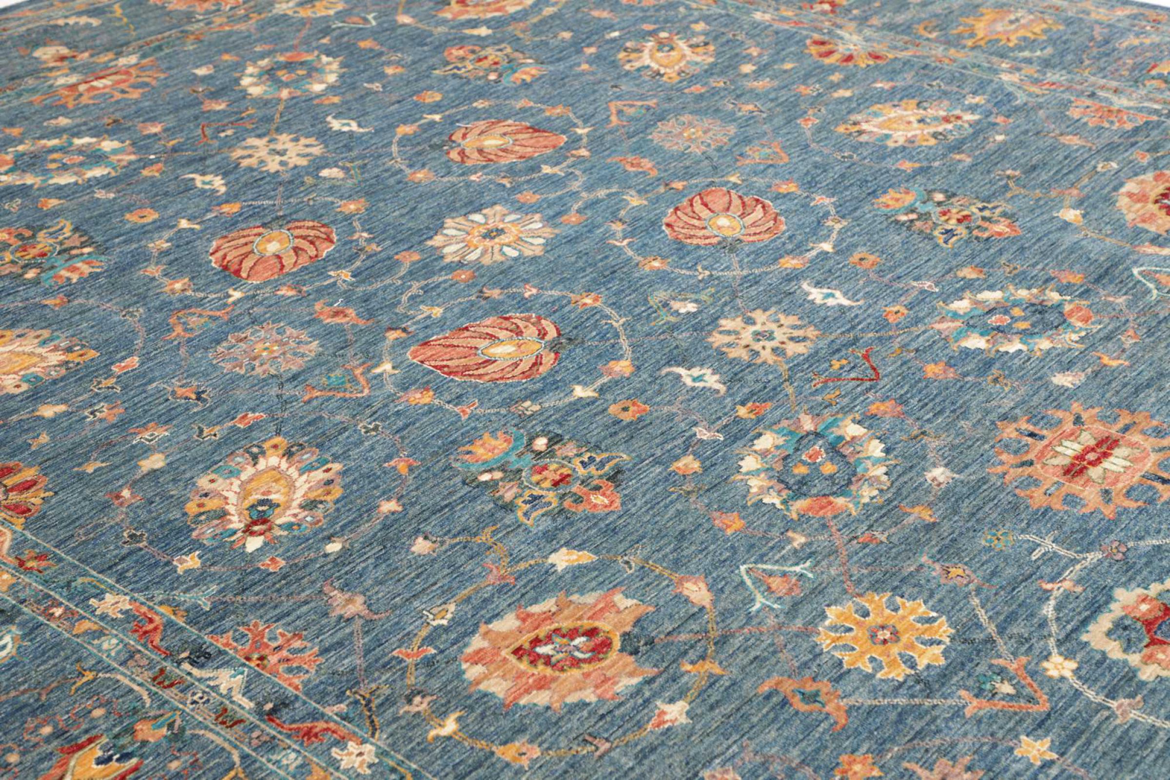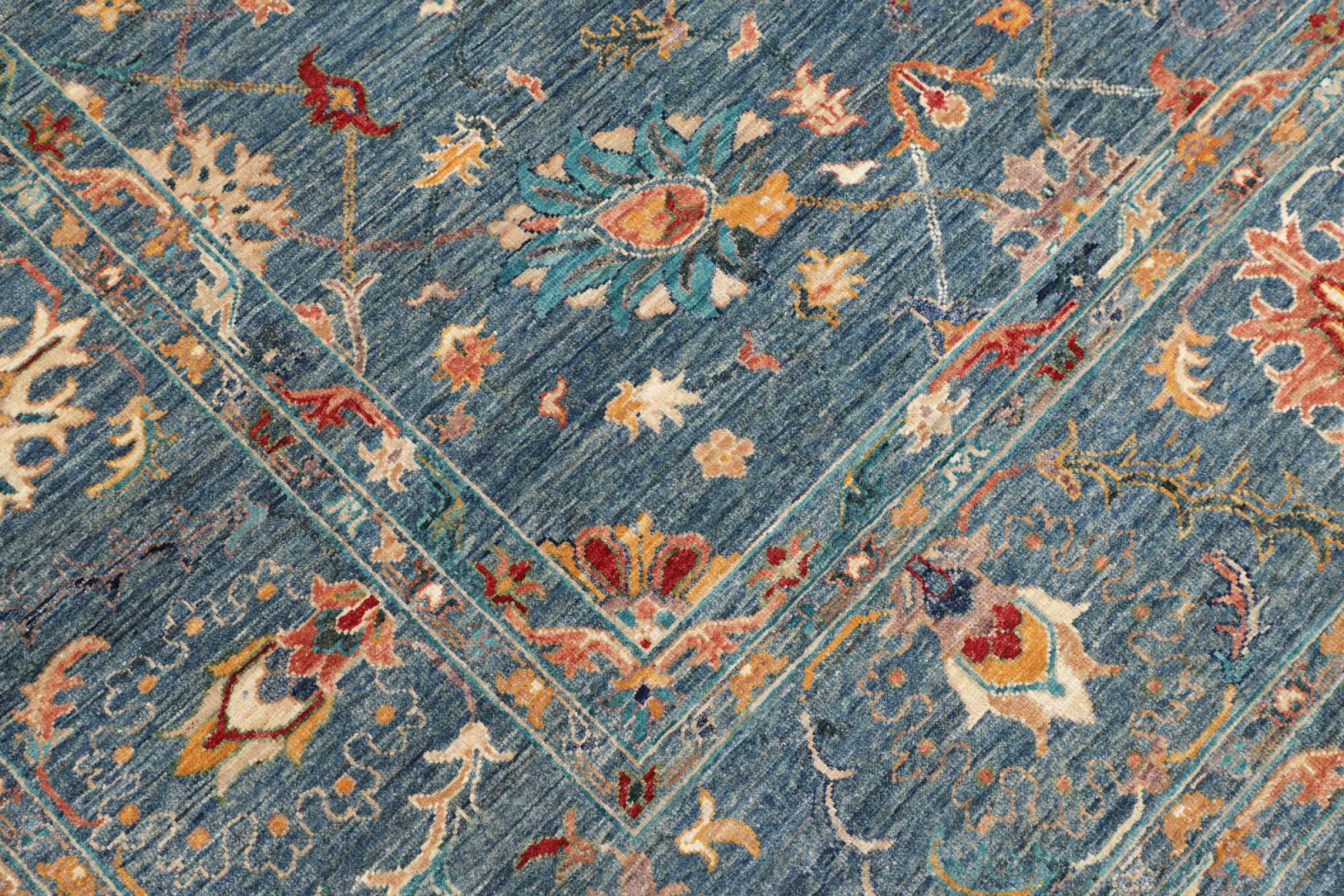 This modern Ziegler carpet was hand-knotted in new colours and patterns in Pakistan. The design and vibrant colours of this type of carpet impresses in modern interiors. Unlike traditional Ziegler carpets, this carpet does not take up the ornaments of traditional Persian carpets. It has a unique design combined with the high quality of natural sheep's wool and traditional craftsmanship.
